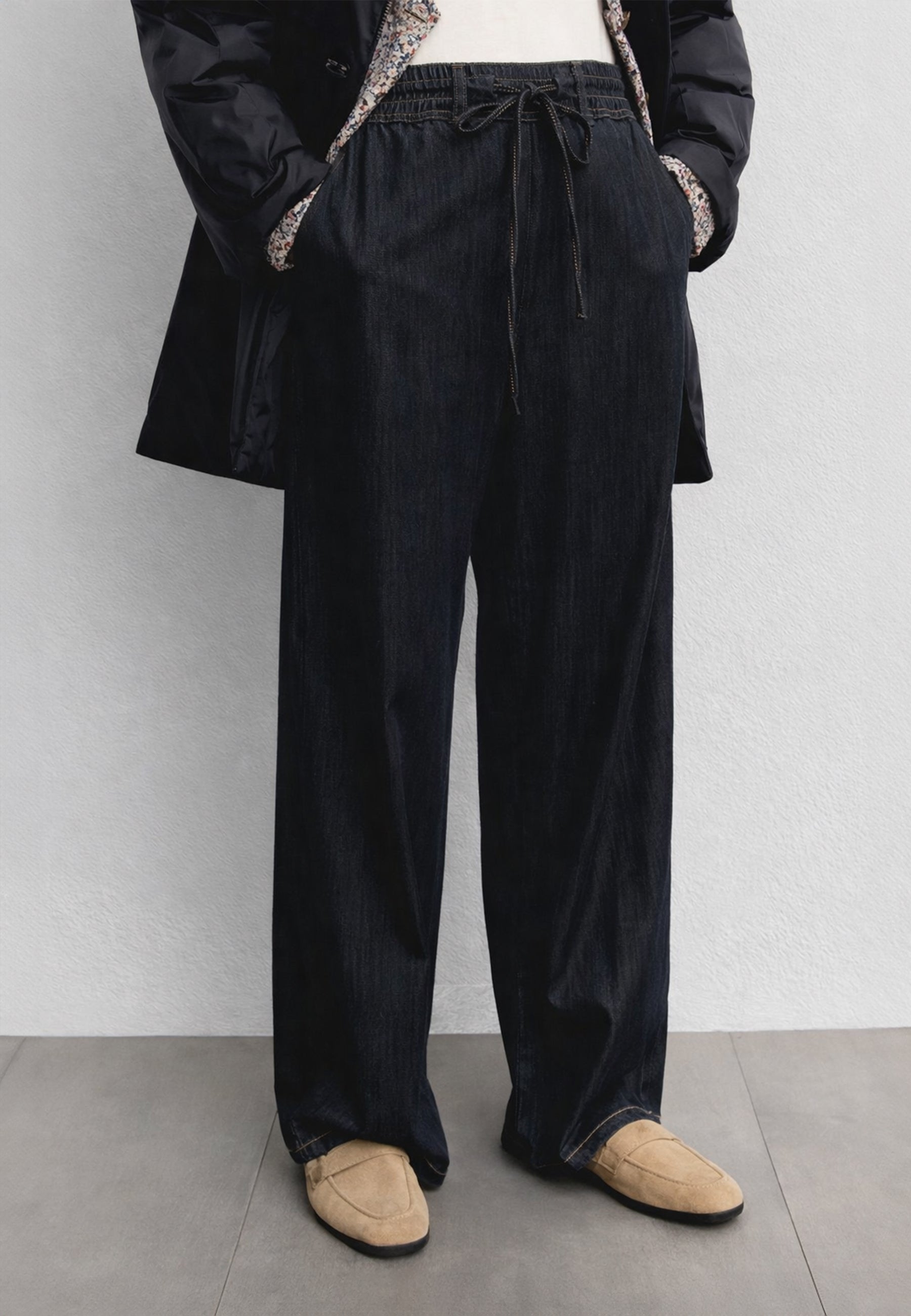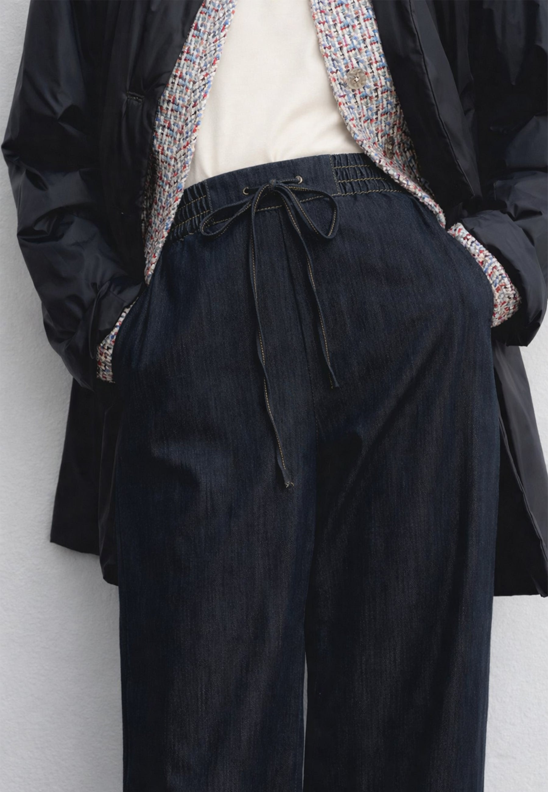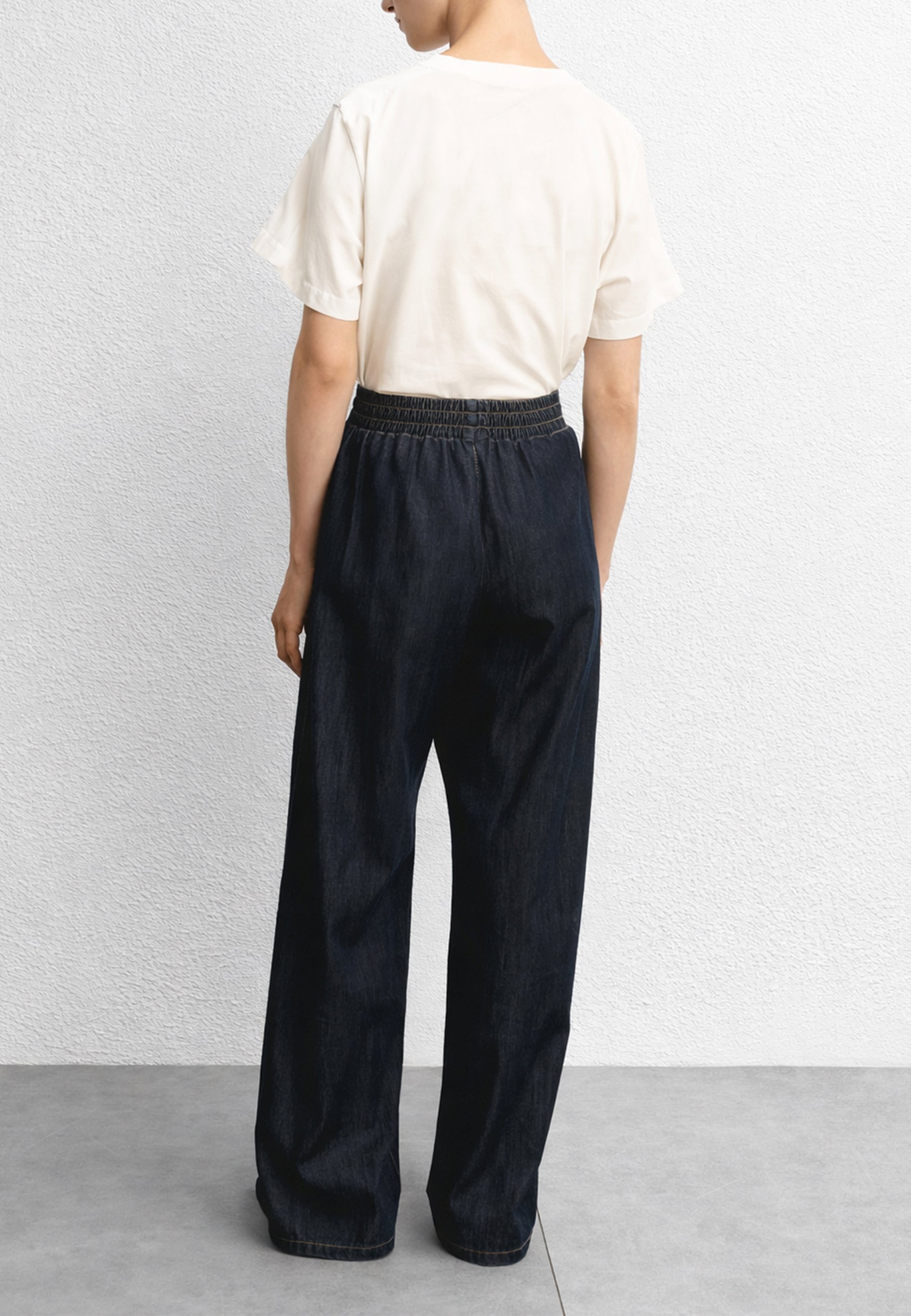 Pantalone donna Emme Marella in jeans leggero con elastico in vita, ideale per unire comfort, praticità ed eleganza contemporanea dal lavoro al tempo libero.