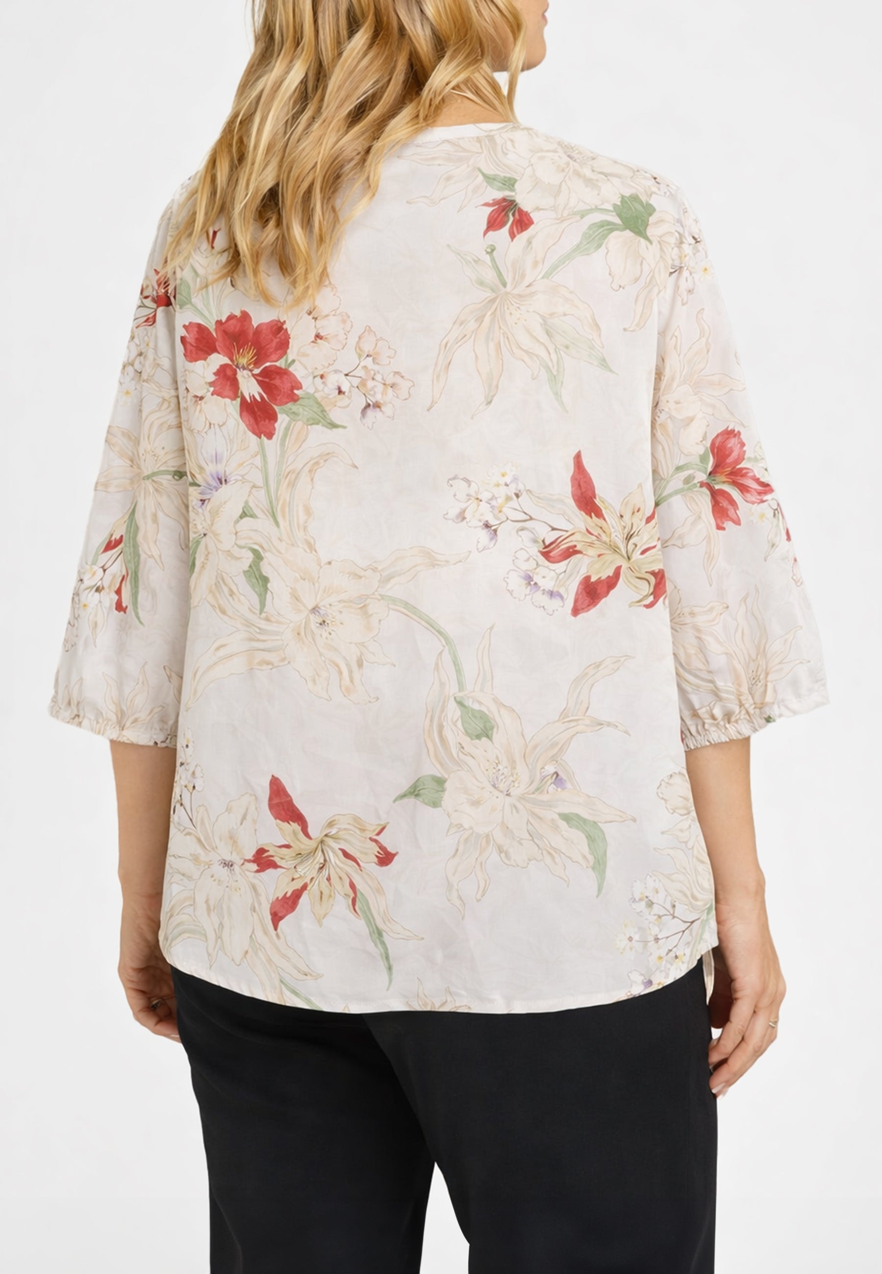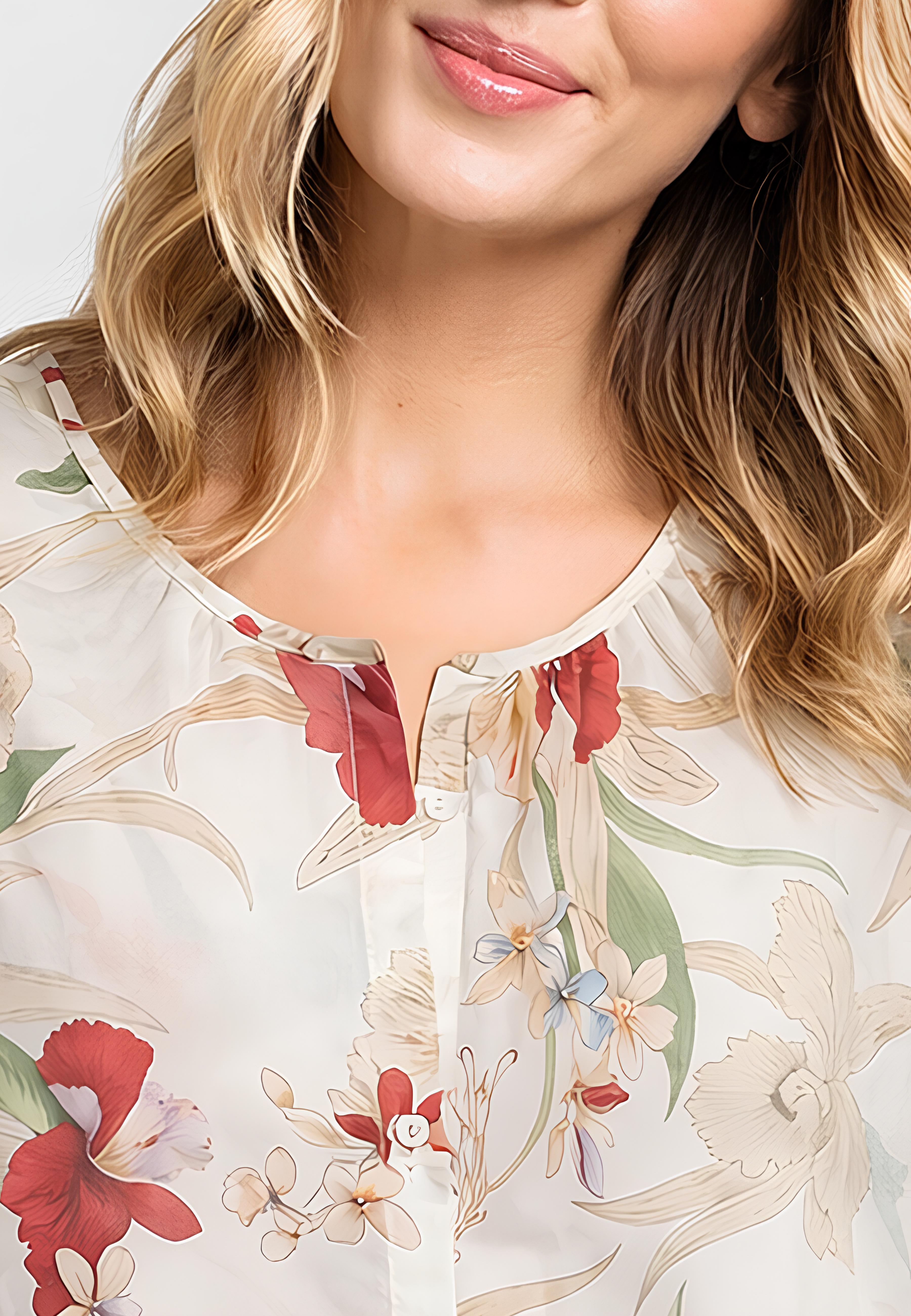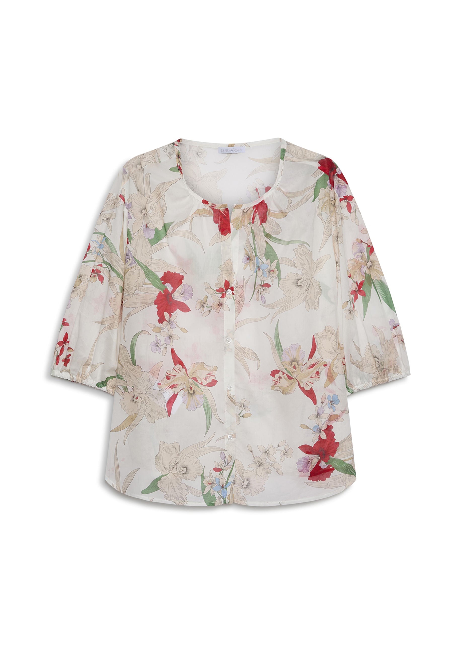 Camicia donna curvy Luisa Viola in mussola di cotone floreale, leggera, femminile e pensata per valorizzare le forme.