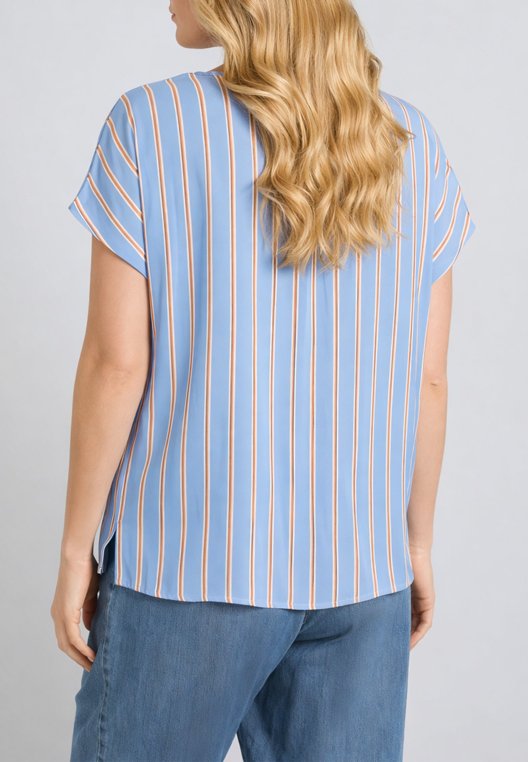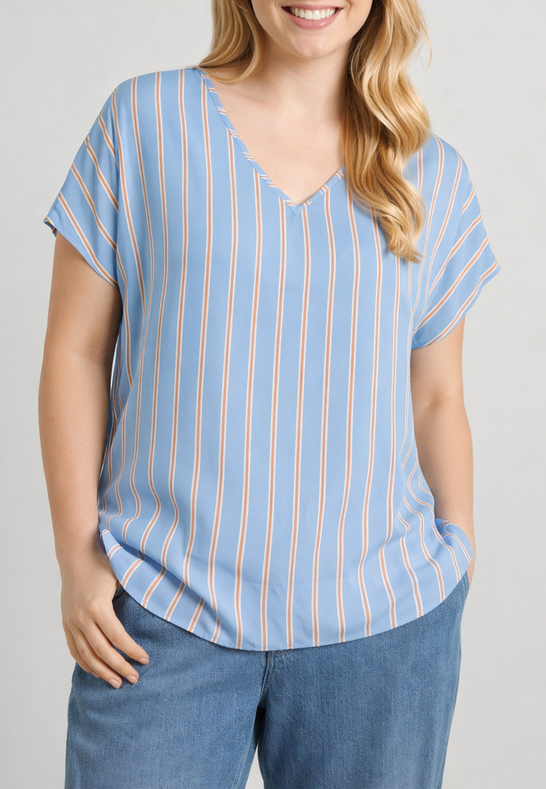 Casacca donna curvy Luisa Viola in cotone rigato con scollo a V, ideale per valorizzare le forme con comfort e stile.
