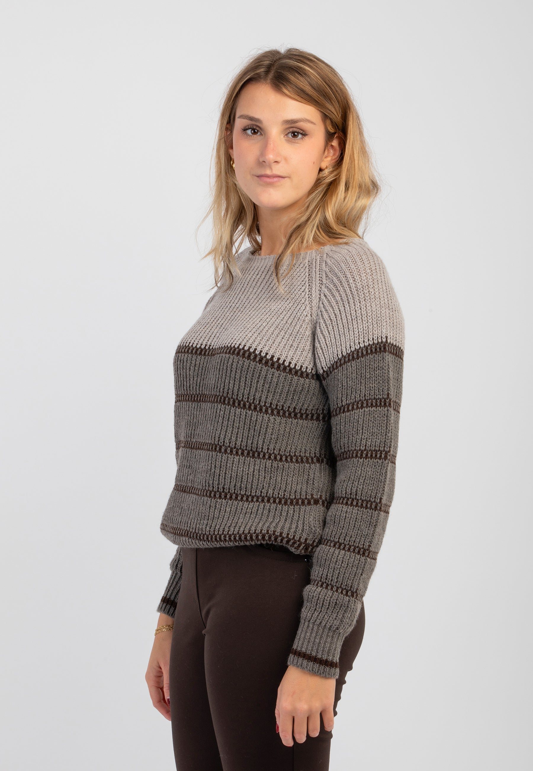 Il maglione Amarynth con collo a girocollo è realizzato in morbida lana a coste bicolore. Aggiungi stile e comfort al tuo guardaroba con questo capo versatile che si adatta perfettamente a qualsiasi occasione. Capo prodotto in Italia. Made in Italy.