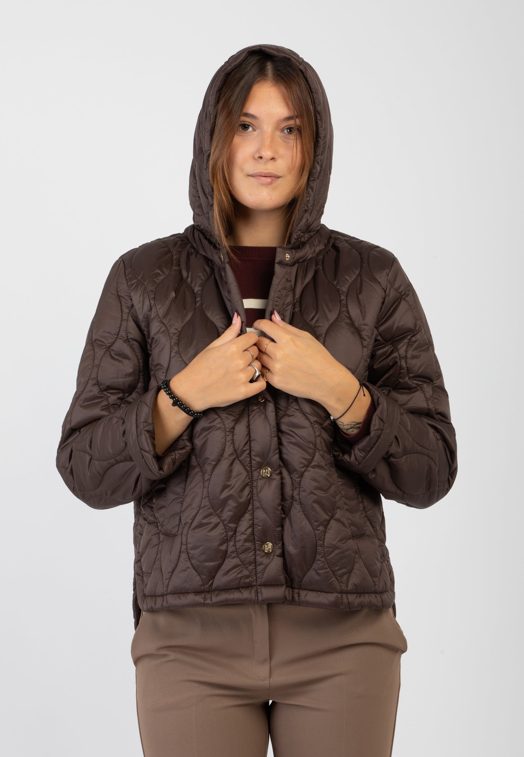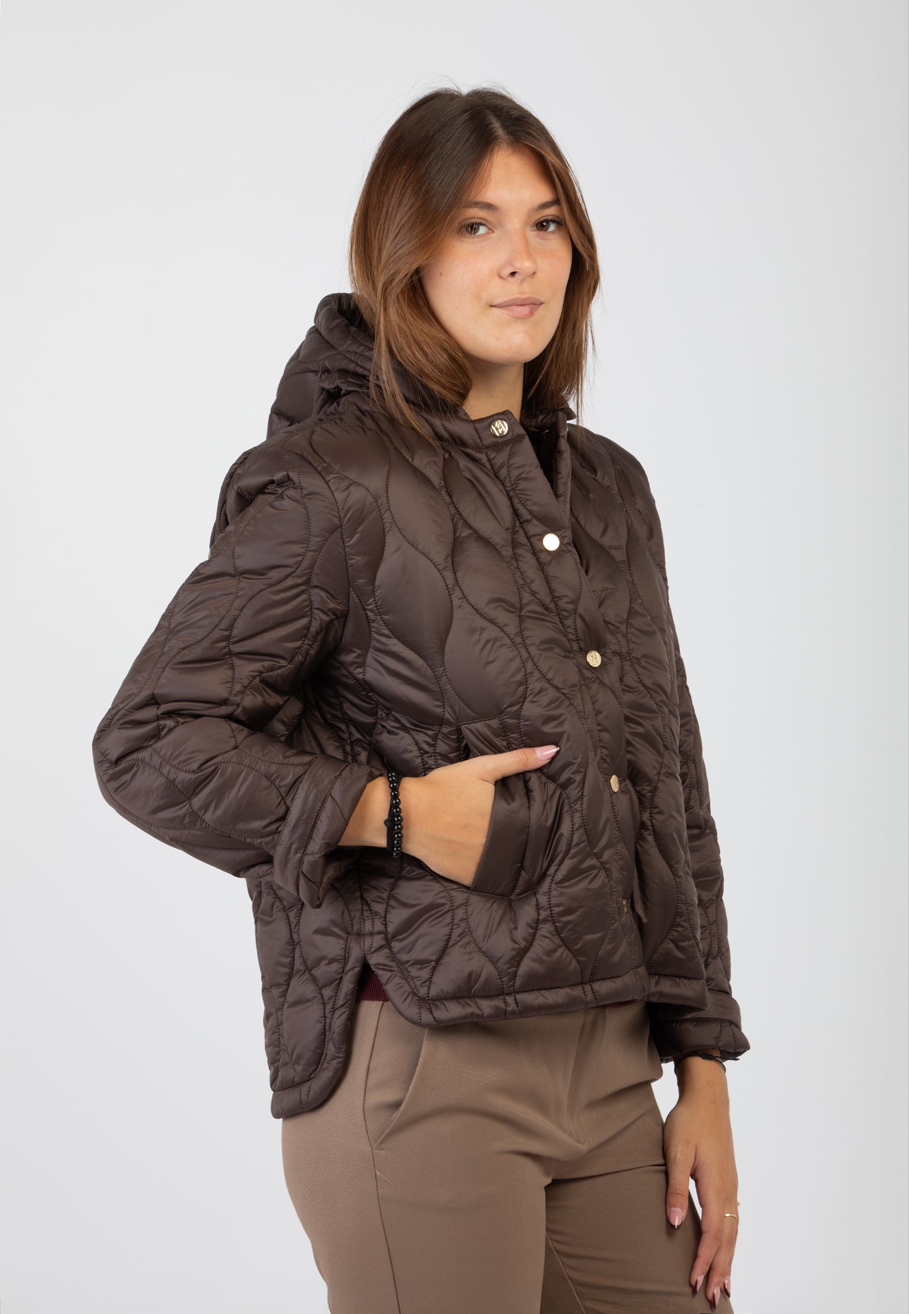Il giubbino da donna di EMME MARELLA è la scelta ideale per affrontare le giornate di pioggia con stile e praticità. Realizzato in un tessuto resistente all’acqua, presenta una raffinata trapuntatura a onde che dona un tocco elegante e contemporaneo al capo. L’imbottitura in ovatta termica garantisce un piacevole comfort termico, mantenendo il corpo caldo anche nelle giornate più fredde. Il cappuccio staccabile consente di adattare il giubbino a diverse esigenze e condizioni climatiche, rendendolo estremamente versatile. La linea femminile e curata nei dettagli completa un capo funzionale e sofisticato, perfetto per un uso quotidiano urbano.