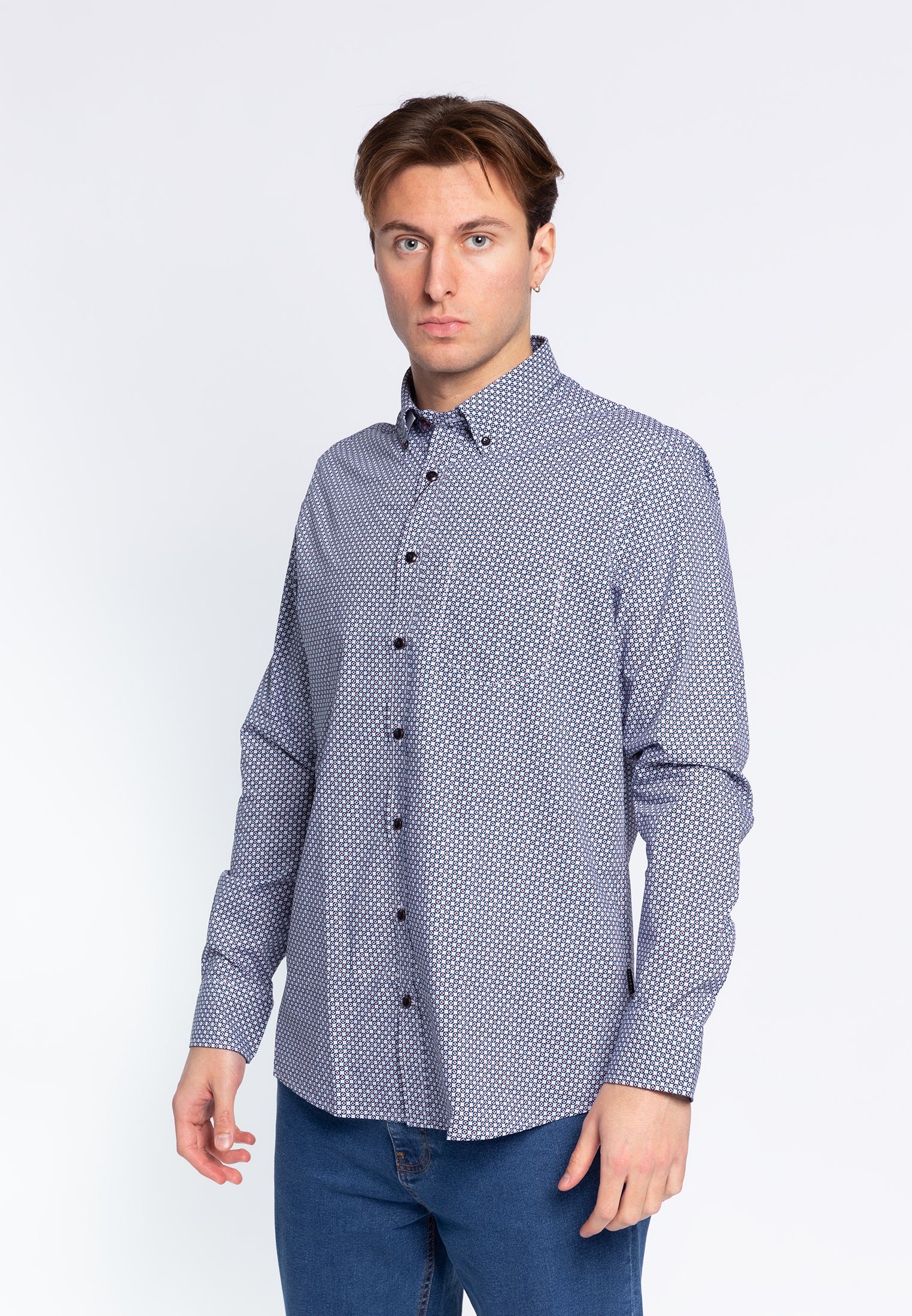 Camicia microfantasia geometrica in cotone BUGATTI 9350-48802