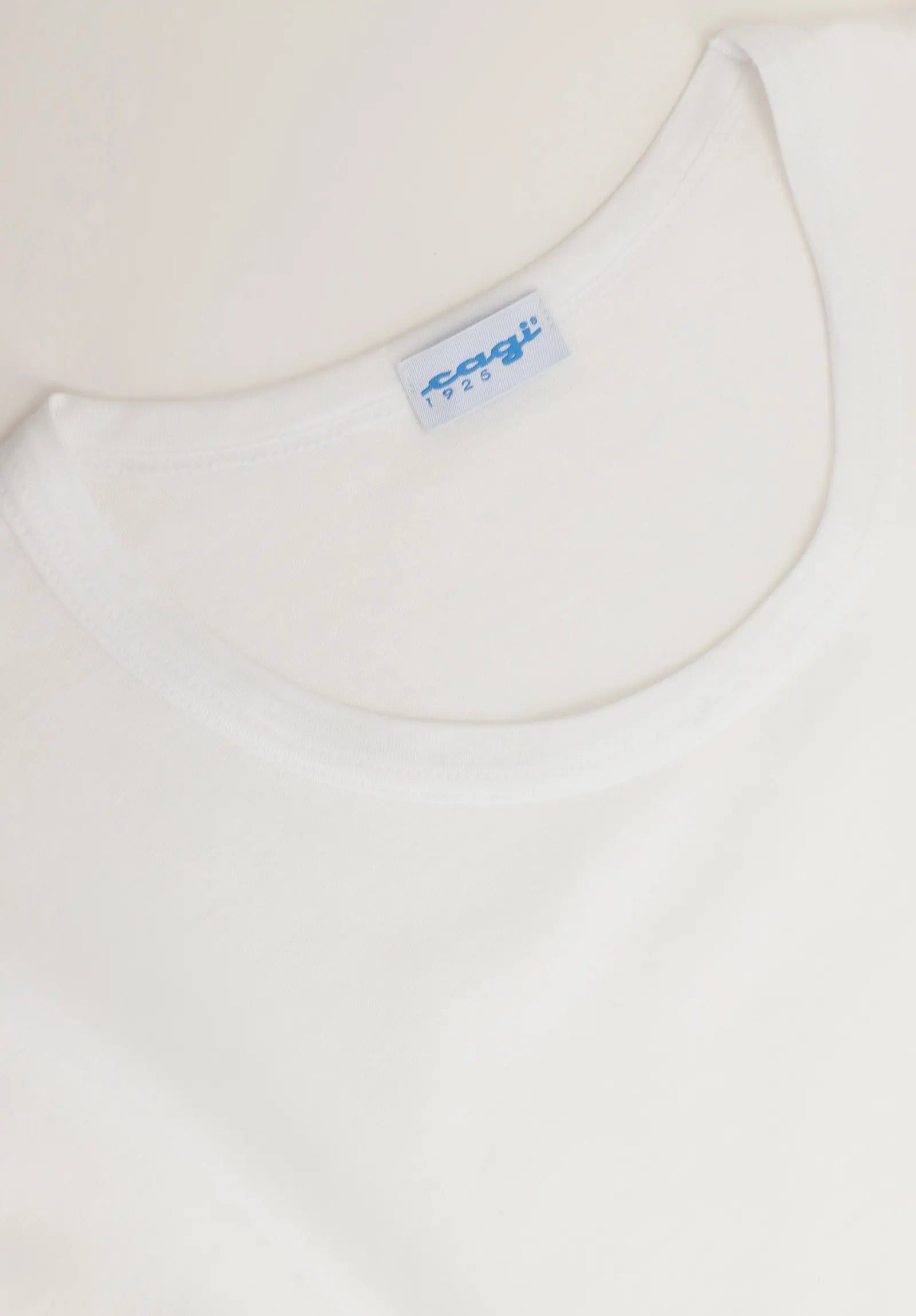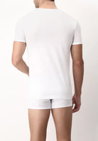 T-shirt intima classica mezza manica con girocollo basso realizzata in pregiato jersey 100% cotone filo di scozia senza cuciture ai fianchi. Questo filato conferisce al capo una perfetta vestibilità e comodità.