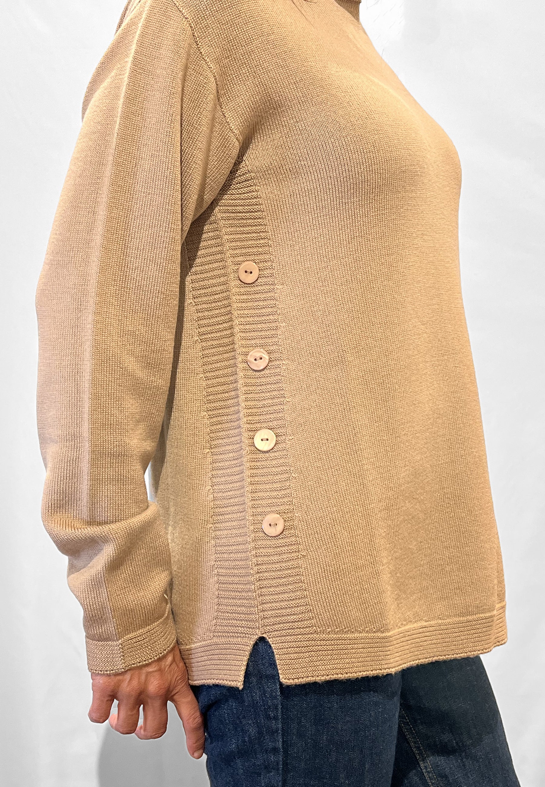 La maglia donna lana Carla Ferroni è un capo elegante e versatile che unisce comfort e stile, pensato per chi cerca abbigliamento donna Carla Ferroni di qualità, interamente prodotto in Italia. Realizzata in pura lana, questa maglia a manica lunga con girocollo presenta una lavorazione curata sui fianchi arricchita da bottoni applicati, un dettaglio raffinato che esalta la linea femminile senza rinunciare alla praticità. Il brand Carla Ferroni è sinonimo di moda accessibile, caratterizzata da tessuti pregiati e da un design contemporaneo che valorizza ogni occasione, dal tempo libero alle uscite più eleganti. Questa maglia donna in lana rappresenta la scelta ideale per chi desidera indossare un capo caldo e confortevole, perfetto per l’inverno, con l’inconfondibile stile made in Italy. Disponibile nella nuova collezione di abbigliamento donna Carla Ferroni, è il capo che unisce tradizione sartoriale e tendenza, garantendo un ottimo rapporto qualità prezzo. Capo prodotto in Italia. Made