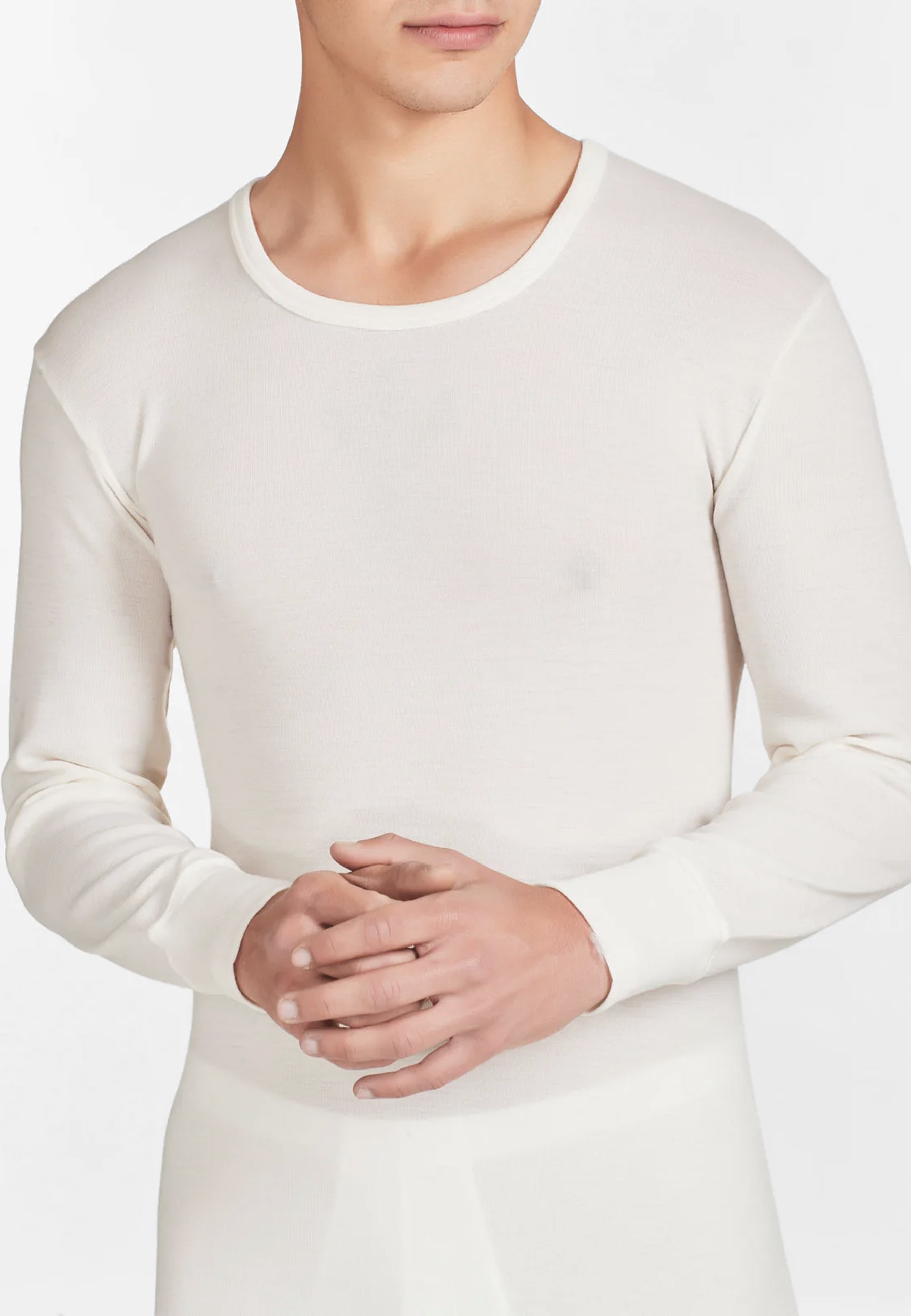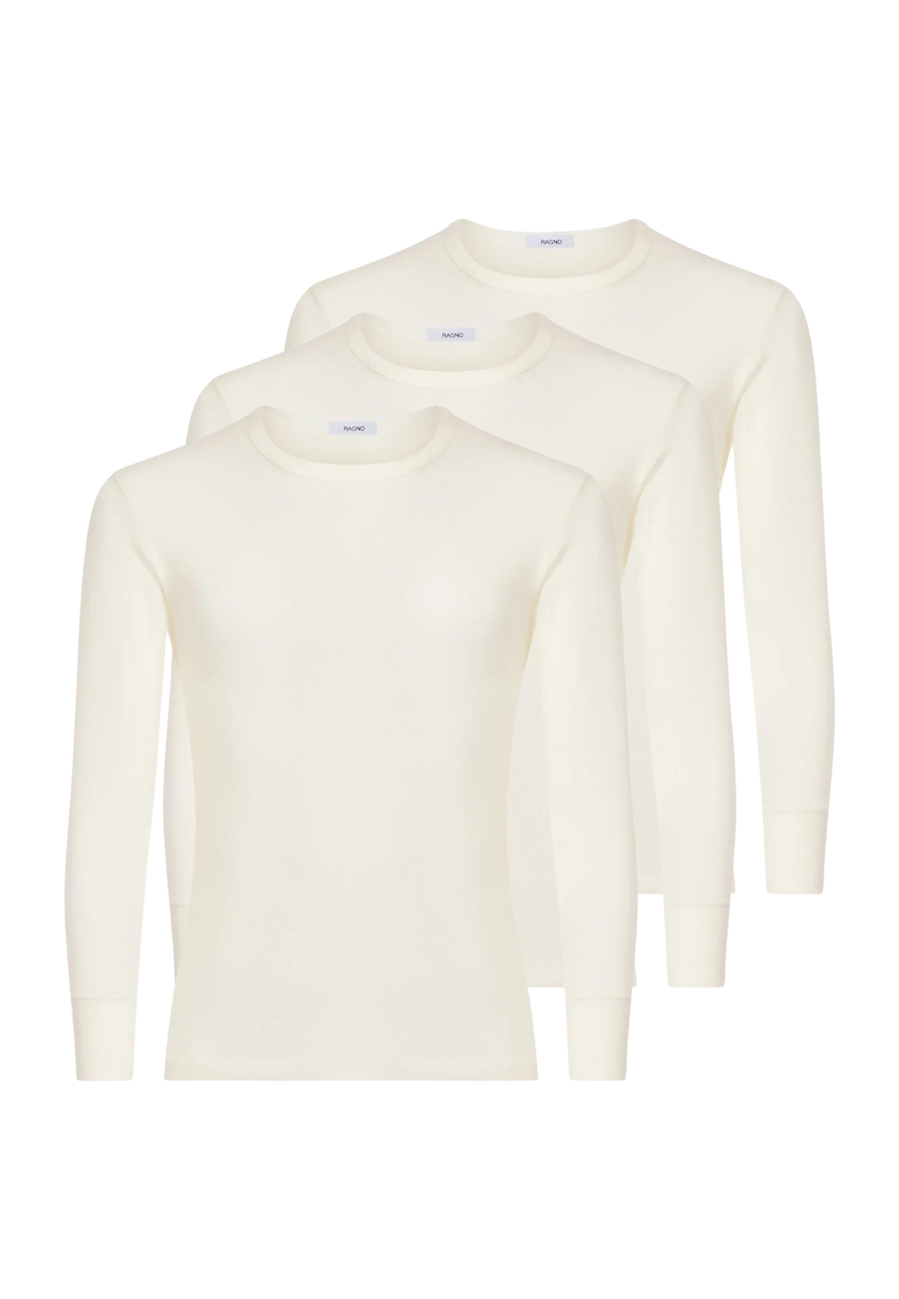 3 Magliette intime uomo con girocollo a manica lunga in maglia unita di pura lana merino di peso medio articolo RAGNO 60039. Capo realizzato in pura lana merino extrafine dalle rinomate proprietà termoregolanti e naturale elasticità della lana tessute in maglia unita di peso medio. (Il prezzo si riferisce alla confezione da 3 magliette).