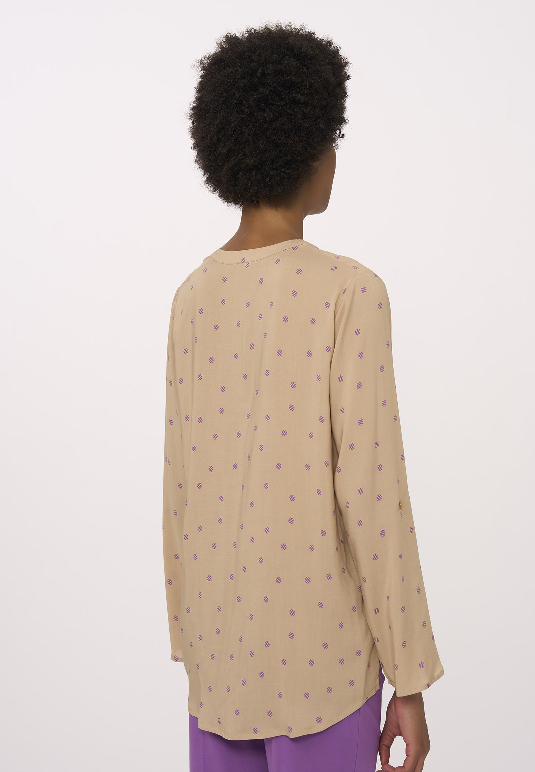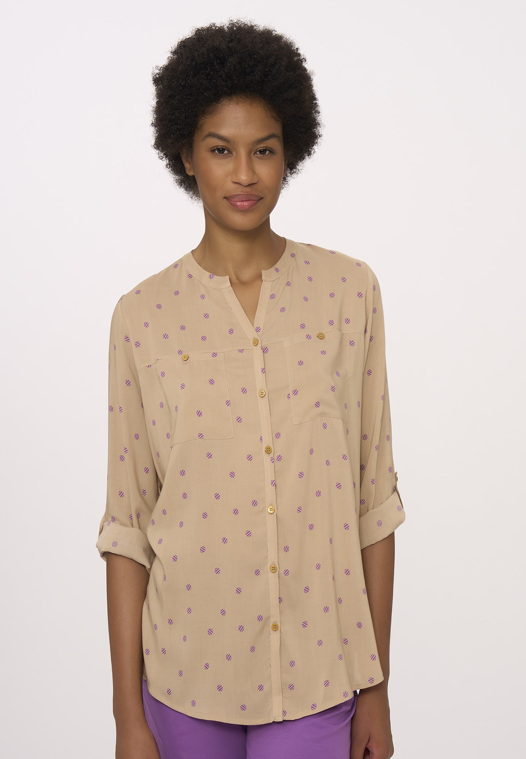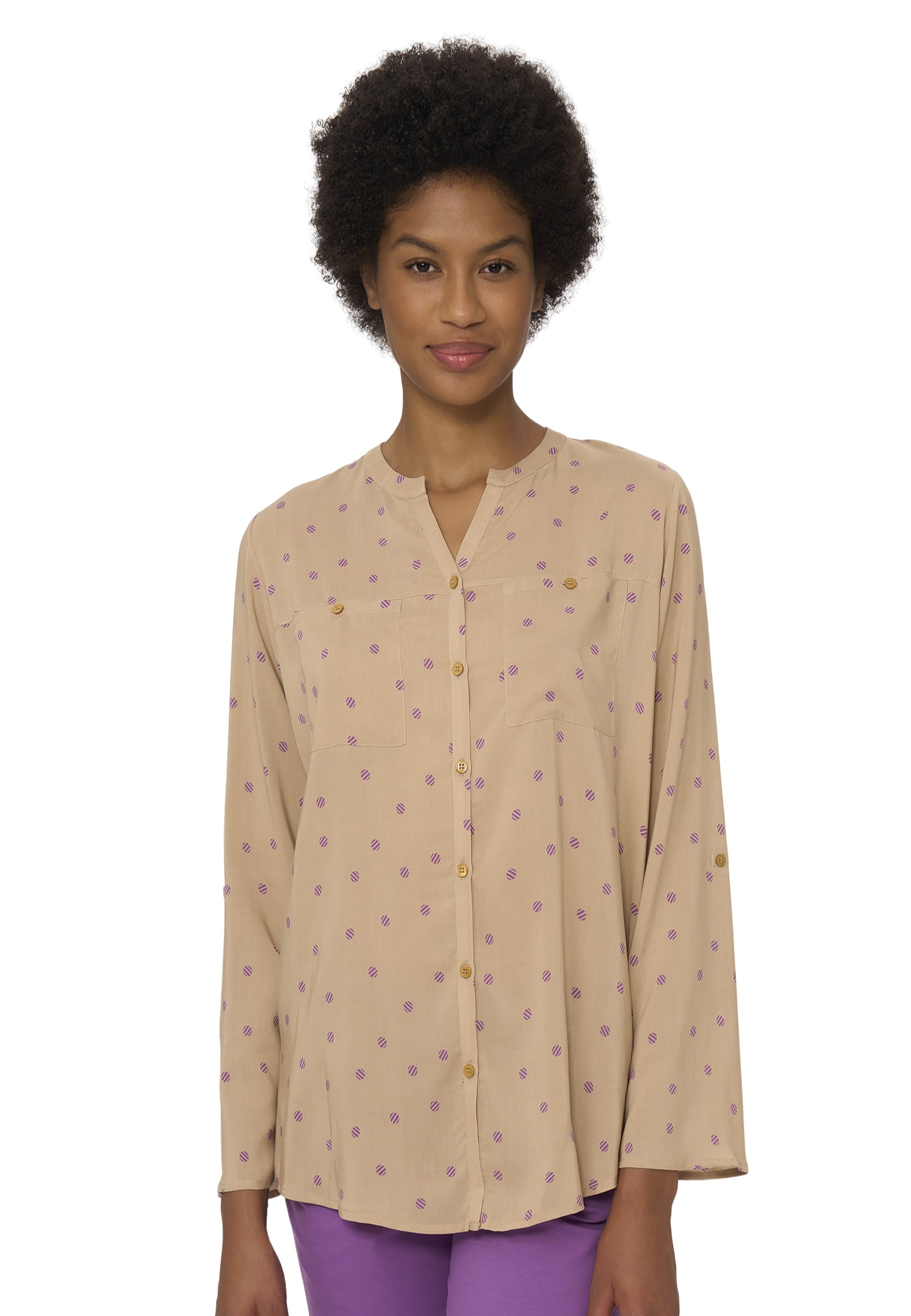 Questa camicia da donna è realizzata in pura viscosa, un materiale leggero e traspirante. La fantasia del tessuto aggiunge un tocco di colore e stile al tuo look. Perfetta per la primavera e l'estate, questa camicia è una scelta elegante e confortevole per ogni occasione.