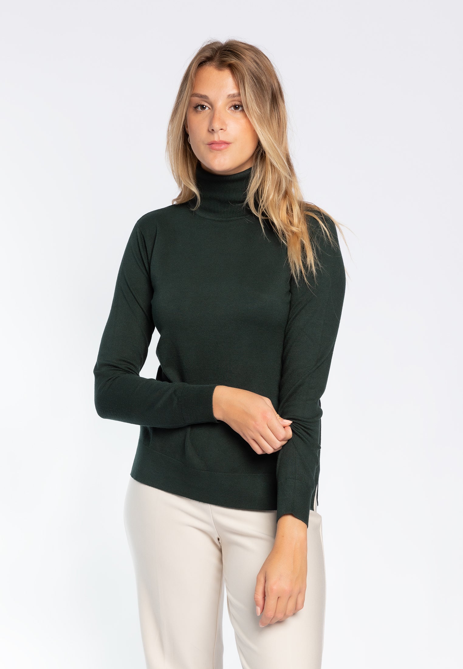 Questo dolcevita a sottogiacca per donna è l'ideale per l'autunno grazie alla sua maglia morbida di viscosa e al collo alto. Il design semplice e la tinta unita lo rendono un capo versatile, perfetto da indossare sotto giacche o da solo. Confortevole e di qualità.