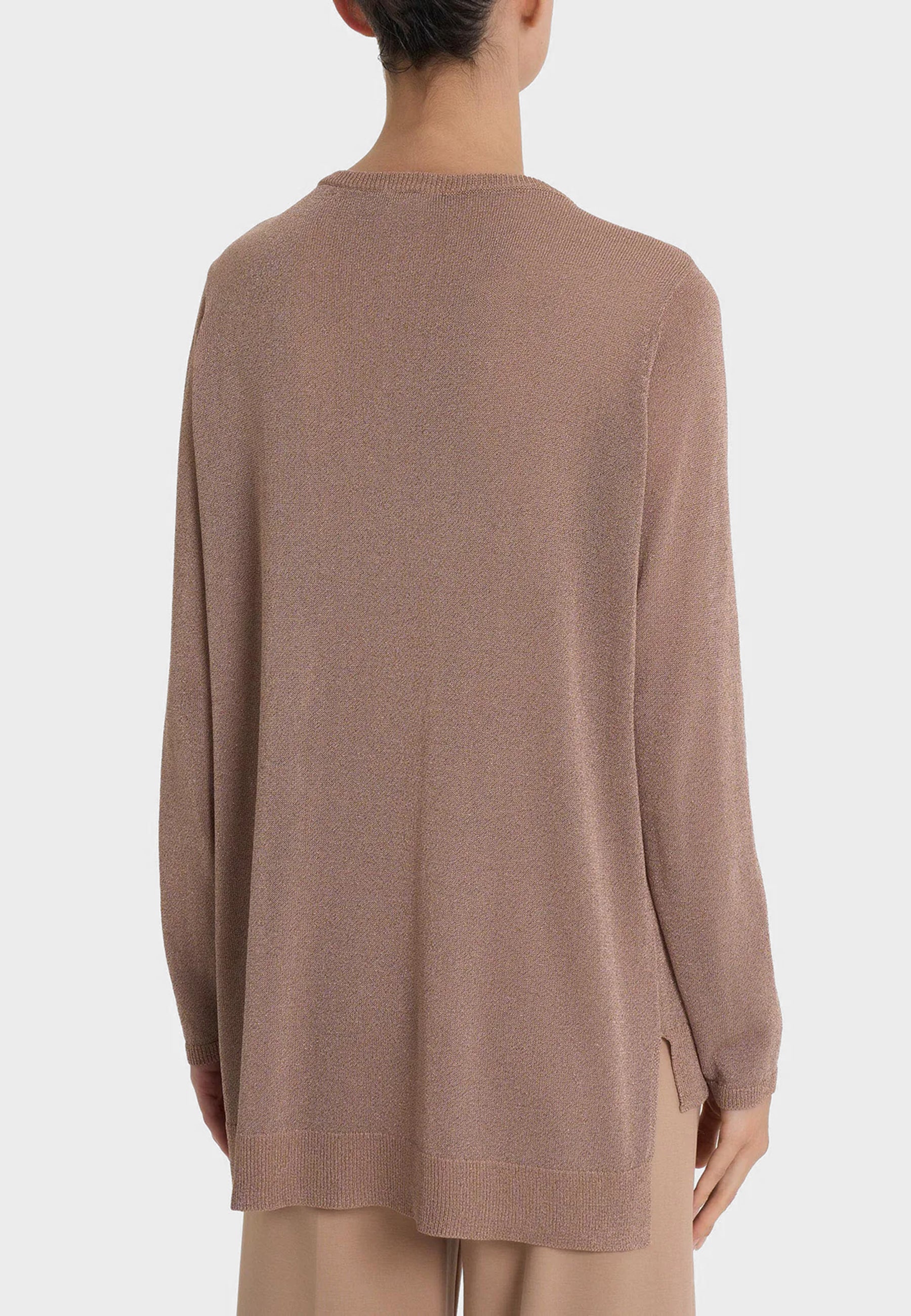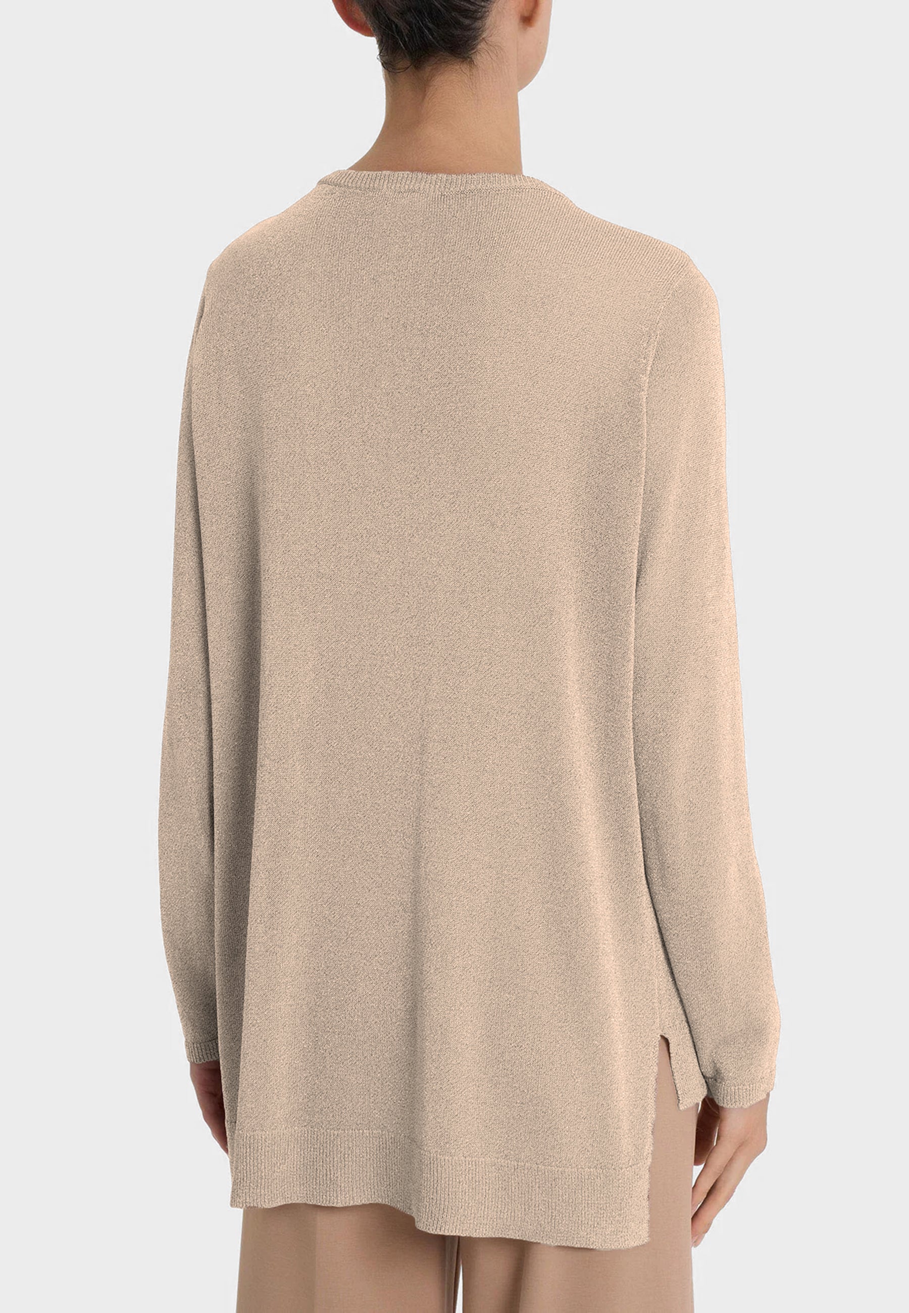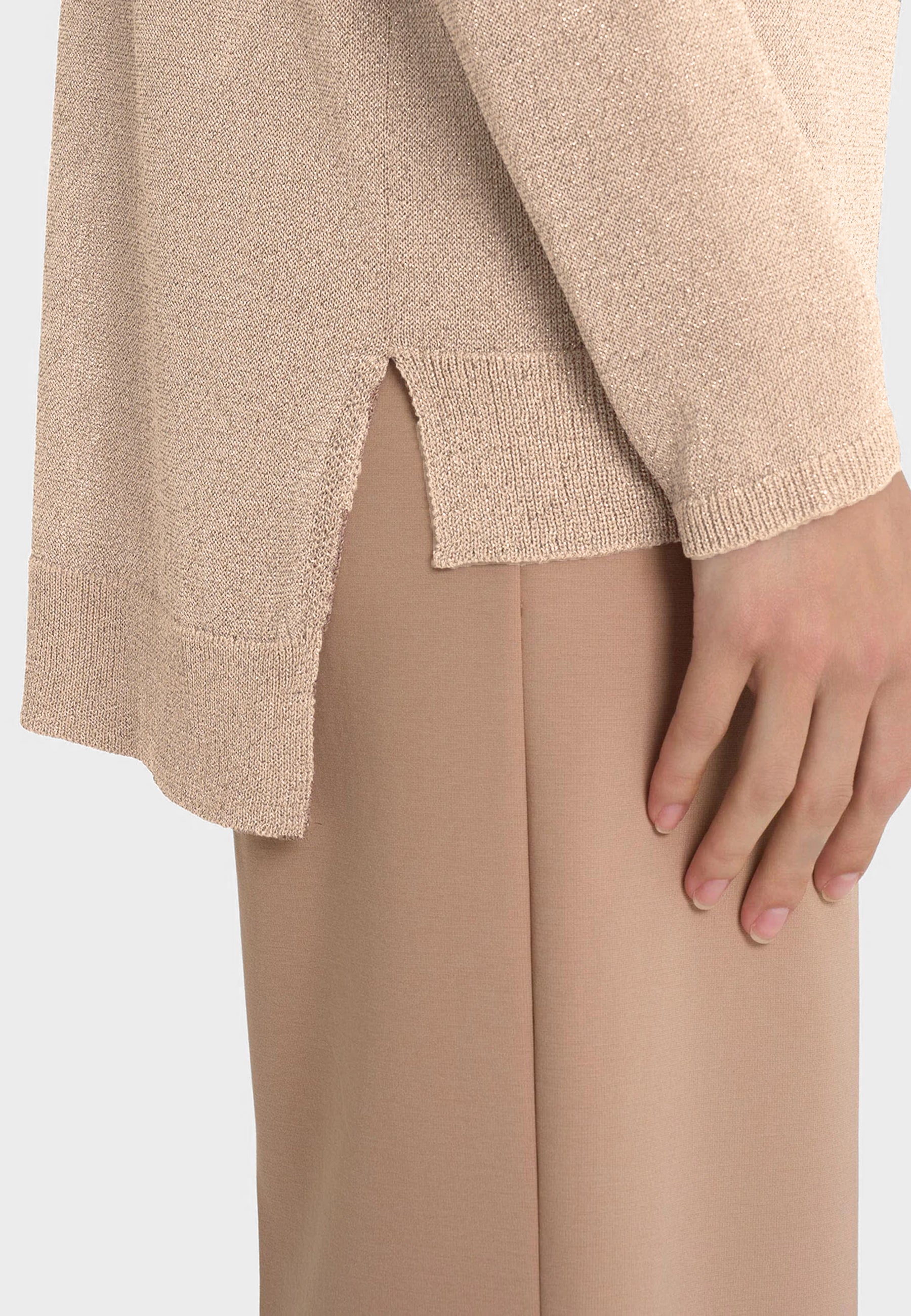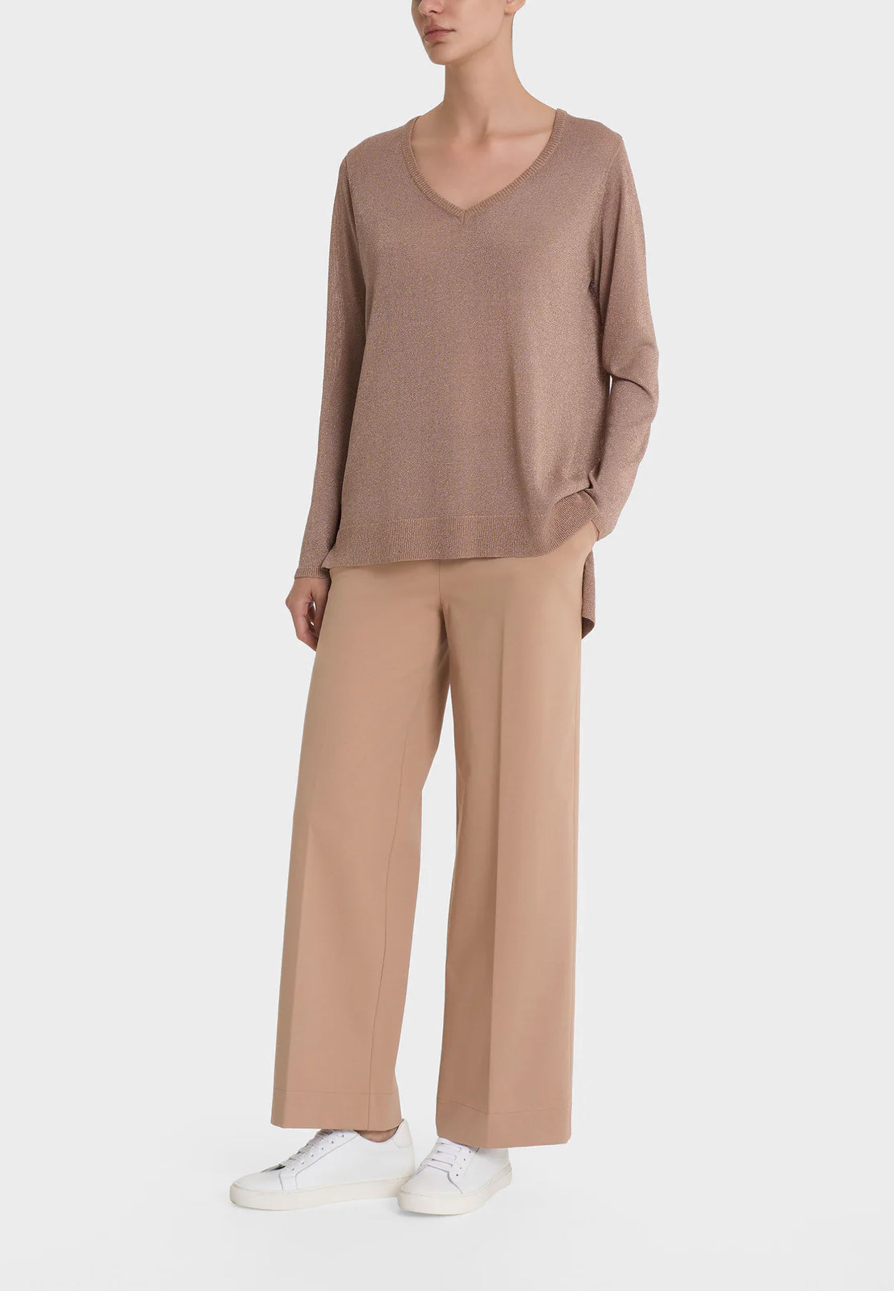 La maglia a maniche lunghe con scollo a V di RAGNO è un capo raffinato che unisce eleganza e comfort, perfetto per valorizzare ogni look con un tocco di luminosità. Realizzata con un mix di viscosa e lurex, si distingue per la sua lavorazione smacchinata che dona leggerezza e una vestibilità fluida. Il dettaglio in lamé aggiunge un effetto brillante, ideale per creare outfit sofisticati sia per il giorno che per la sera. Morbida al tatto e piacevole da indossare, questa maglia rappresenta una scelta versatile e femminile, perfetta per chi ama coniugare stile e praticità in ogni occasione.