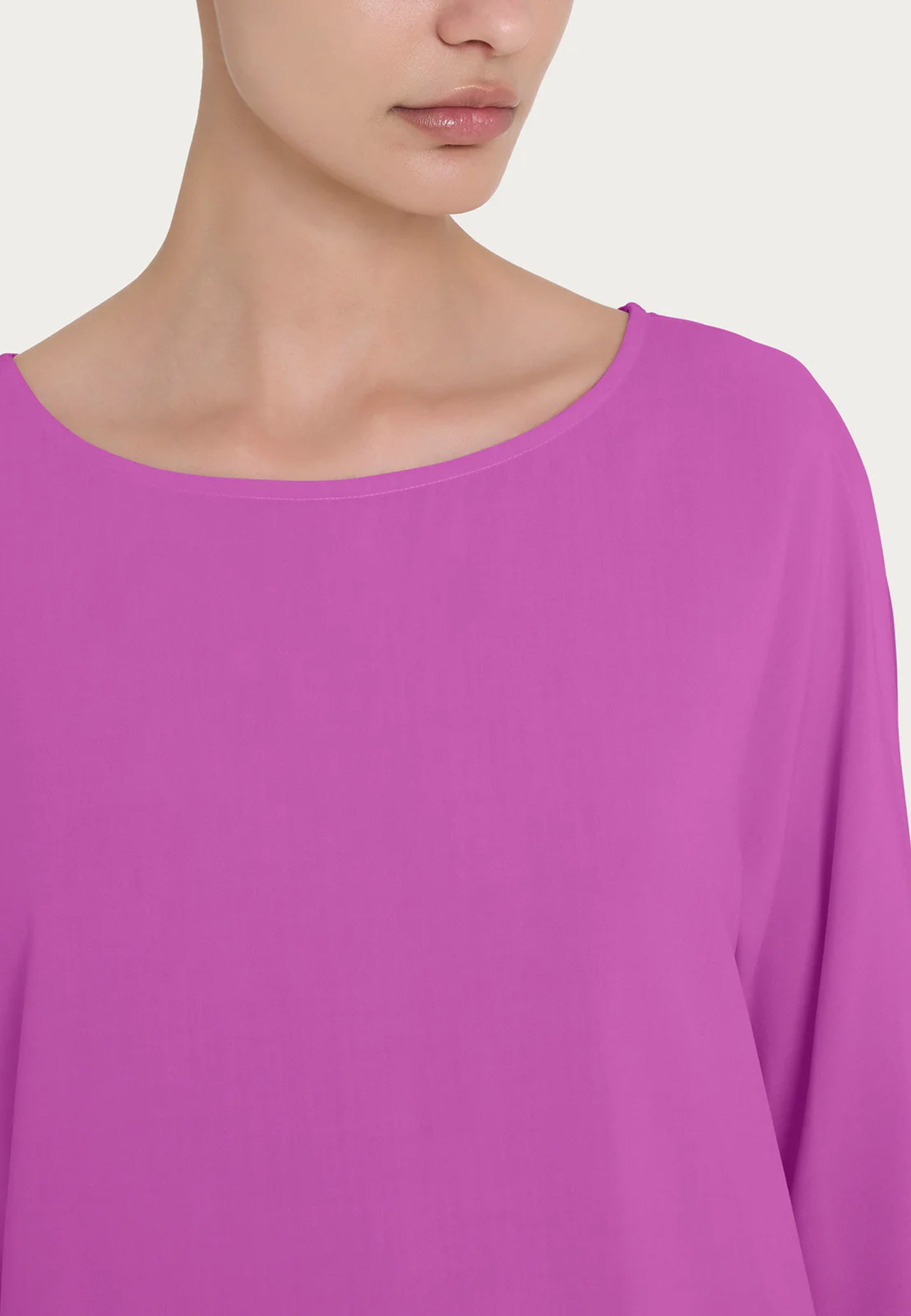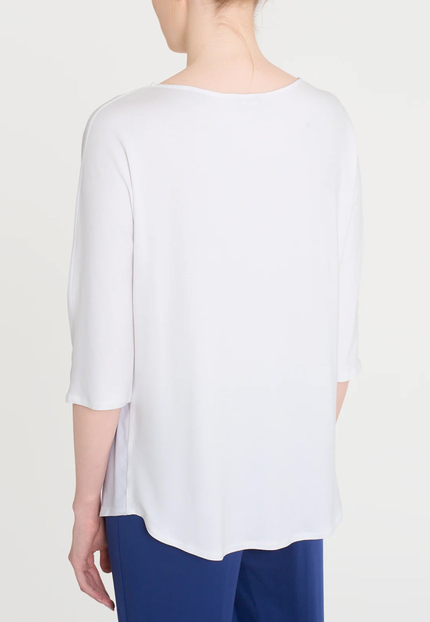La maglia a manica tre quarti bimaterica di RAGNO è un capo dallo stile moderno e raffinato, perfetto per valorizzare ogni look con eleganza e comfort. Il design si distingue per l’abbinamento di due materiali: il tessuto fluido sul davanti dona un tocco sofisticato e leggero, mentre la maglina sul retro assicura morbidezza e vestibilità perfetta. Grazie alla sua versatilità, questa maglia si adatta facilmente a diverse occasioni, dal tempo libero agli impegni quotidiani, garantendo sempre un look curato e alla moda. Ideale da abbinare a pantaloni o gonne, è una scelta impeccabile per chi cerca uno stile femminile e contemporaneo.