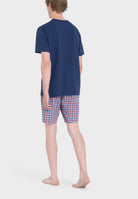 Il pigiama corto da uomo firmato RAGNO unisce comfort e stile in un capo ideale per le notti estive o i momenti di relax a casa. La maglia, a manica corta e con collo a serafino, è realizzata in tinta unita per un look essenziale e pulito, perfetto per chi apprezza la semplicità. Il pantalone, caratterizzato da una classica fantasia a quadri, è dotato di pratiche tasche laterali e di una tasca posteriore, pensate per offrire funzionalità e comodità. La qualità dei materiali garantisce una vestibilità piacevole e leggera, rendendo questo pigiama la scelta ideale per chi cerca un capo curato nei dettagli e adatto al riposo quotidiano.