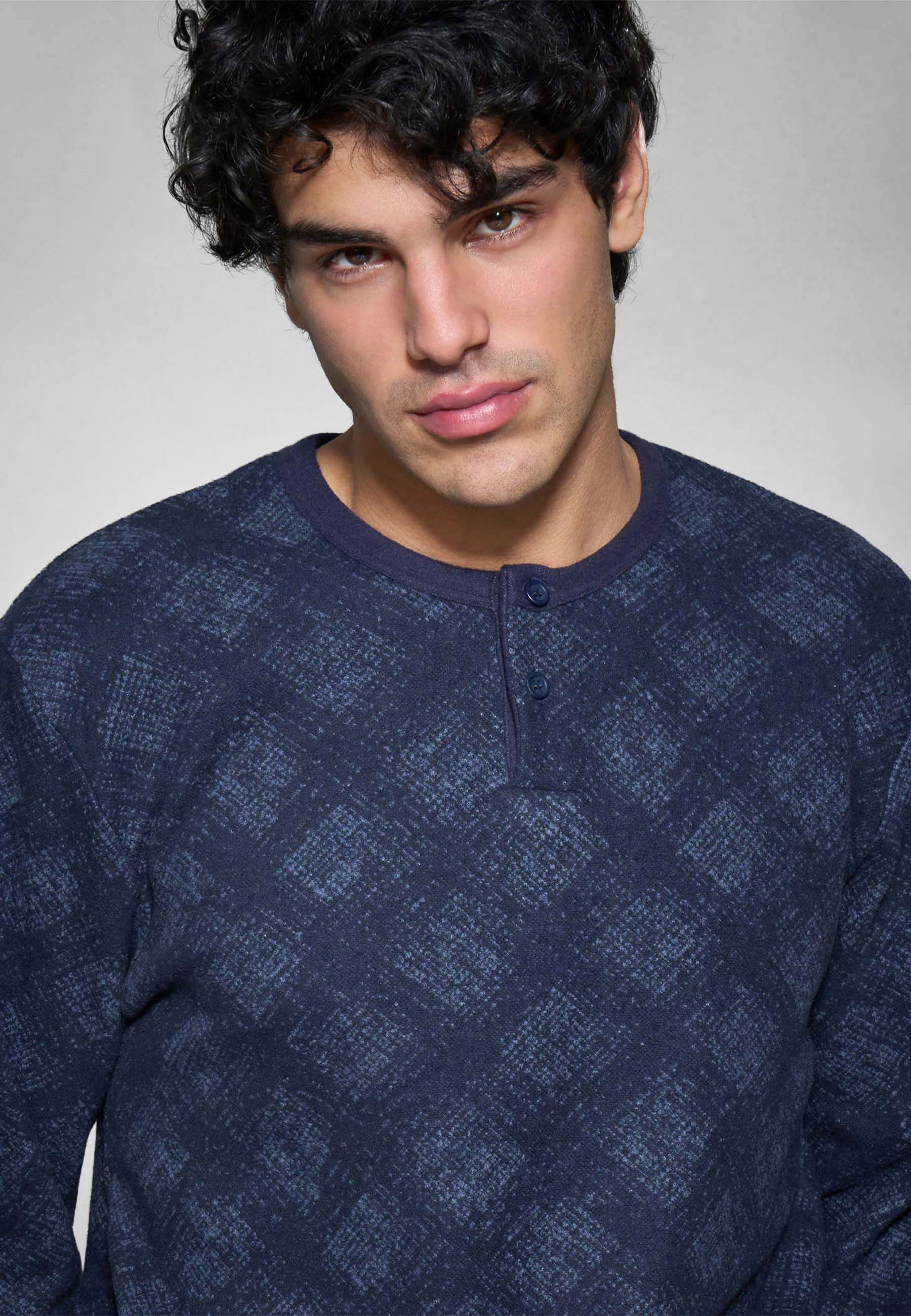Questo pigiama lungo è perfetto per le fredde serate invernali. Realizzato in tessuto di punto milano, ti terrà al caldo e confortevole. Il design a rombi aggiunge un tocco di stile al tuo look notturno. Il cotone di alta qualità garantisce uno spazio confortevole per dormire bene.