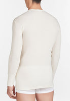 Maglietta girocollo a manica lunga in costina di pura lana merino pesante. Questo capo fa parte della linea Merino Strong della Ragno, linea realizzata in pura lana merino extrafine. Le rinomate proprietà termoregolanti e la naturale elasticità della lana sono accentuate dalla costruzione del tessuto in costina 2x1 pesante. Questo capo offre un comfort eccellente e un design di qualità che non passa inosservato. Allo stesso tempo, la lana è un materiale resistente e duraturo, garantendo un capo che durerà nel tempo.