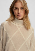 La maglia da donna EMME MARELLA con collo alto è un capo raffinato e versatile, ideale per affrontare la stagione fredda con stile. Realizzata in un pregiato misto lana, con presenza di lana vergine e filati lurex, si distingue per una lavorazione a rombi che dona un tocco elegante e sofisticato alla texture. La vestibilità è confortevole e valorizza la silhouette senza rinunciare alla praticità. Perfetta da indossare sotto blazer o cappotti, questa maglia unisce calore e brillantezza in un equilibrio perfetto, diventando un elemento chiave del guardaroba femminile per look sia casual che più ricercati.