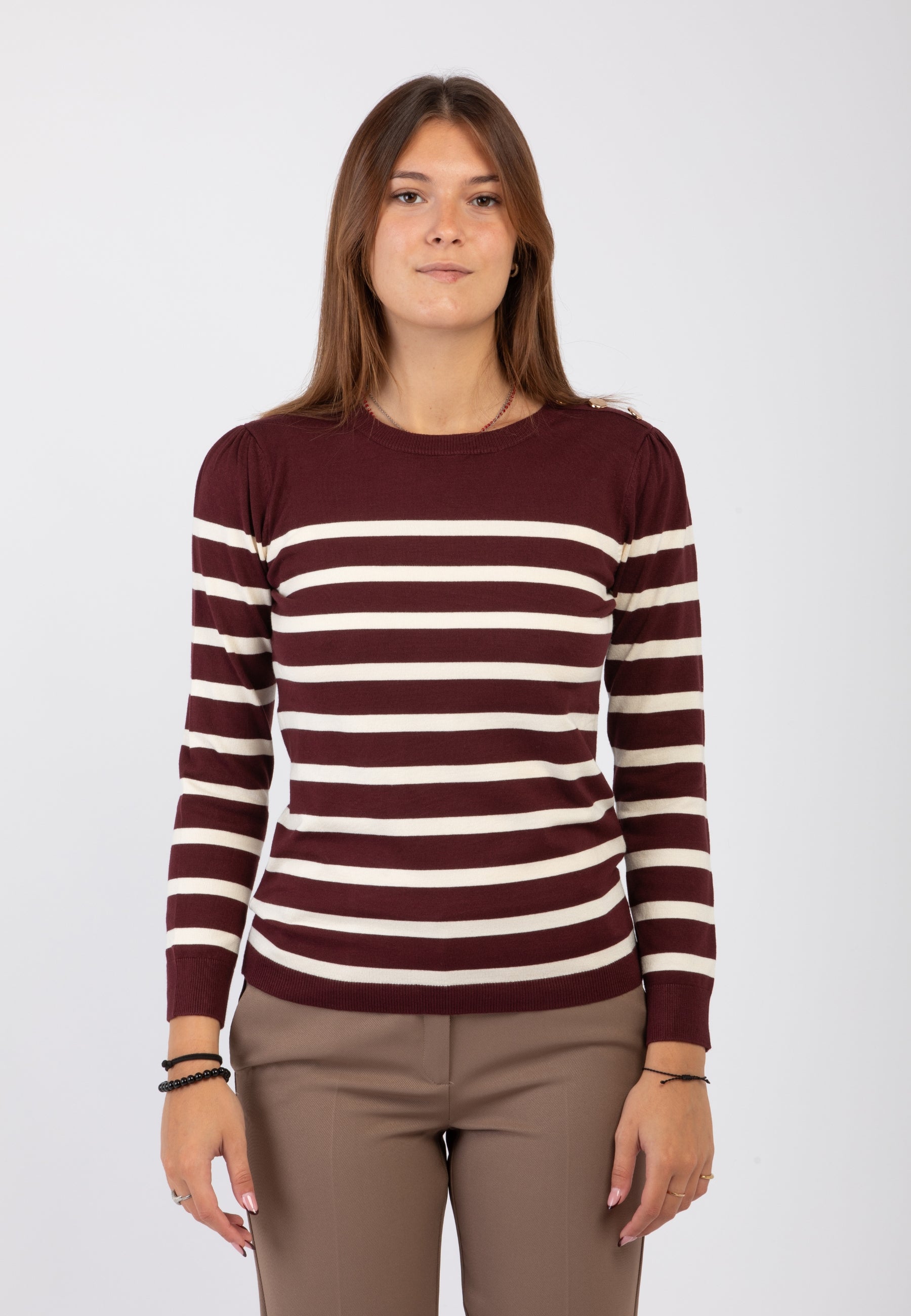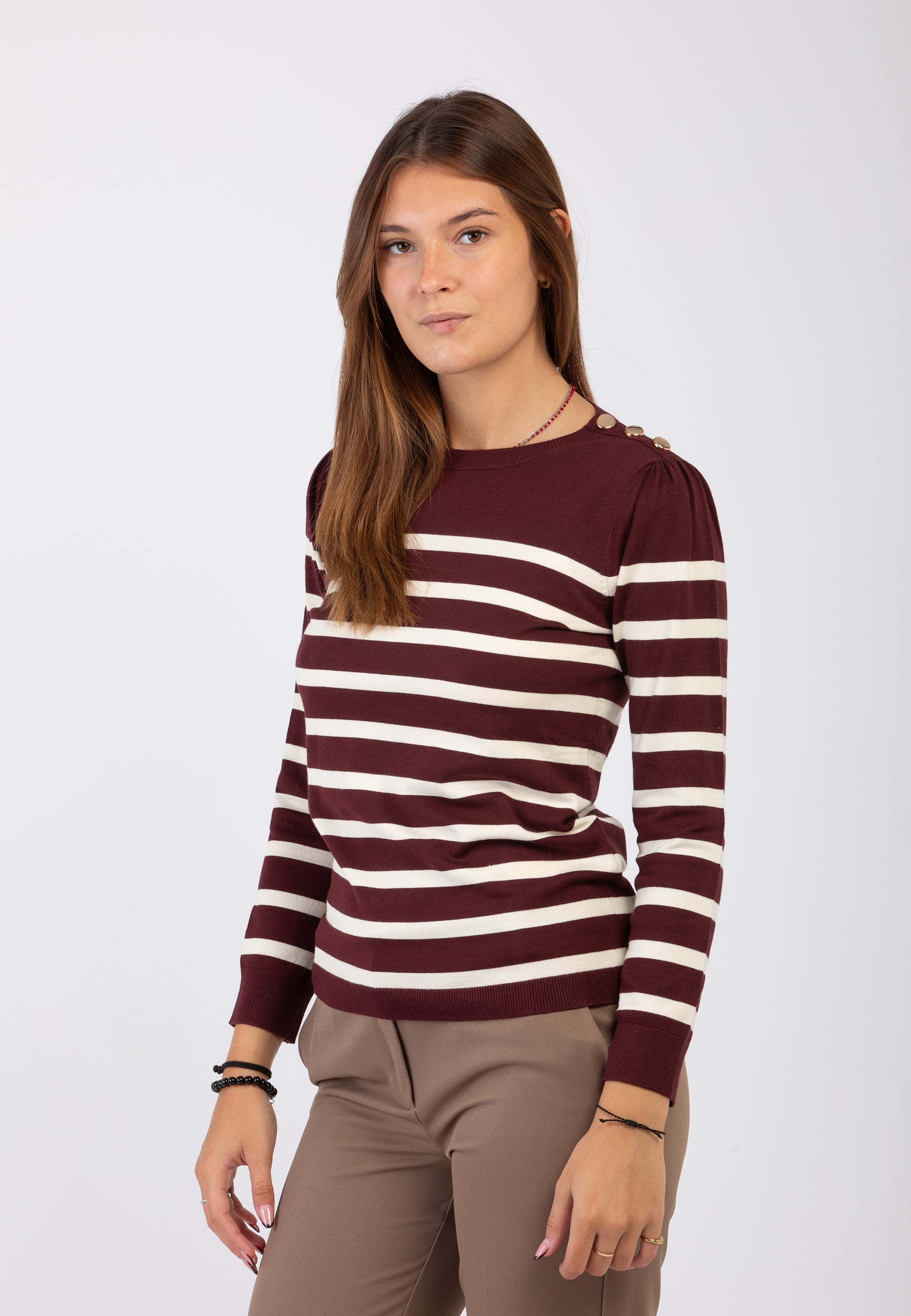 La maglia da donna EMME MARELLA è un capo raffinato e versatile, perfetto per completare il guardaroba con un tocco di eleganza quotidiana. Realizzata in morbido jersey di viscosa, offre una vestibilità confortevole e leggera, ideale per ogni stagione. Il design a righe orizzontali dona un aspetto dinamico e moderno, mentre i bottoni decorativi sulla spalla aggiungono un dettaglio distintivo e femminile. Le maniche lunghe e la linea essenziale la rendono adatta sia a look casual che più sofisticati, abbinabile facilmente a pantaloni o gonne. Una scelta di stile che unisce qualità dei materiali e cura del dettaglio.