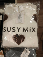 SUSY MIX Maglia Donna Scollo V Lavorazione Nuvola Morbida e Calda Applicazioni Cuori ART. M92159