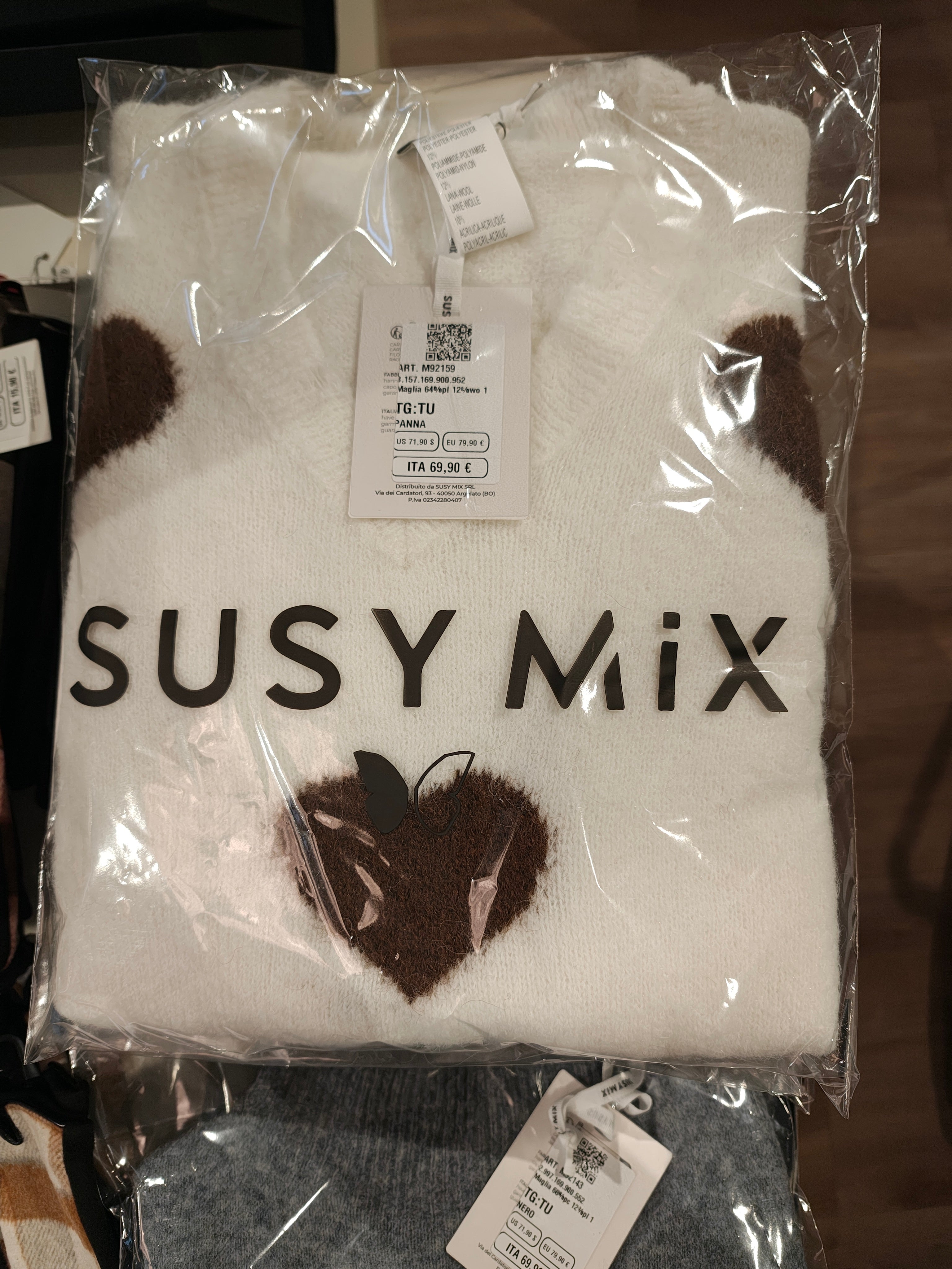 Questa maglia donna SUSY MIX con scollo a V è la scelta ideale per chi desidera un capo femminile, confortevole e attento alle tendenze. Realizzata in filato morbido e caldo, è pensata per accompagnare la stagione più fresca garantendo una piacevole sensazione sulla pelle e un’ottima vestibilità. Il design essenziale è valorizzato da un’elegante applicazione a cuori che dona un tocco romantico e moderno, perfetto per completare outfit quotidiani o look più curati. Facile da abbinare a pantaloni, gonne o jeans, questa maglia da donna rappresenta una soluzione versatile per l’abbigliamento femminile. SUSY MIX propone moda donna attuale e accessibile, ideale per chi vuole vestire alla moda senza spendere tanto.