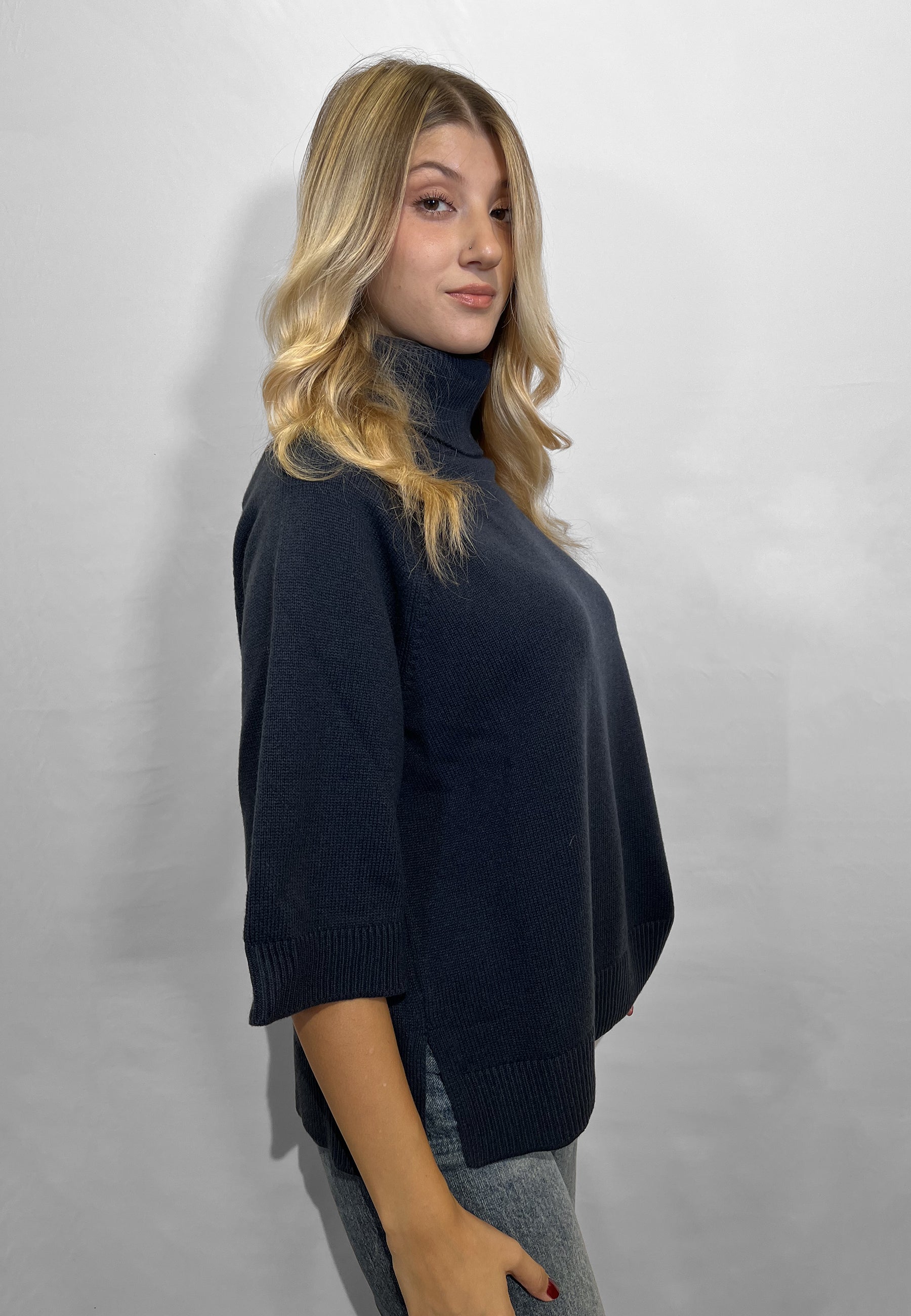 Il dolcevita da donna firmato GRAN SASSO è una maglia dal taglio scatola over, pensata per offrire il massimo del comfort con uno stile moderno e raffinato. Realizzato in un pregiato mix di lana, cashmere e viscosa, questo capo unisce morbidezza, calore e leggerezza, risultando ideale per le stagioni più fresche. I delicati spacchi laterali e le maniche a tre quarti donano un tocco contemporaneo e femminile, perfetto per completare outfit eleganti o casual. La qualità dei materiali e la cura artigianale tipica del brand italiano rendono questo dolcevita un must-have di stagione, versatile e intramontabile. Capo prodotto in Italia. Made in italy.