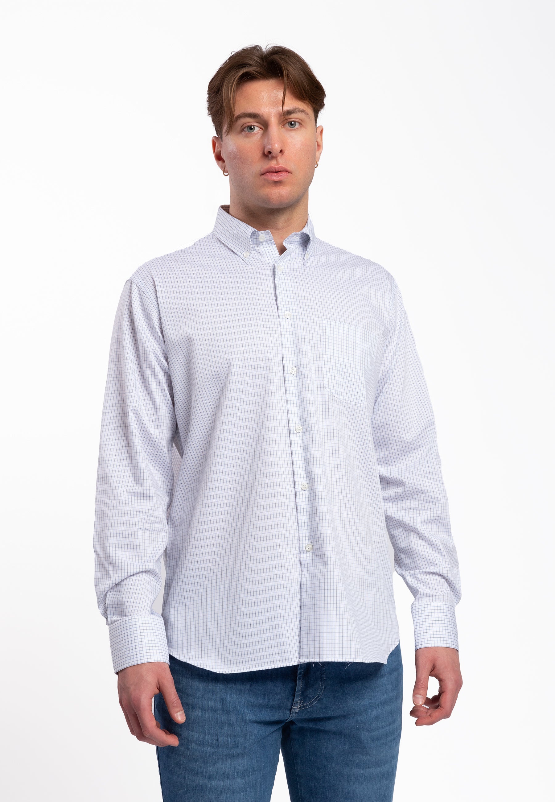 La camicia ideale per l'uomo moderno! Tessuto in cotone al 100% NO STIRO, maniche lunghe e vestibilità classica, il che la rende comoda e versatile. Con il collo botton down e i quadretti, è perfetta per un look elegante e senza doverla stirare. Disponibile in vari colori.