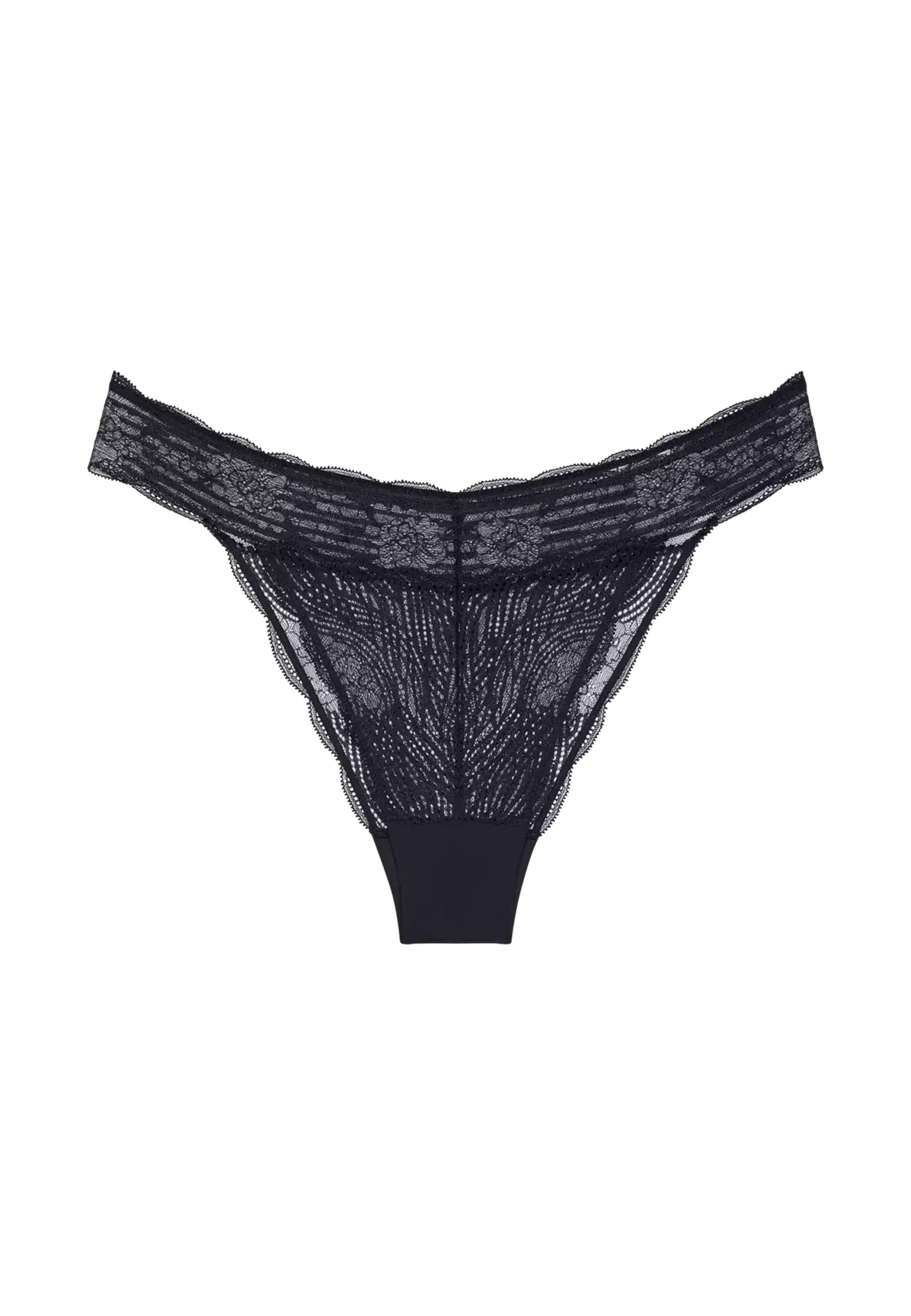 Slip brasiliano sgambato realizzato in un pizzo riciclato morbido ed elasticizzato. Progettato per valorizzare qualsiasi fisico grazie all'assenza di cuciture
