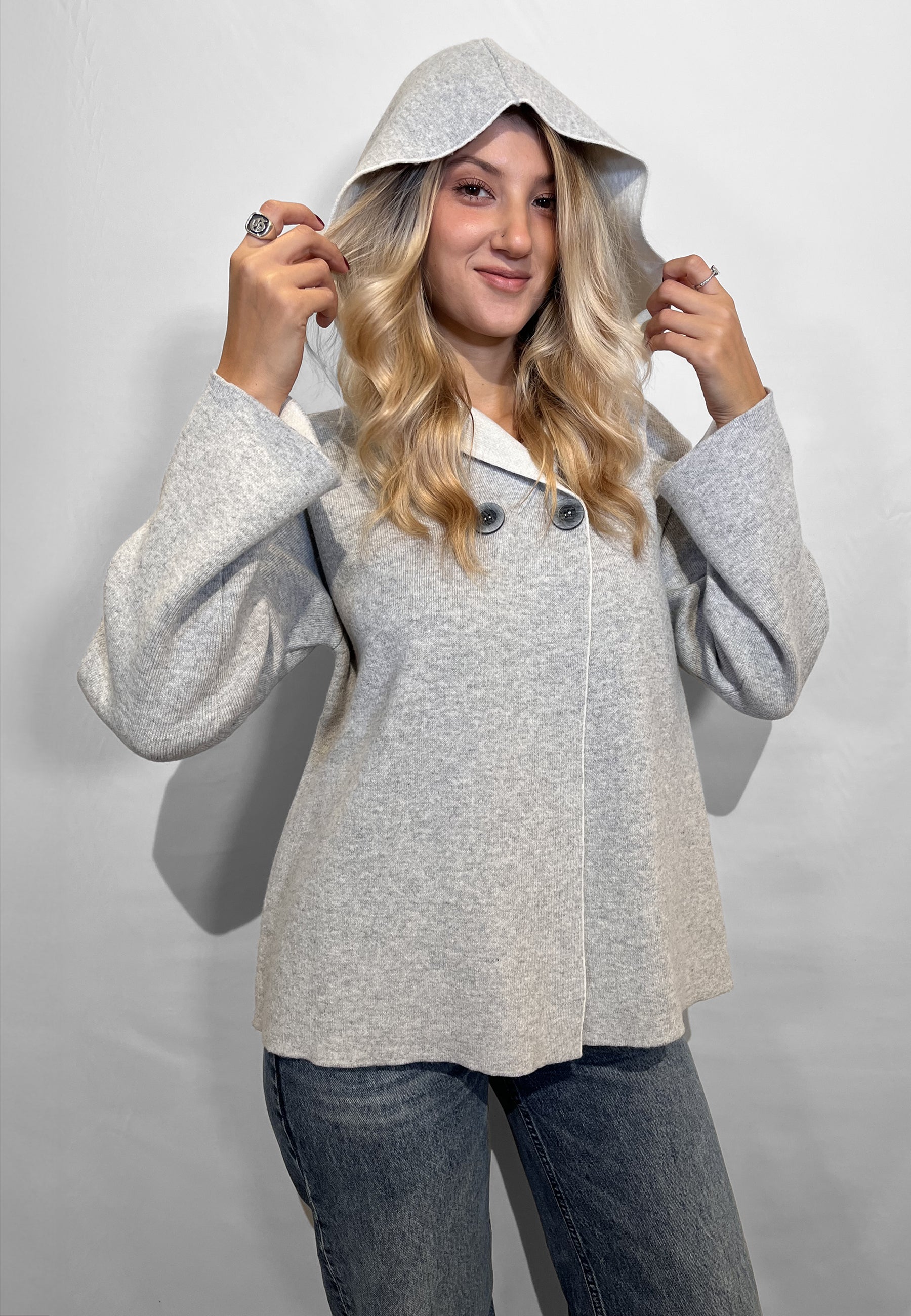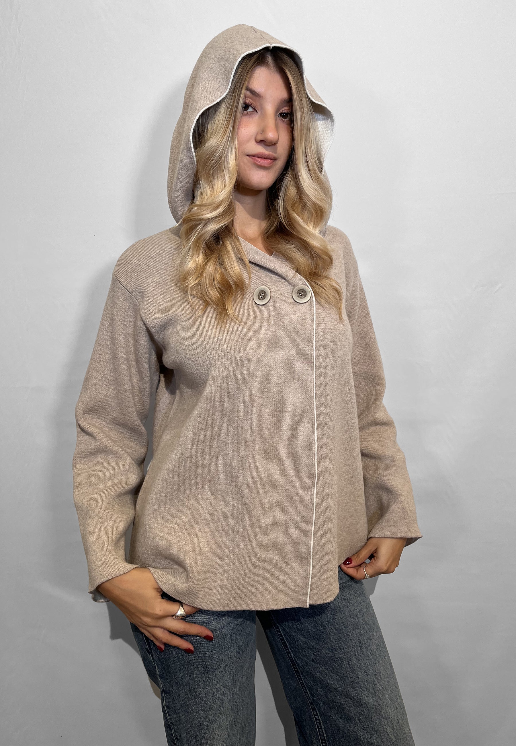 INTRECCI Giacca Donna Manica Lunga Cappuccio Lana Cachemire ART. W25-72