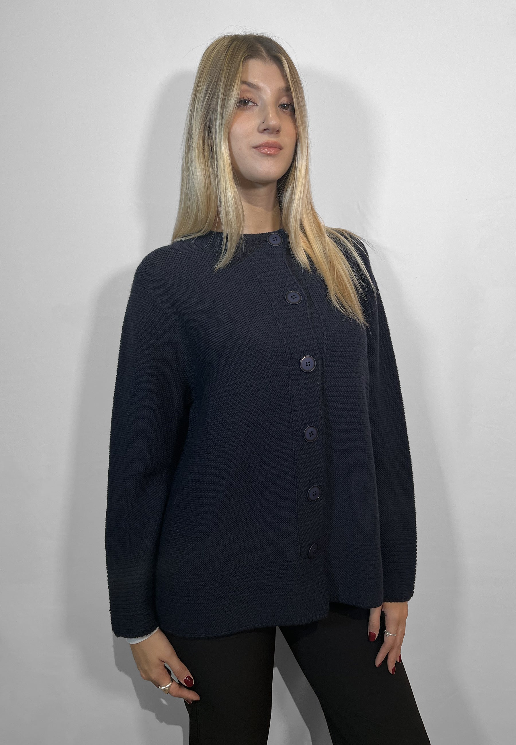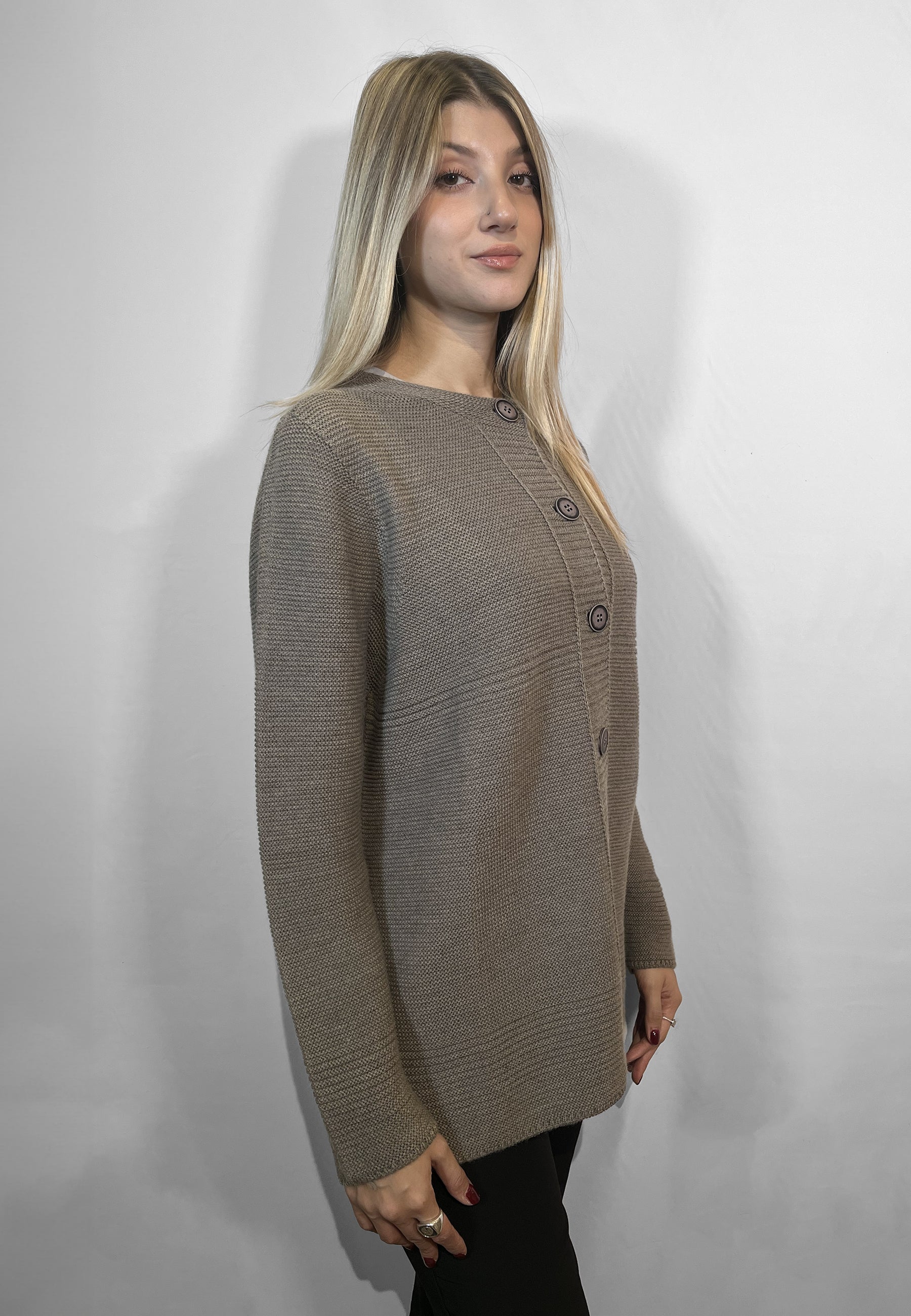 La giacca donna a coreana in maglia lavorazione links firmata LE MORBIDE rappresenta l’eleganza e la qualità del vero Made in Italy. Realizzata con una raffinata lavorazione in maglia links, questo capo unisce comfort e stile in un design ispirato al classico taglio Chanel, reinterpretato in chiave contemporanea. La vestibilità over tipica del brand valorizza la silhouette con morbide linee fluide, perfette per chi cerca un look sofisticato ma disinvolto. Ideale da indossare sia in abbinamento a pantaloni eleganti che con jeans per un tocco casual chic, la giacca a coreana LE MORBIDE è un capo di maglieria da donna di alta qualità, pensato per offrire calore, morbidezza e un’eleganza senza tempo. Ogni dettaglio racconta l’artigianalità italiana e la cura per i materiali che contraddistinguono il marchio LE MORBIDE, sinonimo di comfort, stile e autenticità Made in Italy.