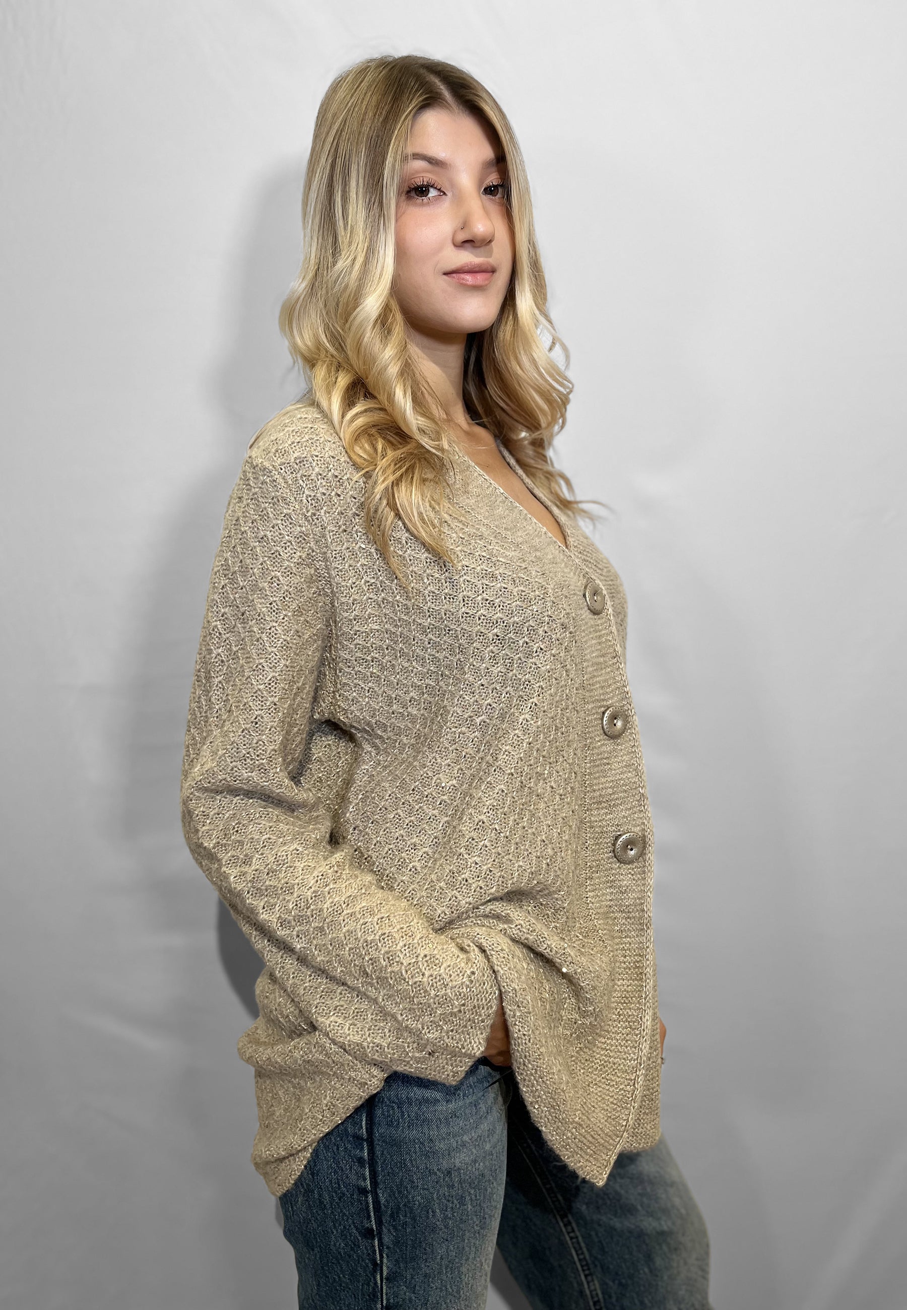 La giacca cardigan da donna LE MORBIDE è un capo di maglieria elegante e raffinato, realizzato in Italia con la qualità e l’attenzione ai dettagli che contraddistinguono il brand. Lavorata in maglia con inserti in paillettes, questa giacca dona un tocco di luce e femminilità ad ogni outfit, mantenendo al tempo stesso un comfort impeccabile grazie alla sua vestibilità curvy, pensata per valorizzare ogni forma. I bottoni marmorizzati aggiungono un dettaglio sofisticato che rende il cardigan perfetto sia per un look casual chic che per un’occasione speciale. La collezione LE MORBIDE propone capi di maglieria da donna prodotti in Italia, sinonimo di qualità, stile e morbidezza, ideali per chi cerca abbigliamento femminile elegante e confortevole come giacche in maglia, cardigan curvy e maglieria artigianale made in Italy. Prodotto in Italia.