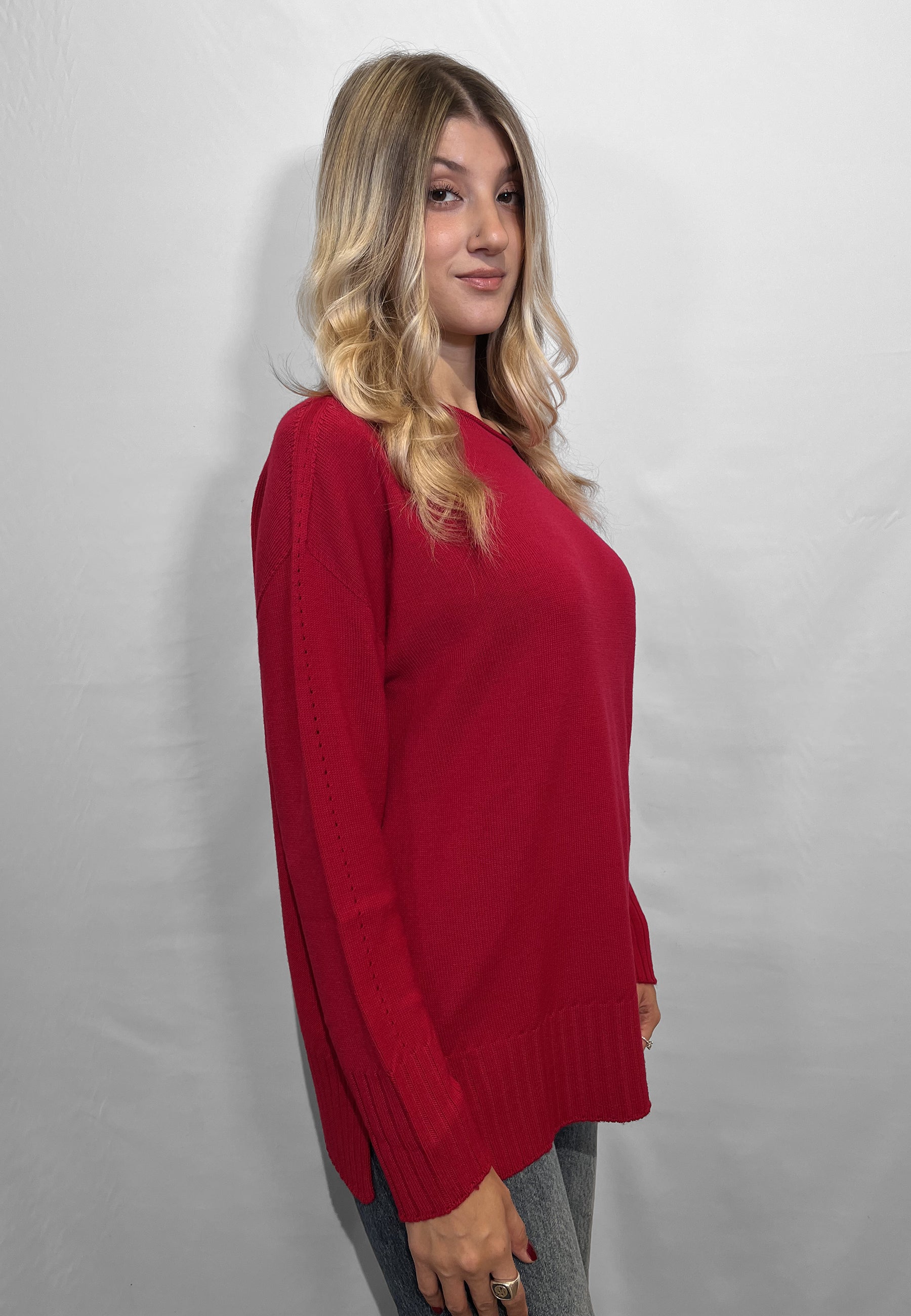 La maglia donna girocollo manica lunga LE MORBIDE rappresenta l’eccellenza della maglieria made in Italy, unendo comfort e stile in un capo perfetto per ogni occasione. Realizzata in pura lana, questa maglia tintonite offre una sensazione di morbidezza e calore unica, ideale per la stagione autunnale e invernale. Il modello a vestibilità over valorizza la figura con una linea fluida e contemporanea, mentre la lavorazione a costa sul fondo e gli spacchetti laterali aggiungono un tocco di eleganza discreta e raffinata. LE MORBIDE è sinonimo di qualità artigianale e attenzione ai dettagli, con una produzione interamente italiana che garantisce durata e comfort assoluto. Perfetta da abbinare a pantaloni o gonne, questa maglia girocollo in lana è un must-have del guardaroba femminile per chi cerca stile, calore e autenticità nella propria maglieria donna made in Italy.