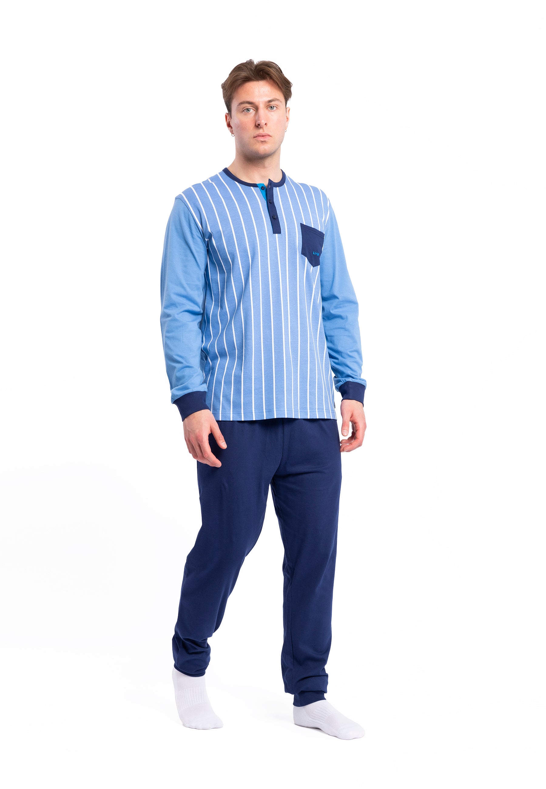 Senti subito il comfort e la morbidezza di questo pigiama uomo in maglina di puro cotone leggero. Ideale per le notti più fresche, con maniche lunghe per tenerti caldo. Stile moderno e pratico, per un look sempre al top anche a casa. Ottieni il meglio per il tuo riposo.