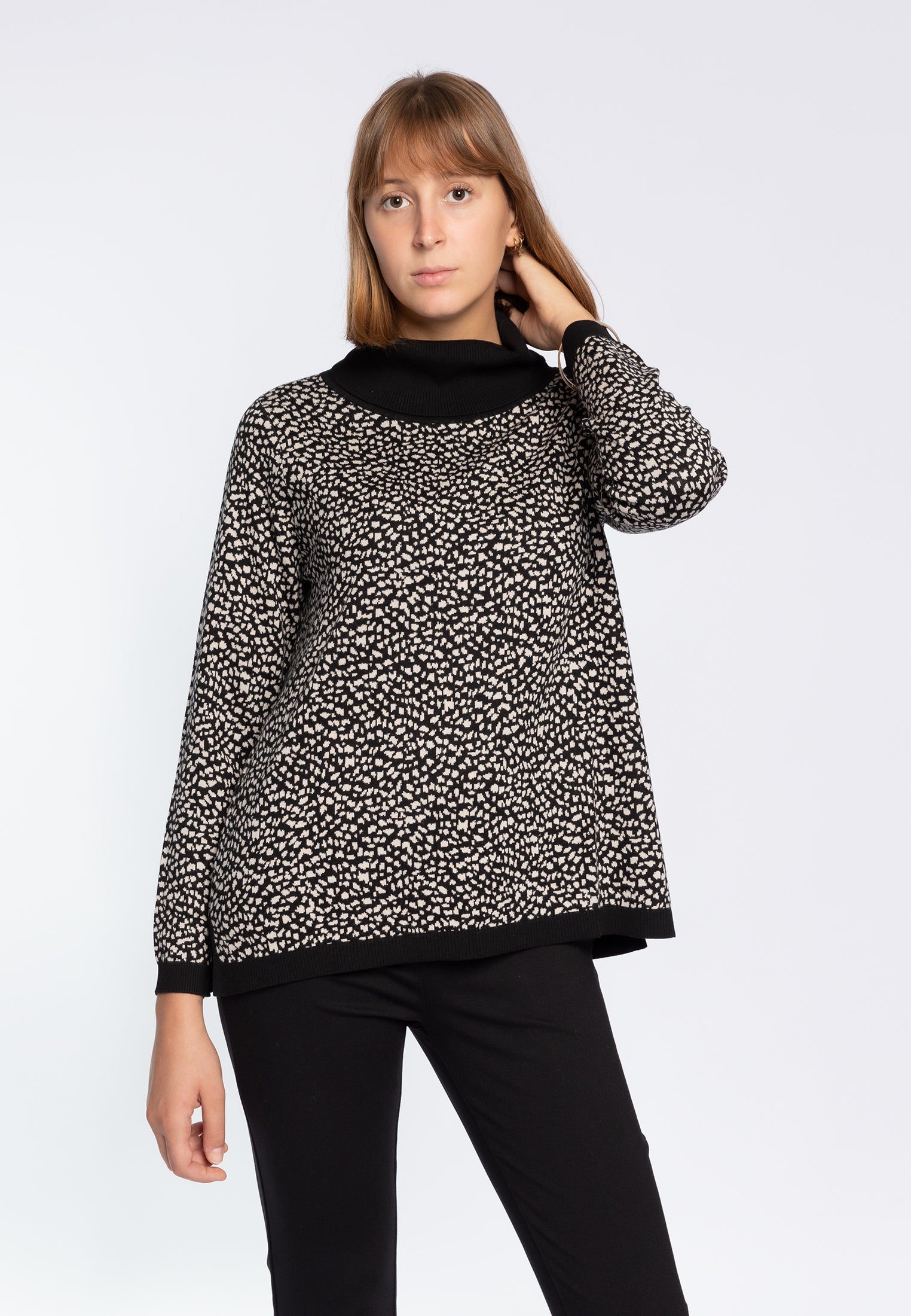 Esplora lo stile con il Dolcevita in jacquard simil animalier LUISA VIOLA M537L0-25XM bianco e nero. Il suo motivo animalier unico cattura l'attenzione, mentre il collo a coste e i bordi in contrasto aggiungono dettagli di tendenza. Unisci comfort e moda con questo dolcevita che si adatta a qualsiasi occasione. Acquista ora per abbracciare l'eleganza selvaggia con un tocco di classe distintiva.