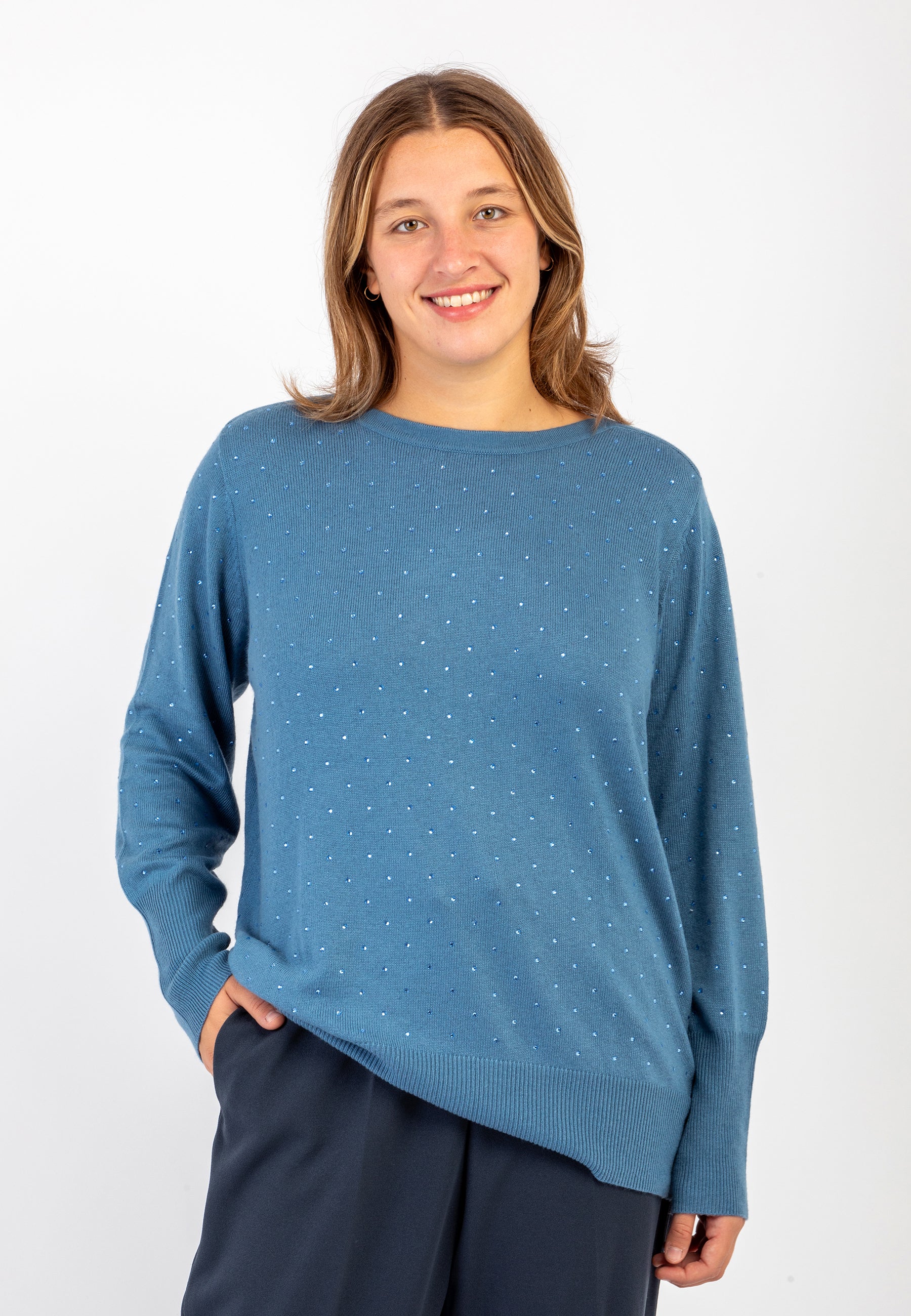 Questa maglia da donna firmata LUISA VIOLA unisce eleganza e comfort in un capo perfetto per ogni occasione. Realizzata in tessuto morbido e piacevole al tatto, presenta un design a tinta unita che valorizza la silhouette con sobrietà e raffinatezza. Le maniche lunghe la rendono ideale per le stagioni più fresche, mentre le applicazioni di strass aggiungono un tocco luminoso e femminile, discreto ma di grande effetto. Il taglio regolare garantisce una vestibilità comoda, adatta a diverse fisicità, e la cura dei dettagli riflette l’attenzione del brand per la qualità e lo stile contemporaneo.