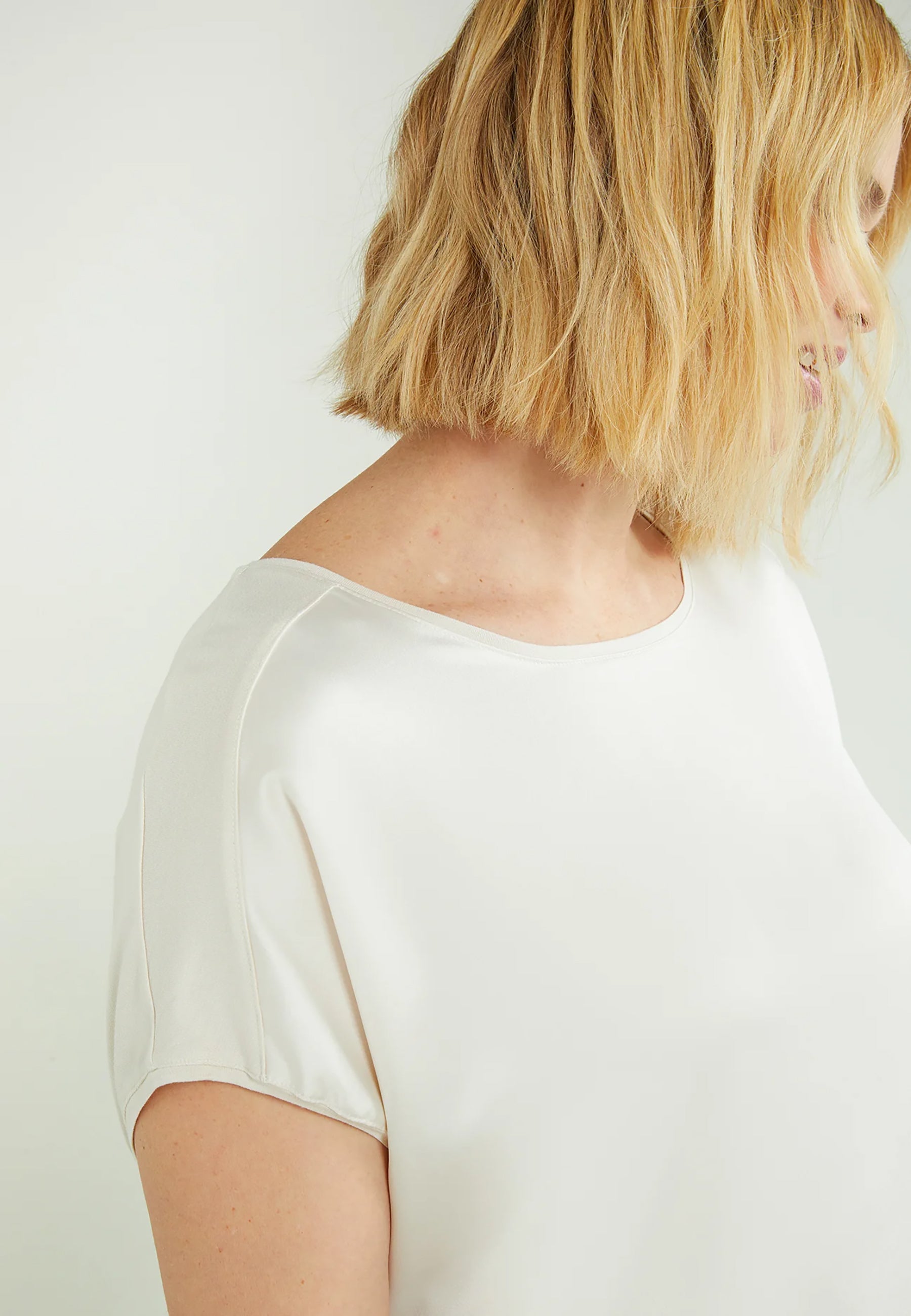 Maglia over curvy mezza manica donna bimaterica con davanti in tessuto e dietro in maglina di viscosa. Comfort e stile in un unico capo, perfetto per ogni occasione. Scopri come valorizzare la tua silhouette con questa maglia di design.