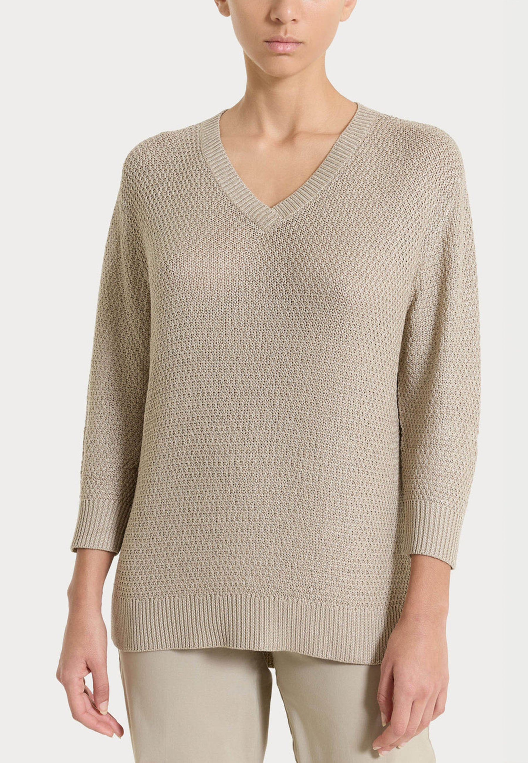 Maglia donna estiva Ragno con scollo a V e lavorazione con inserti lurex, ideale per uno stile leggero e curato.