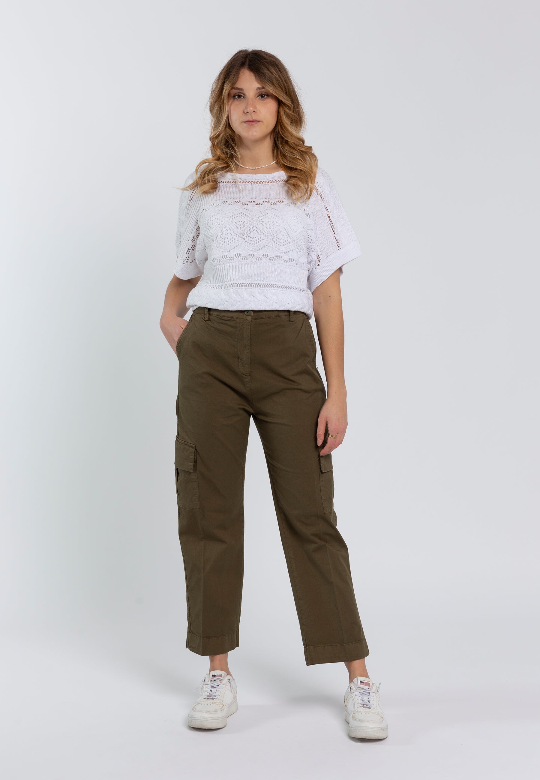 La nostra maglia donna è realizzata in puro cotone ed è perfetta per l'estate. La texture smacchinata conferisce un tocco di originalità al capo, mentre le mezza maniche lo rendono adatto a qualsiasi occasione. Un'ottima scelta per un look casual e comodo.