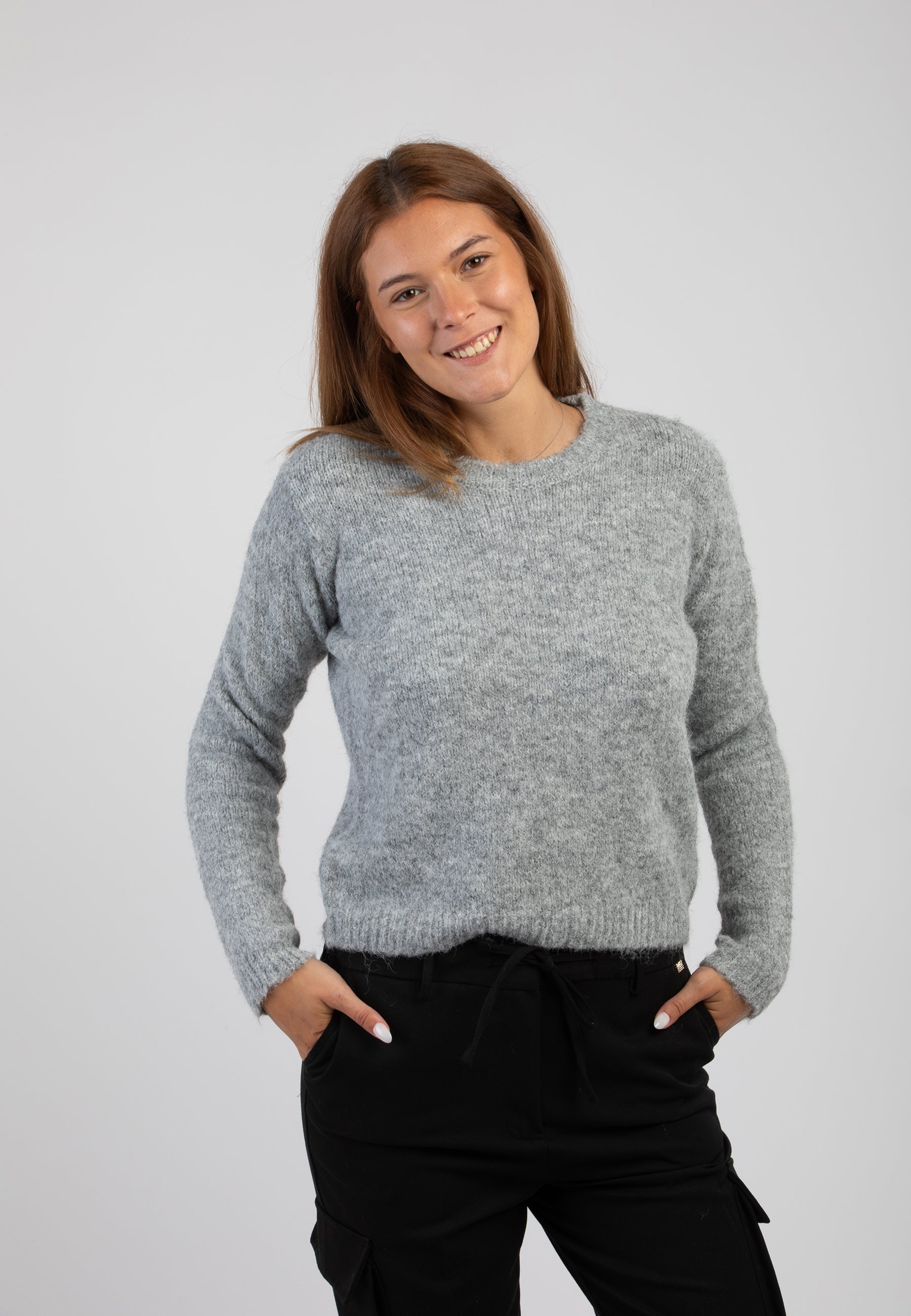 Questo maglione donna è realizzato in pregiato mohair, per un morbido e caldo effetto sulla pelle. Il girocollo e il design tinta unita melange lo rendono un irresistibile must-have per l'inverno. Perfetto per donare eleganza e comfort in ogni occasione.