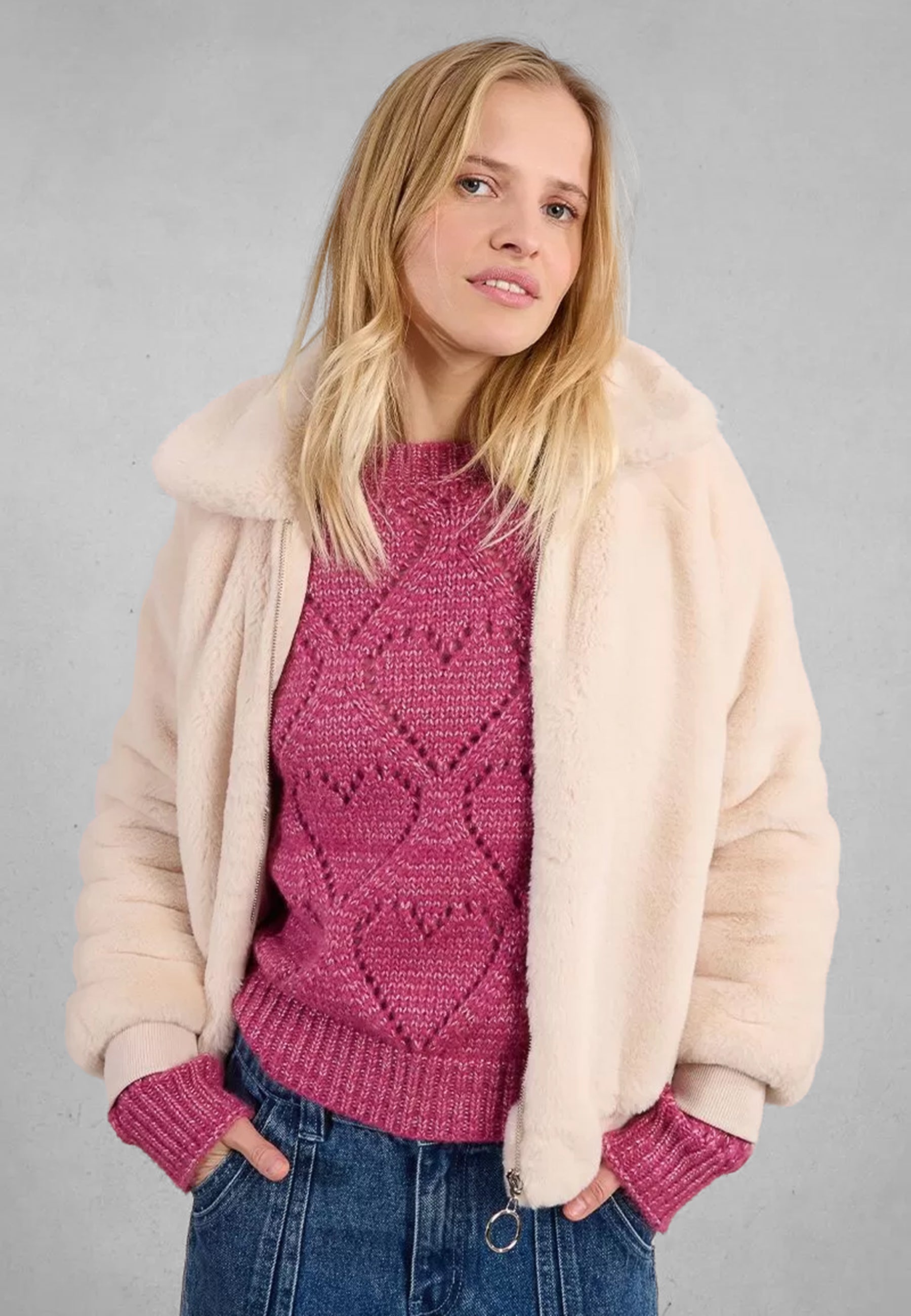 Il giubbino da donna firmato MOLLY BRACKEN è un capo dal design moderno e raffinato, perfetto per affrontare le giornate più fredde con stile. Realizzato in una morbida pelliccetta liscia, offre una piacevole sensazione di comfort e calore, avvolgendo il corpo con eleganza. La linea bomber aggiunge un tocco casual ma ricercato, ideale per completare sia look urbani che outfit più femminili. La chiusura frontale con zip garantisce praticità e una vestibilità comoda, adattandosi perfettamente alla silhouette. Un capo versatile, pensato per chi desidera unire funzionalità e tendenza senza rinunciare alla qualità e all’identità del brand.