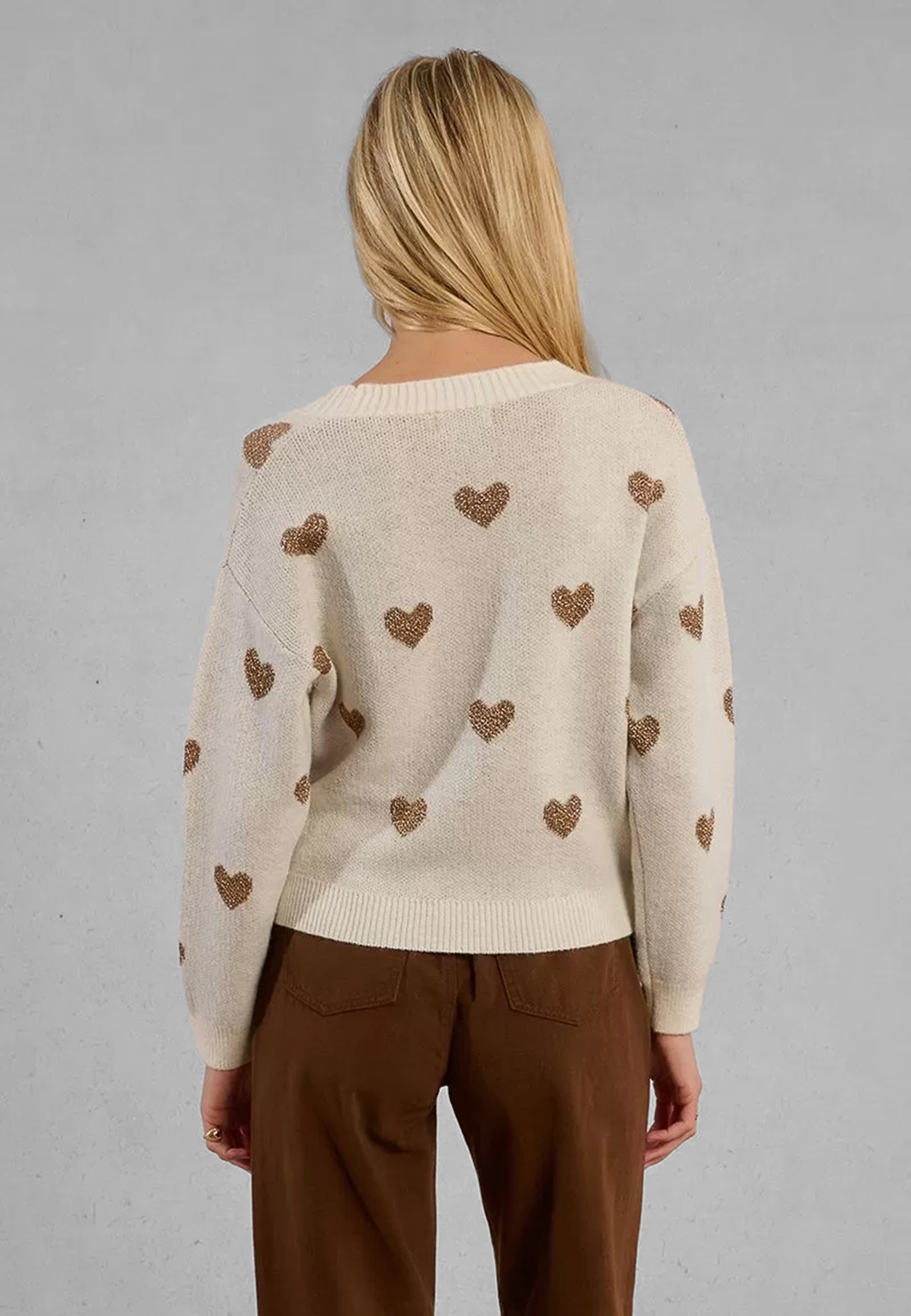 La giacca da donna firmata MOLLY BRACKEN è un capo raffinato e romantico, pensato per aggiungere un tocco di eleganza al tuo guardaroba. Realizzata in maglia morbida e confortevole, si distingue per l’originale lavorazione a cuori che dona femminilità e carattere. Gli inserti in lurex aggiungono una delicata luminosità, perfetta per illuminare ogni outfit con discrezione. Questo cardigan è ideale da indossare sia aperto che abbottonato, sopra abiti leggeri o top basici, per un look casual chic sempre curato. Versatile e dal design delicato, è il capo ideale per chi ama uno stile romantico con un tocco di originalità.