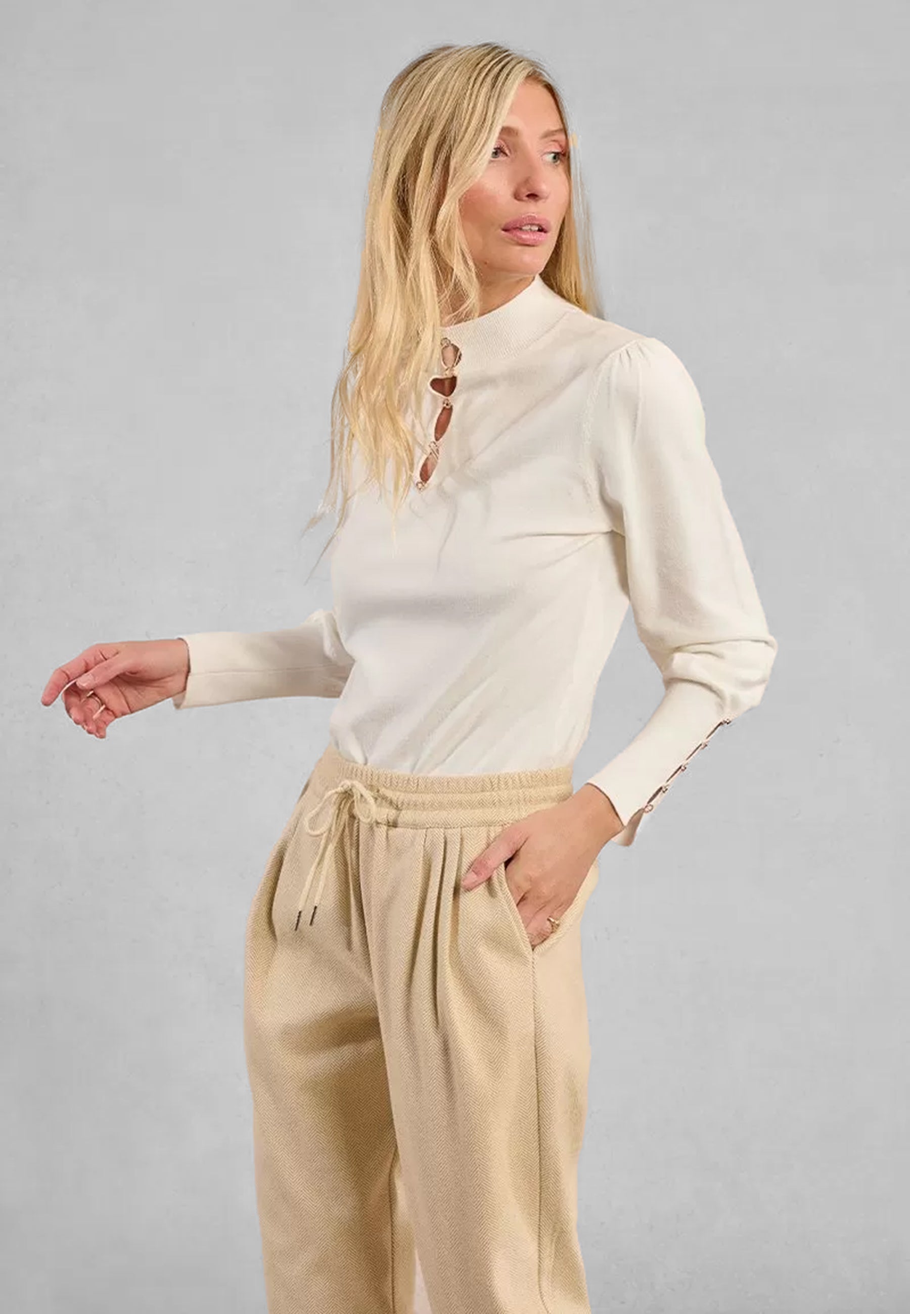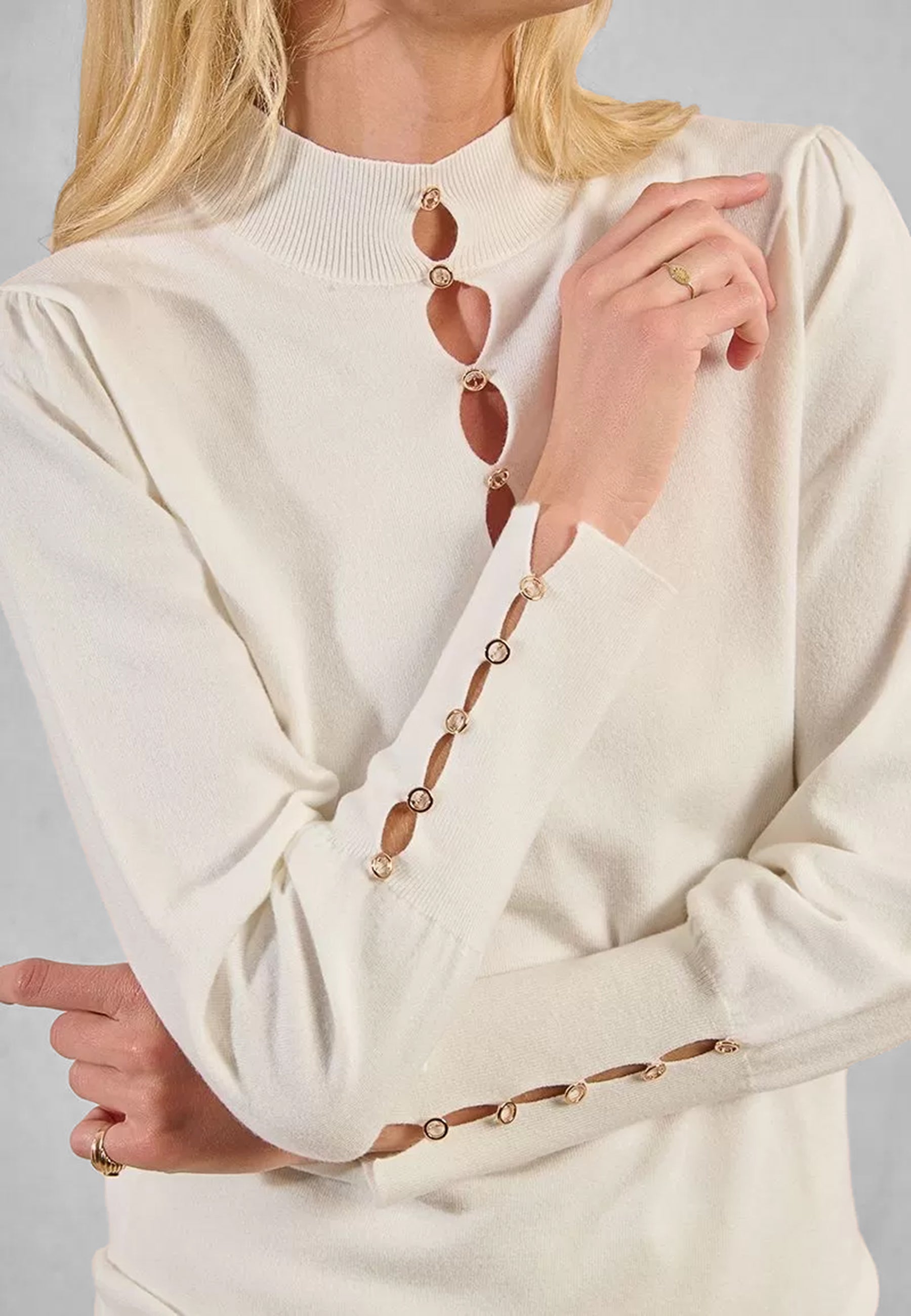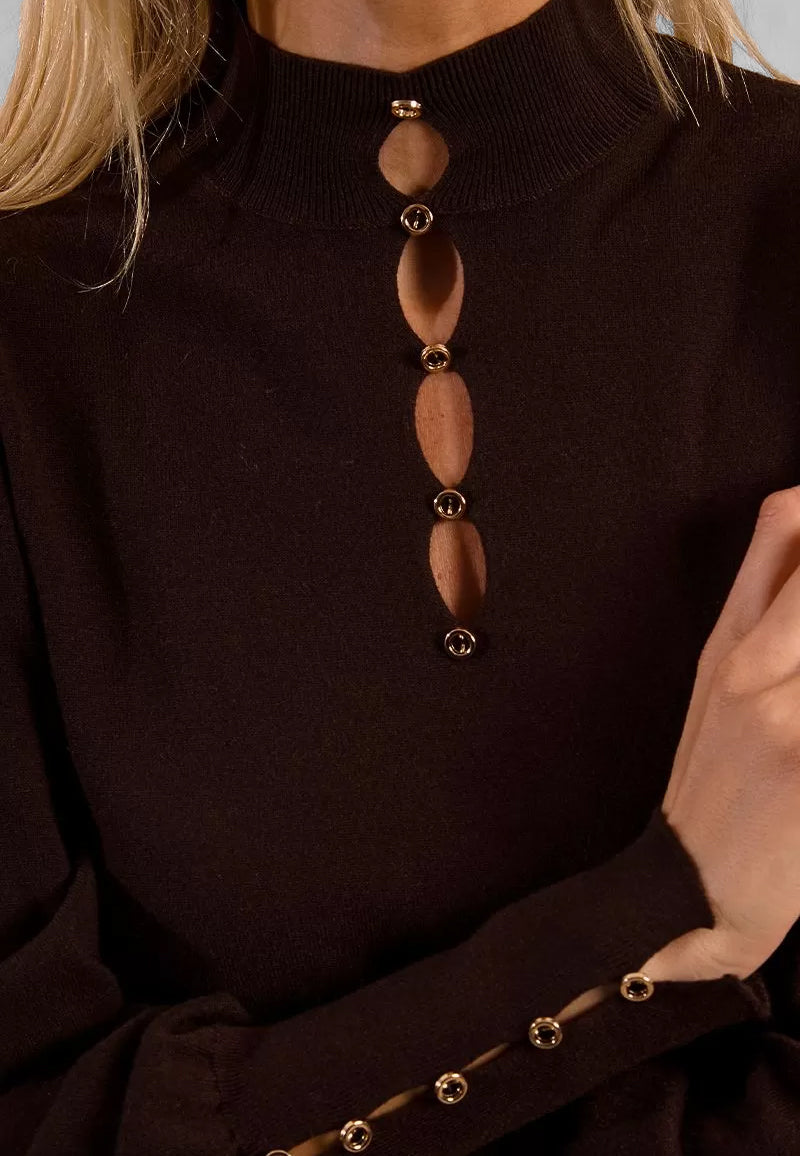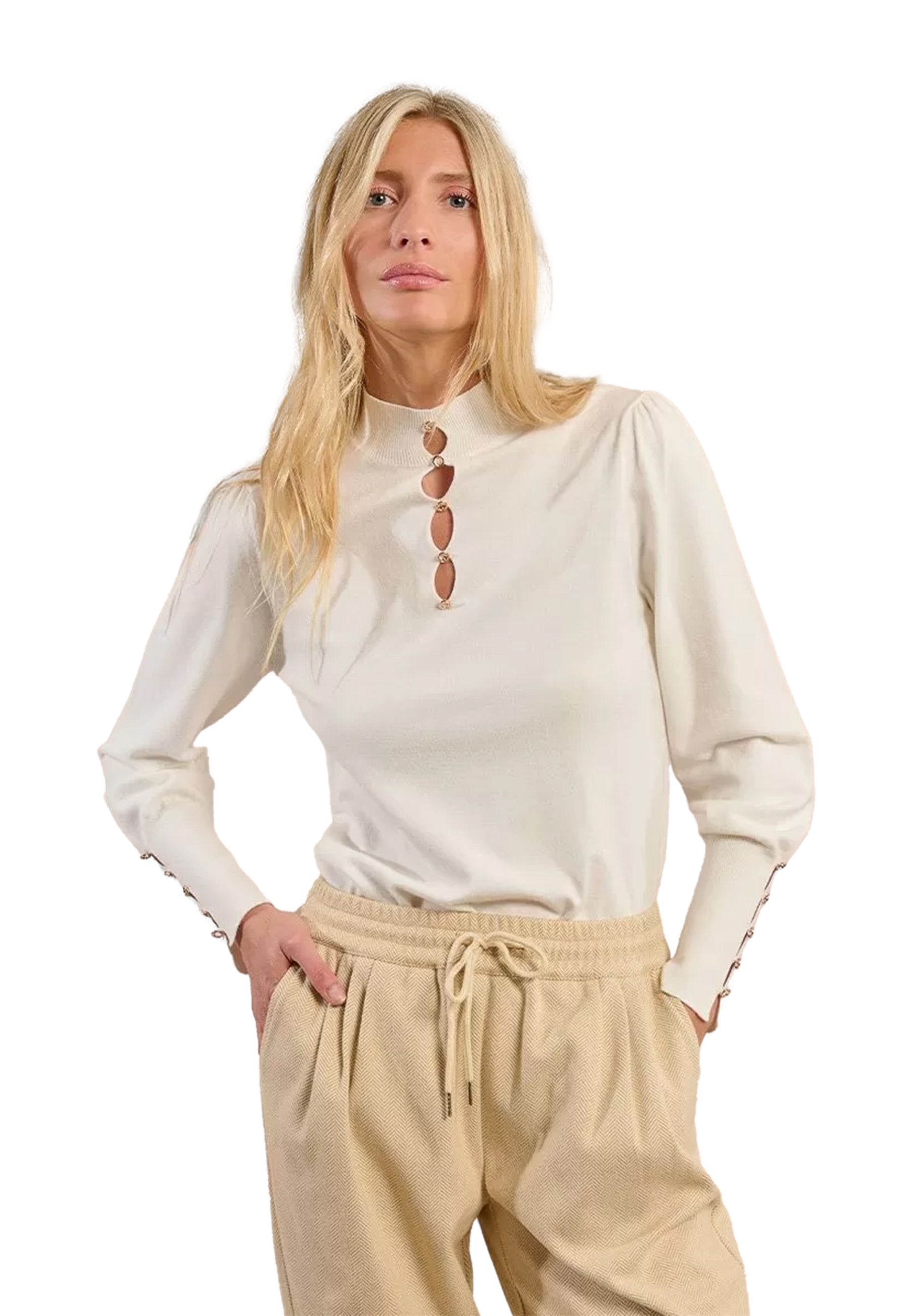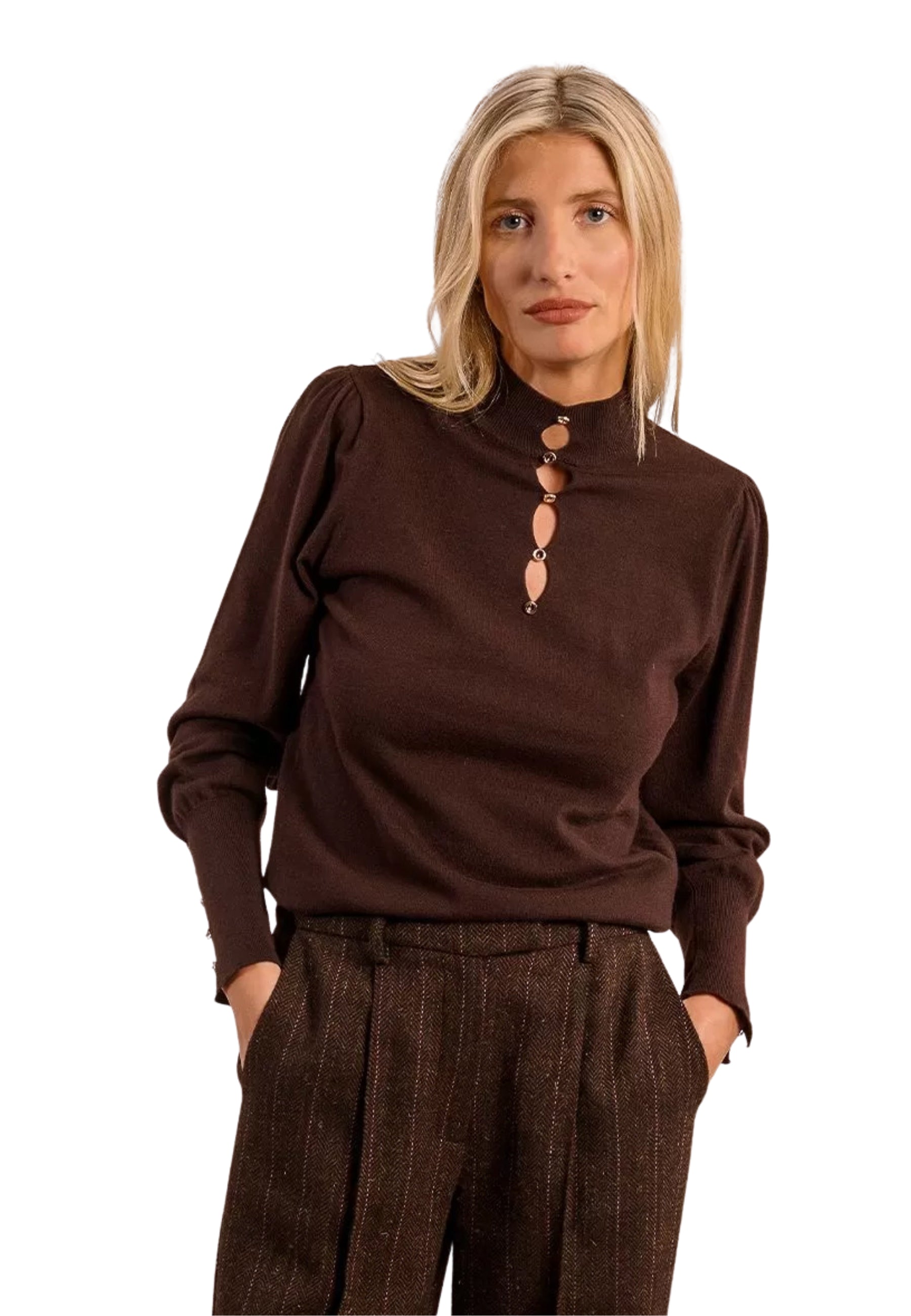 Scopri l'eleganza discreta del lupetto da donna firmato MOLLY BRACKEN, un capo versatile pensato per accompagnarti con stile in ogni momento della giornata. Realizzato in un tessuto morbido e confortevole, si adatta perfettamente alla silhouette valorizzando la figura senza costrizioni. Il design minimal è impreziosito da delicati bottoncini decorativi sul collo alto e sulle maniche, che aggiungono un tocco raffinato e femminile. Perfetto da indossare come maglia sottogiacca o da solo per un look più casual, questo lupetto si abbina facilmente a pantaloni eleganti o jeans, diventando un alleato indispensabile per creare outfit sempre curati e attuali.