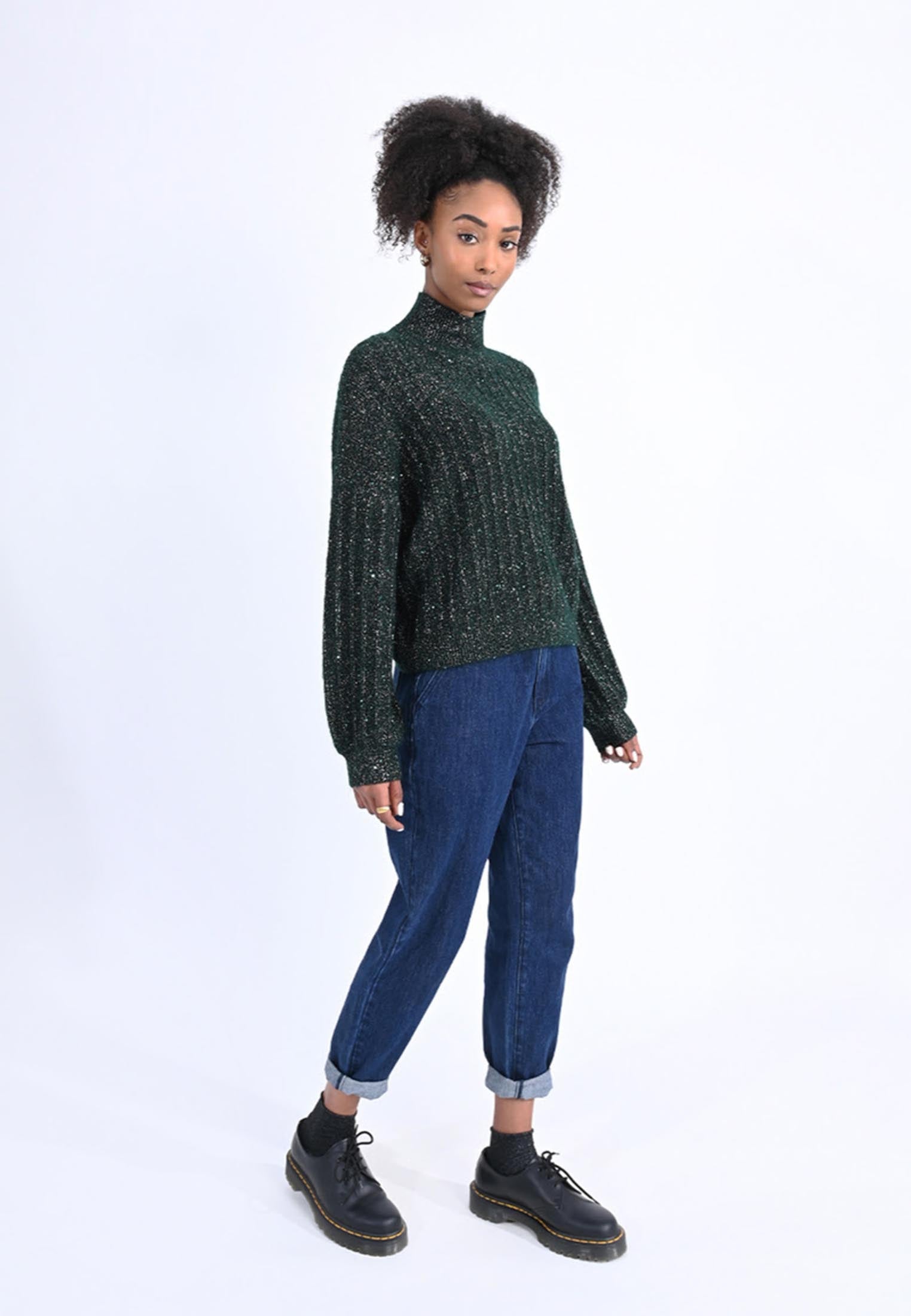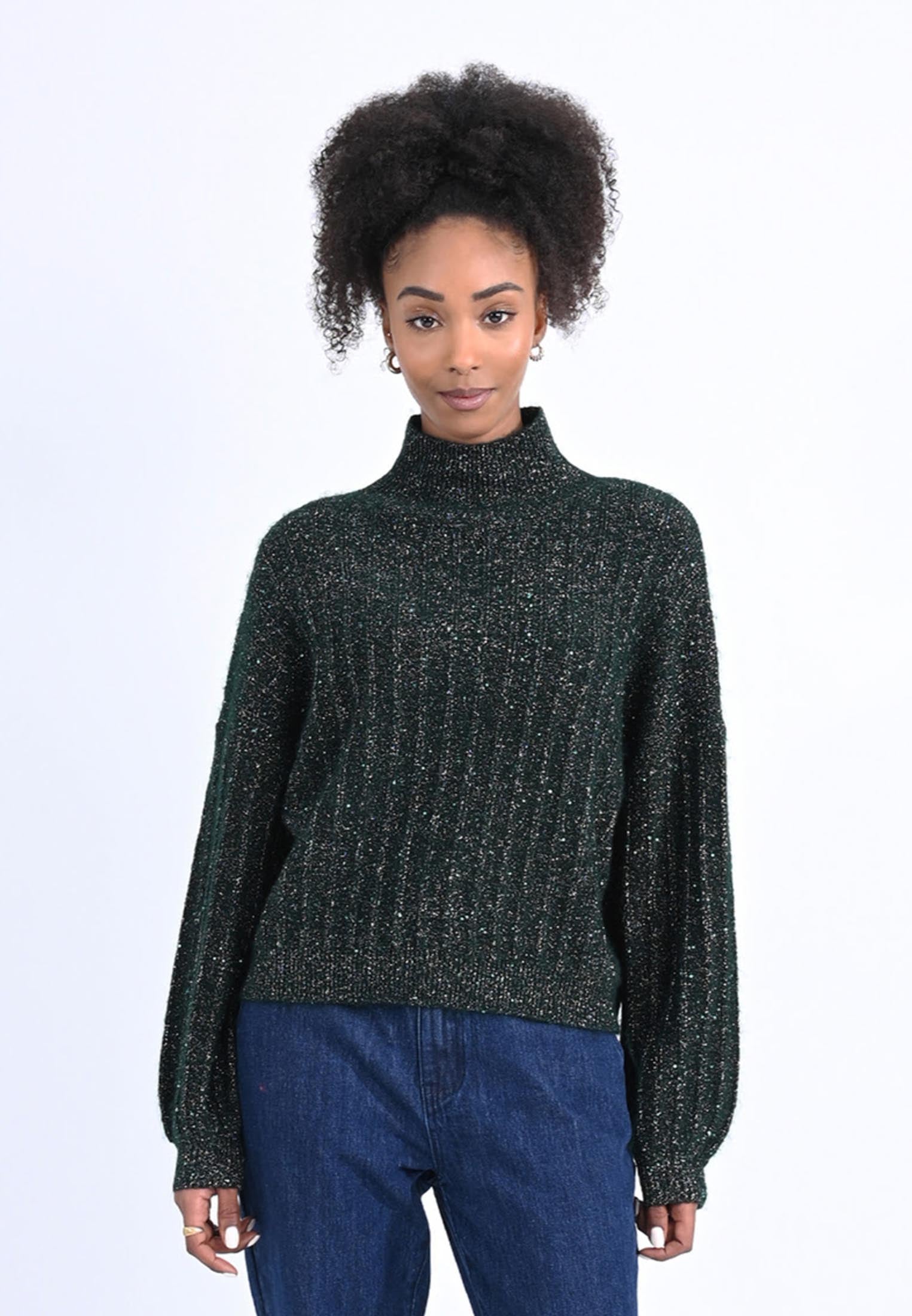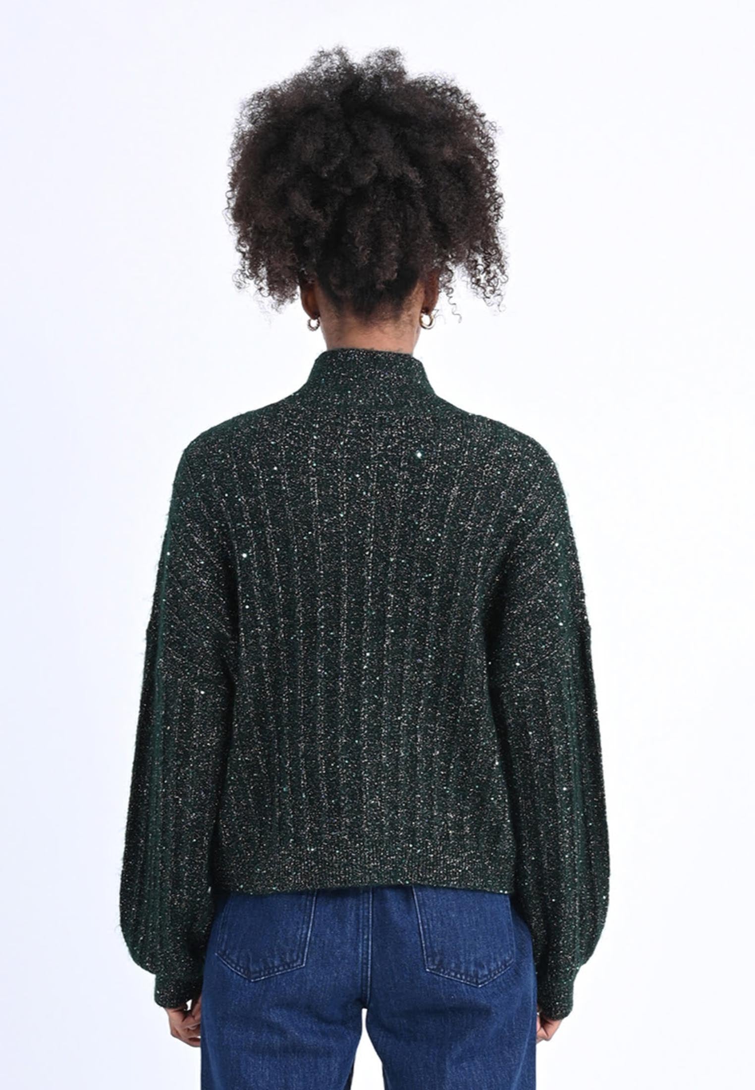 Maglia collo alto a coste larghe e pailettes MOLLY BRACKEN T1662BH