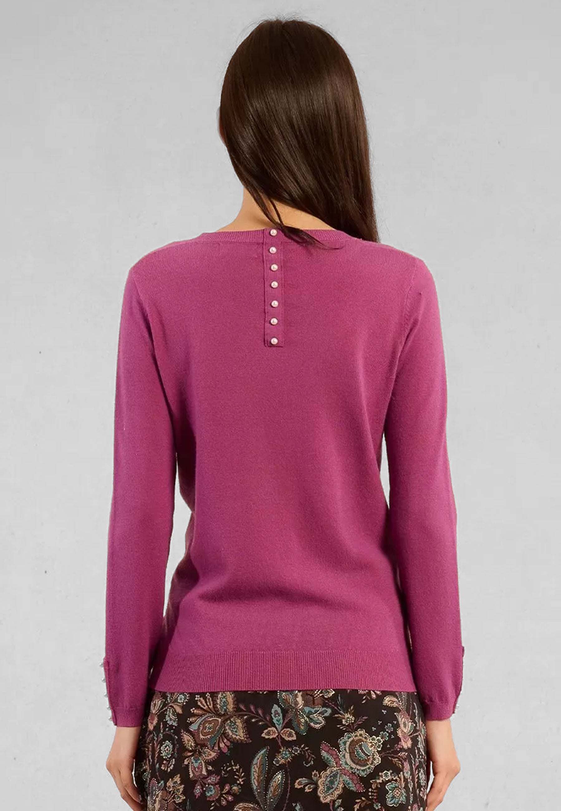 Questa maglia da donna firmata Molly Bracken è un capo versatile e raffinato, perfetto da indossare come sottogiacca nelle mezze stagioni o per completare con eleganza un look da ufficio. Realizzata in un tessuto leggero e confortevole, si distingue per la sua linea essenziale che valorizza la figura senza costringerla. Il dettaglio dei bottoncini decorativi sul polso aggiunge un tocco femminile e curato, esprimendo l’attenzione del brand per i particolari. Facile da abbinare sia a pantaloni sartoriali che a gonne, è l’ideale per chi cerca uno stile sobrio ma ricercato, sempre all’insegna della qualità e della femminilità.