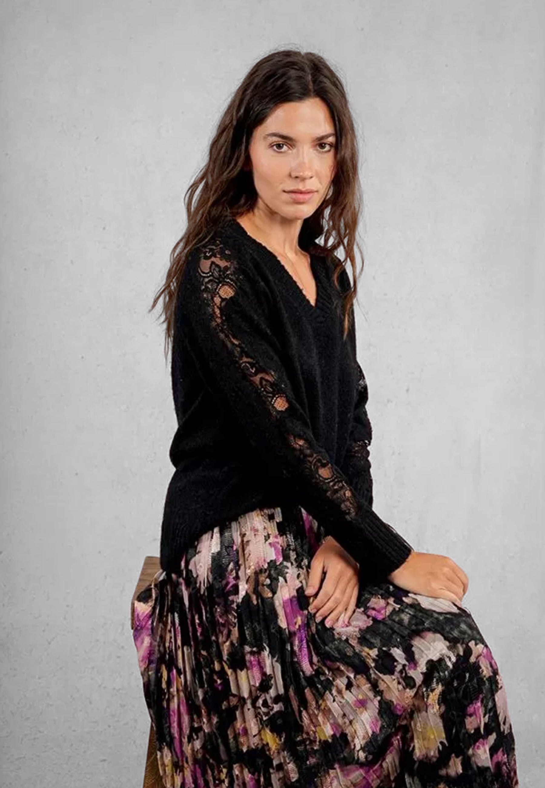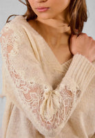 Questa maglia da donna firmata MOLLY BRACKEN incarna eleganza e femminilità con uno stile raffinato e contemporaneo. Realizzata in un tessuto morbido e confortevole, presenta un delicato scollo a V che valorizza la silhouette, mentre gli inserti in pizzo sulle braccia aggiungono un tocco romantico e sofisticato. Perfetta per essere indossata sia di giorno che di sera, questa maglia si abbina facilmente a pantaloni eleganti o a gonne leggere, creando outfit versatili e di classe. Il design curato nei dettagli riflette lo stile inconfondibile del brand, pensato per una donna che ama distinguersi con discrezione e charme.