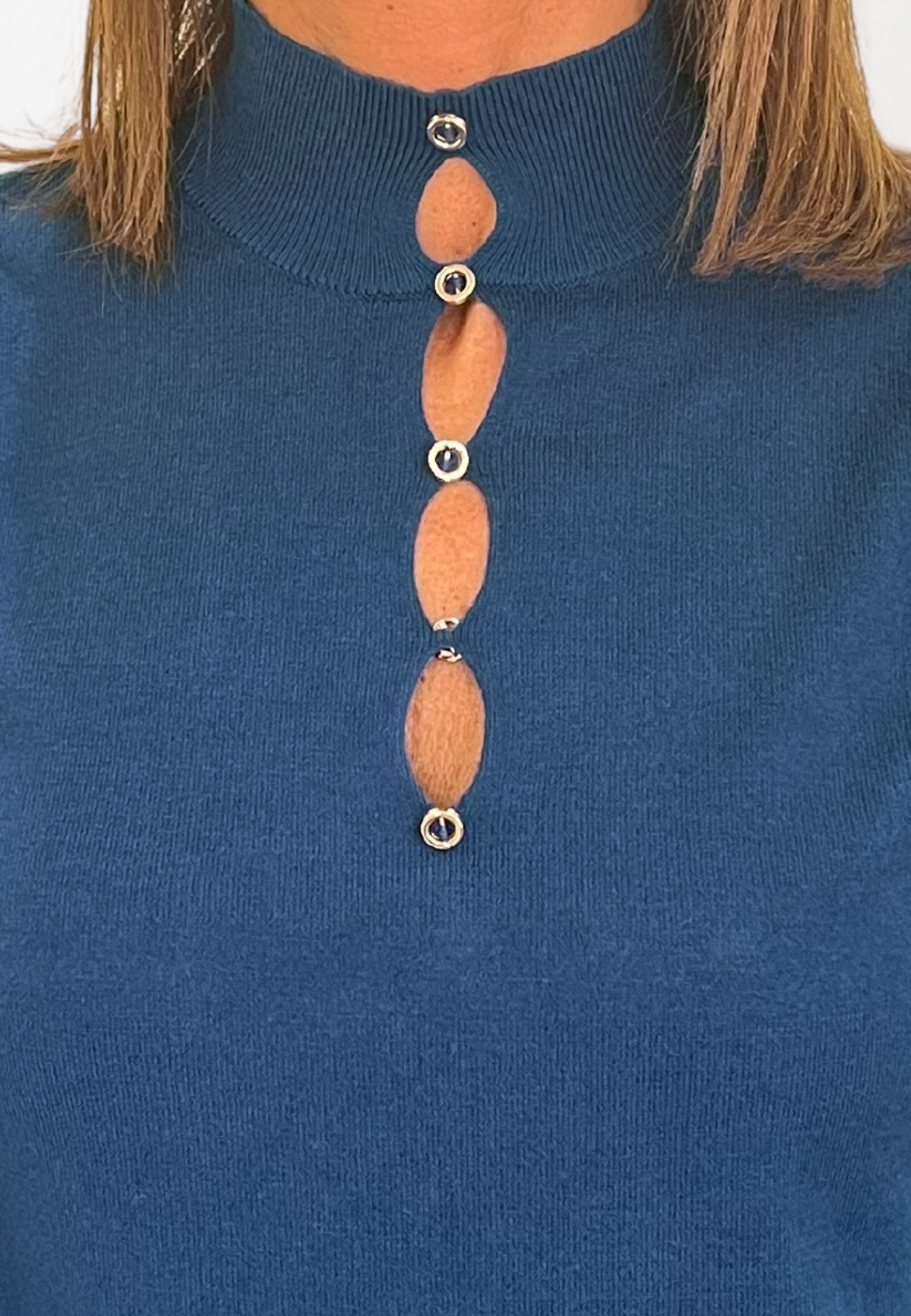 Rimanete al caldo con stile grazie alla maglia serafino Molly Bracken con bottoncini e collo alto. Con un mix di cotone e viscosa, questa maglia offre calore, comfort e un look elegante. Perfetta per l'inverno o le fresche serate primaverili.