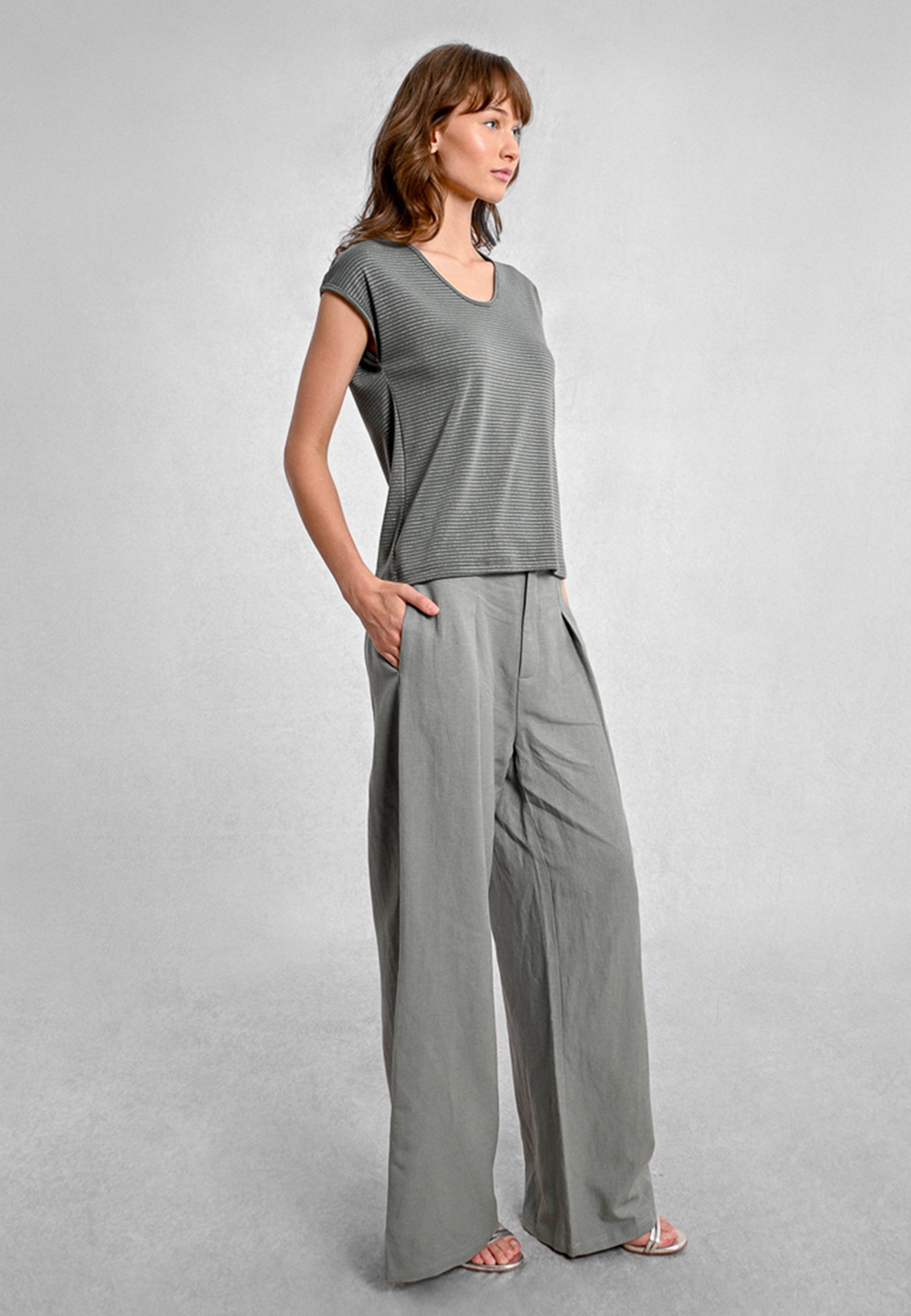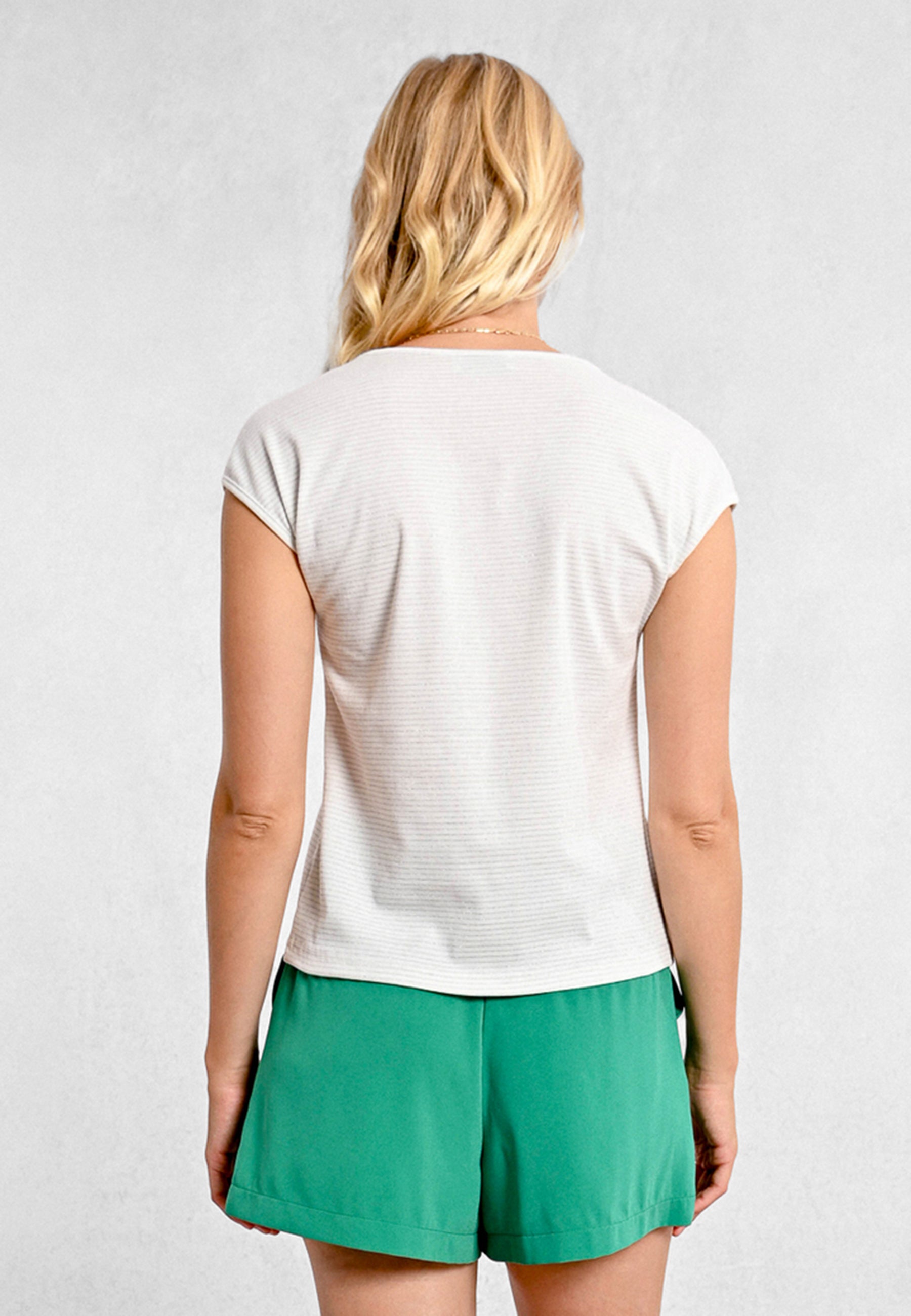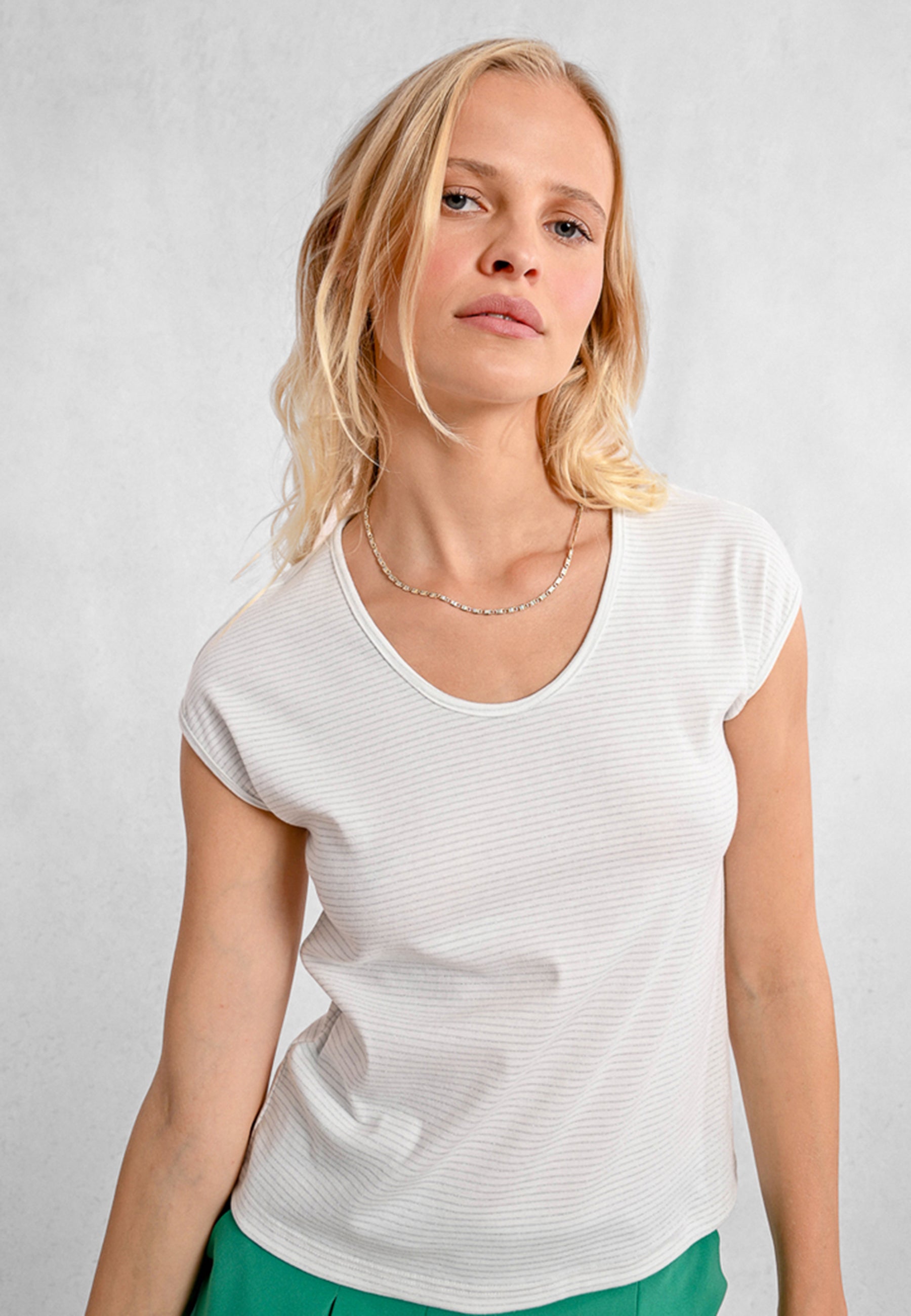 Scopri la T-shirt da donna con manica aletta e scollo a V di MOLLY BRACKEN, un capo perfetto per chi desidera un look elegante e moderno. La trama a righe, abbinata agli inserti in lurex, conferisce un tocco di luce e raffinatezza, ideale per le occasioni più informali o per completare il tuo outfit quotidiano con stile. Realizzata con materiali di alta qualità, questa T-shirt è pensata per offrire comfort e vestibilità, senza rinunciare a un design ricercato. Un must-have per la donna che ama esprimere la propria personalità attraverso un abbigliamento alla moda e sofisticato.