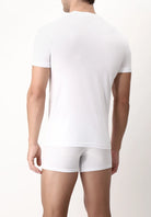 T-shirt intima classica con girocollo alto in morbido jersey 100% cotone senza cuciture ai fianchi. Realizzata con un'esclusiva tecnologia di tessitura anti avvitamento che rende il capo indeformabile al lavaggio. Questo filato conferisce alla t-shirt una perfetta vestibilità e comodità. Trattamento con azione antibatterica. (Il prezzo si riferisce alla confezione da 3 t-shirt).