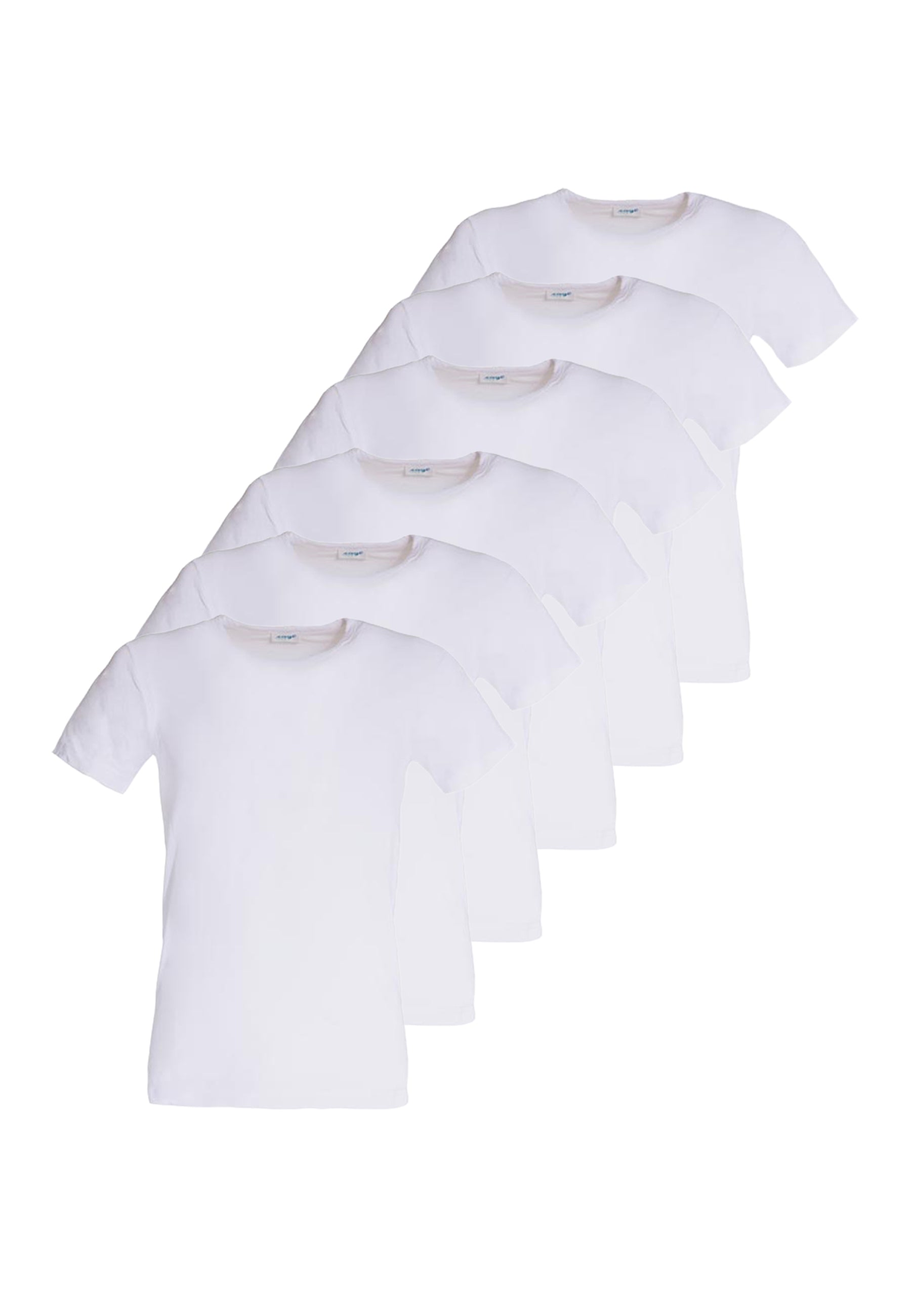 T-shirt intima classica con girocollo basso in morbido jersey 100% cotone senza cuciture ai fianchi. Realizzata con un'esclusiva tecnologia di tessitura anti avvitamento che rende il capo indeformabile al lavaggio. Questo filato conferisce alla t-shirt una perfetta vestibilità e comodità. Trattamento con azione antibatterica. (Il prezzo si riferisce alla confezione da 6 t-shirt).