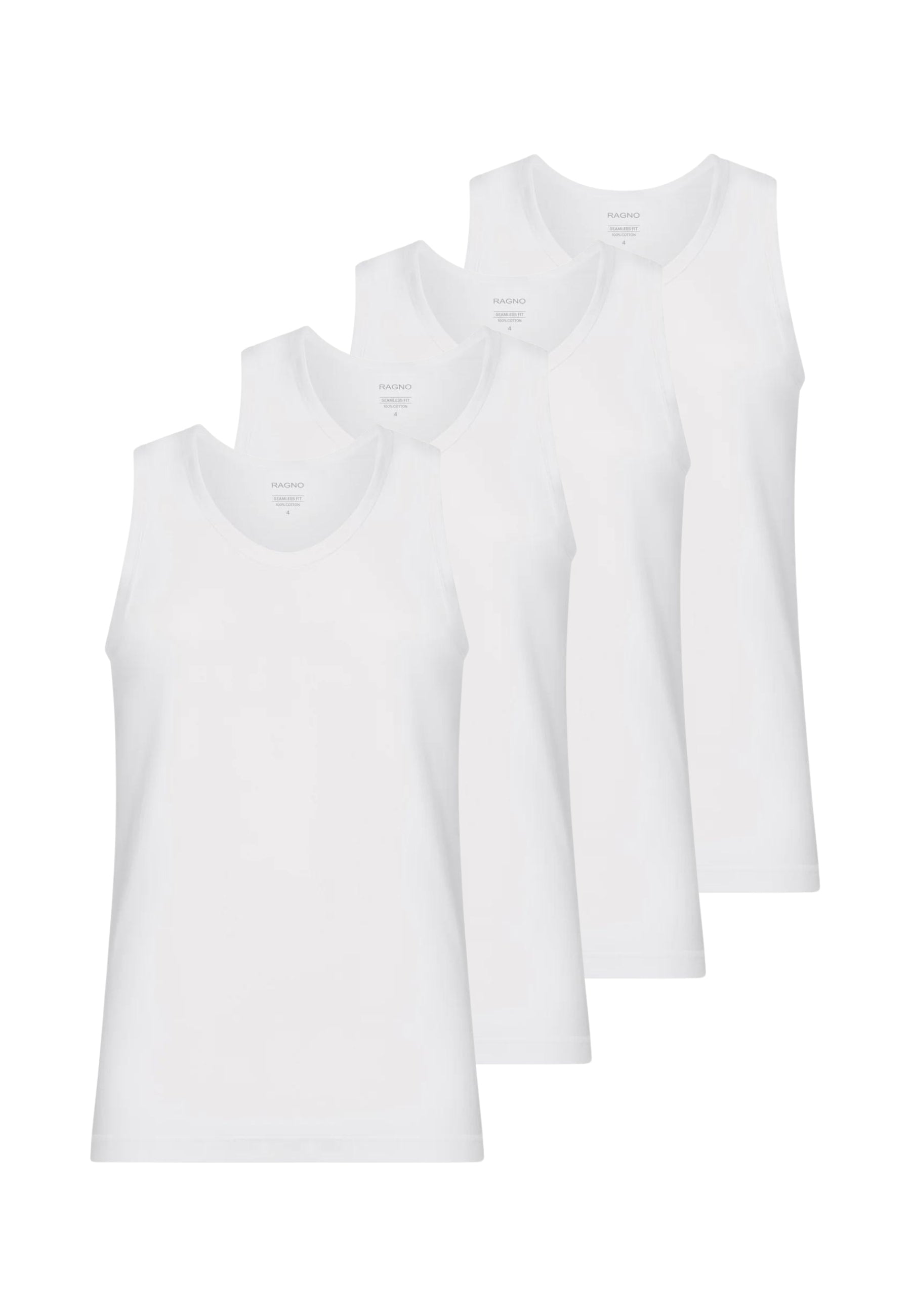 Confezione da 4 canottiere a spalla larga da uomo in puro cotone. Realizzate in un morbido jersey in 100% cotone è un intimo basico da utilizzare tutti i giorni. La qualità dei filati Ragno ad un prezzo super. (Il prezzo si riferisce alla confezione da 4 canottiere).