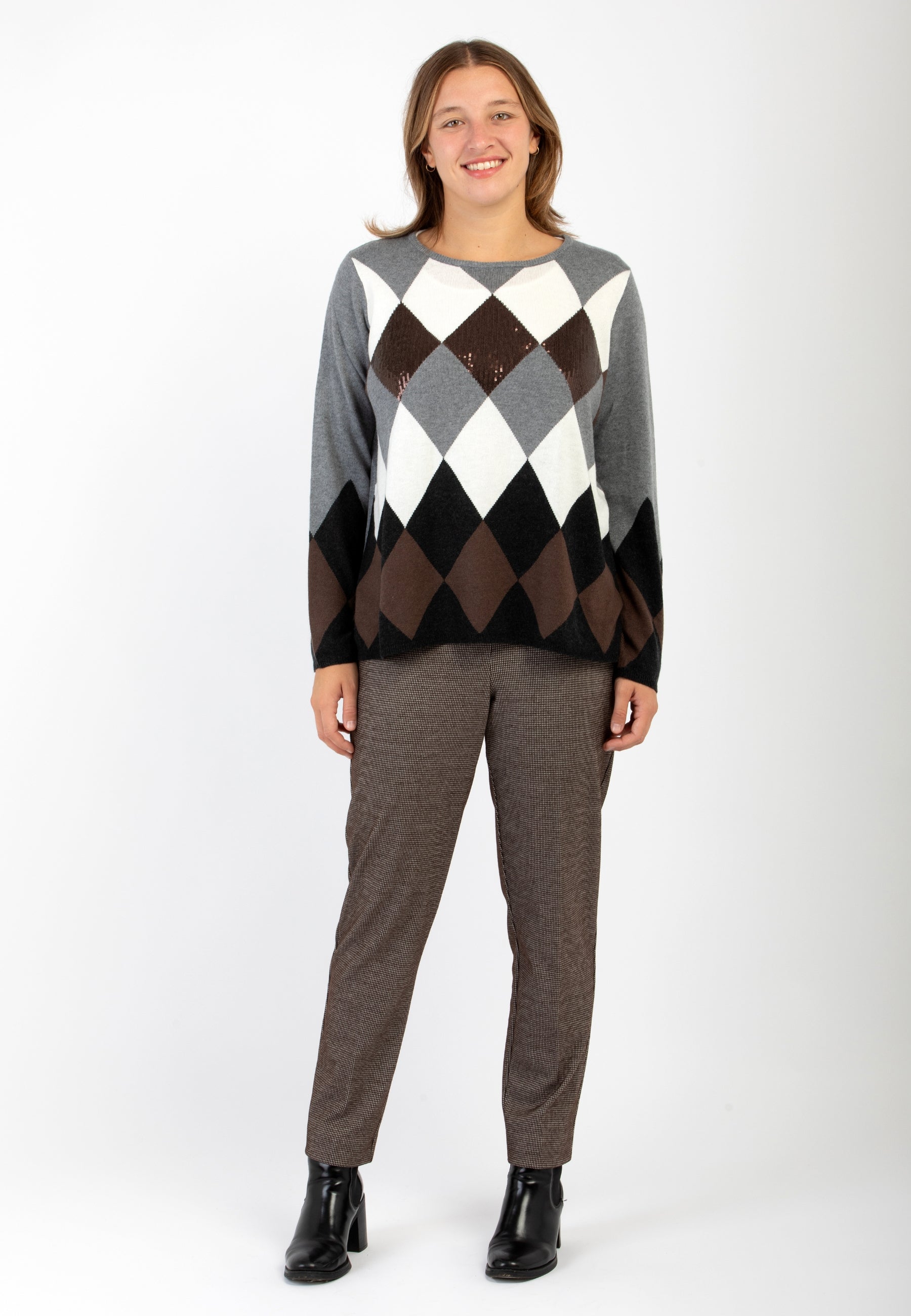 Il pantalone donna lungo in tessuto invernale fantasia micro pied de poule firmato Carla Ferroni è la scelta ideale per chi cerca stile, comfort e qualità in un unico capo. Realizzato in Italia con materiali selezionati, questo modello unisce il design moderno alla praticità quotidiana grazie alla vita completamente elasticizzata che garantisce una vestibilità perfetta. La composizione del tessuto, 85% poliestere, 10% viscosa e 5% elastan, offre morbidezza, resistenza e un tocco di elasticità che accompagna i movimenti senza rinunciare all’eleganza. Questo pantalone versatile può essere abbinato facilmente a una maglia donna lana Carla Ferroni per un look raffinato e adatto alla stagione fredda, oppure integrato con altri capi della collezione di abbigliamento donna Carla Ferroni per creare outfit sempre diversi. Pensato per la donna che ama indossare abiti comodi ma allo stesso tempo ricercati, rappresenta al meglio la filosofia del brand: moda contemporanea, comfort e un ottimo rappo