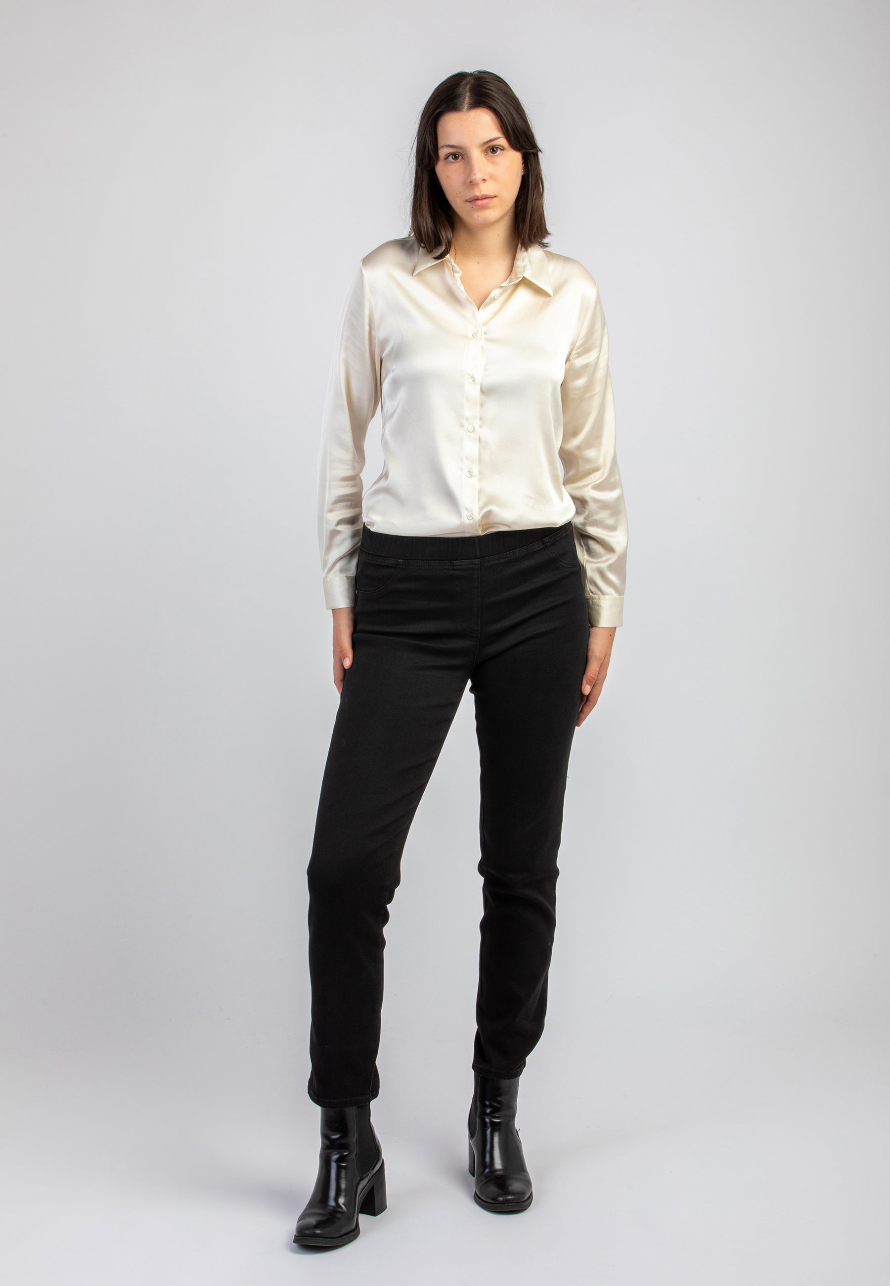 Il pantalone lungo da donna in tessuto jeans elasticizzato firmato Carla Ferroni è il capo ideale per chi cerca uno stile moderno unito al massimo comfort. Realizzato interamente in Italia con materiali di alta qualità, questo jeans morbido e avvolgente si adatta perfettamente alla silhouette grazie alla sua vestibilità confortevole e alla vita completamente elasticizzata che garantisce libertà di movimento in ogni momento della giornata. Pensato per valorizzare la femminilità senza rinunciare alla praticità, rappresenta una scelta versatile da indossare sia con look casual sia con abbinamenti più eleganti. Carla Ferroni propone un abbigliamento da donna alla moda che coniuga comfort e design contemporaneo, offrendo sempre un eccellente rapporto qualità prezzo. Questo pantalone elasticizzato da donna non è solo un capo di tendenza, ma anche un investimento in stile e comodità, perfetto per chi desidera un jeans versatile, comodo e realizzato con la cura artigianale t