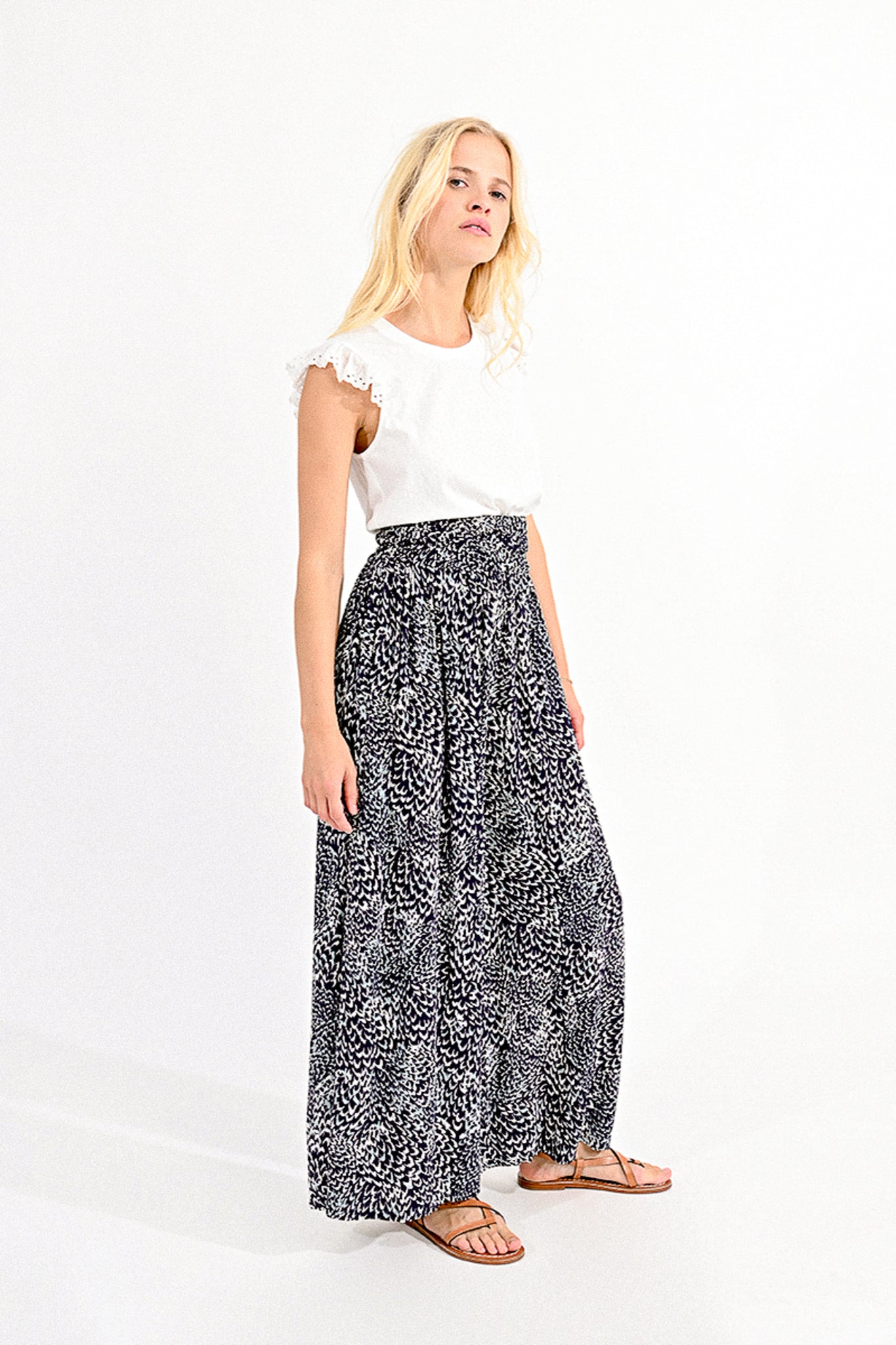 Il pantalone elastico in vita in tessuto fantasia firmato MOLLY BRACKEN è la scelta perfetta per chi desidera unire comfort e stile in un unico capo. Realizzato in morbido jersey di pura viscosa, questo pantalone si adatta perfettamente alla silhouette grazie alla vita elasticizzata, offrendo una vestibilità comoda e versatile. Il tessuto leggero e traspirante lo rende ideale per ogni stagione, mentre la fantasia dona un tocco distintivo e contemporaneo al look. Pensato per chi ama la moda dinamica e senza compromessi, è un capo facile da abbinare sia in contesti casual che più raffinati, aggiungendo personalità a qualsiasi outfit.
