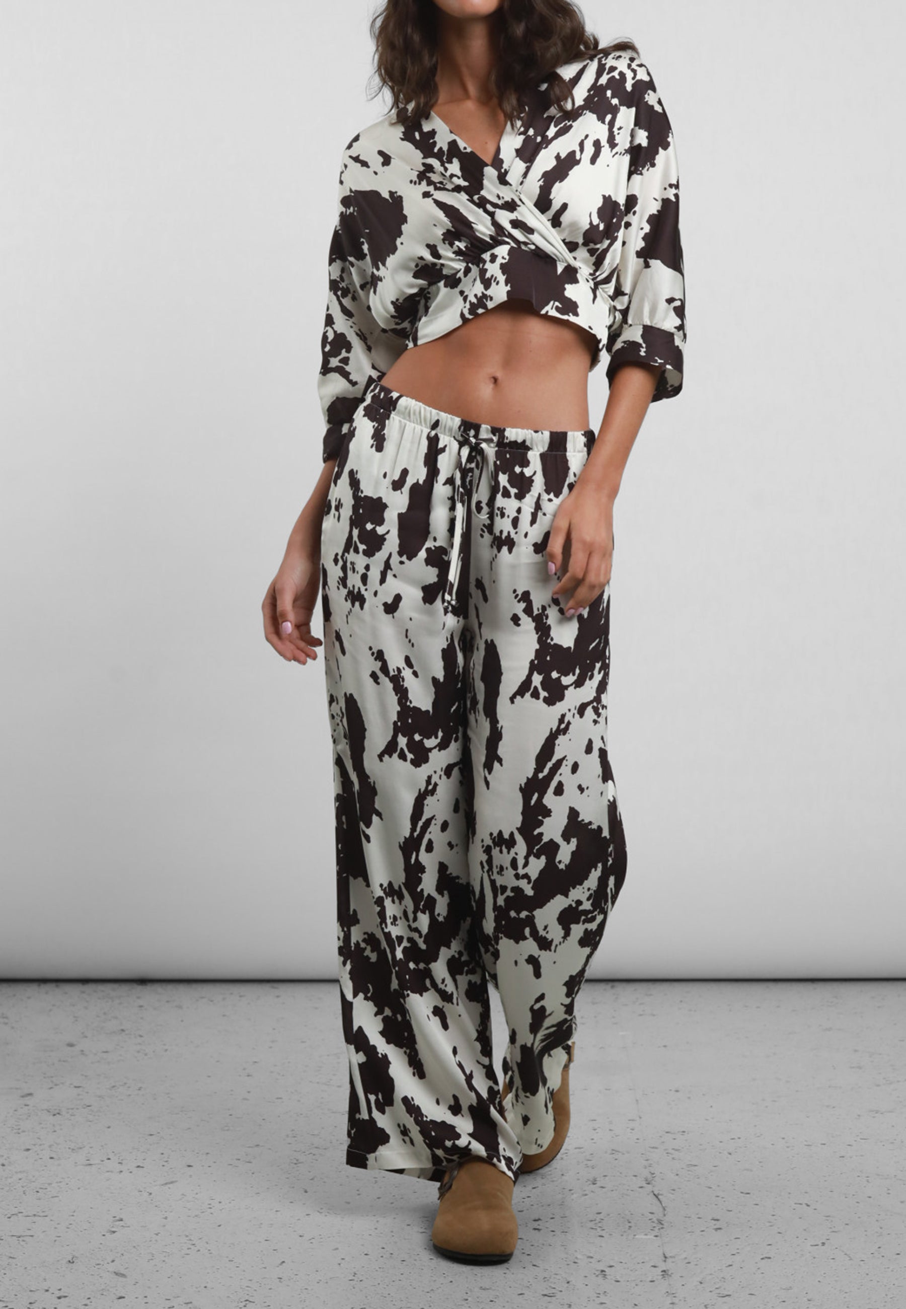Il pantalone ampio con elastico e coulisse in stampa animalier cow print di SUSY MIX è un capo dallo stile giovane e audace, pensato per la donna che ama osare con originalità e comfort. Realizzato in pura viscosa, questo pantalone garantisce una vestibilità leggera e fluida, ideale per la stagione calda. Il design ampio e l'elastico in vita, abbinato alla coulisse regolabile, offrono una vestibilità comoda e adattabile. La stampa animalier cow print conferisce un tocco di personalità e tendenza, rendendo questo pantalone un'ottima scelta per un look casual ma stiloso. Perfetto da abbinare a una maglia semplice o una camicetta, è un capo versatile che saprà valorizzare il tuo stile in ogni occasione. Capo prodotto in Italia. Made in Italy.