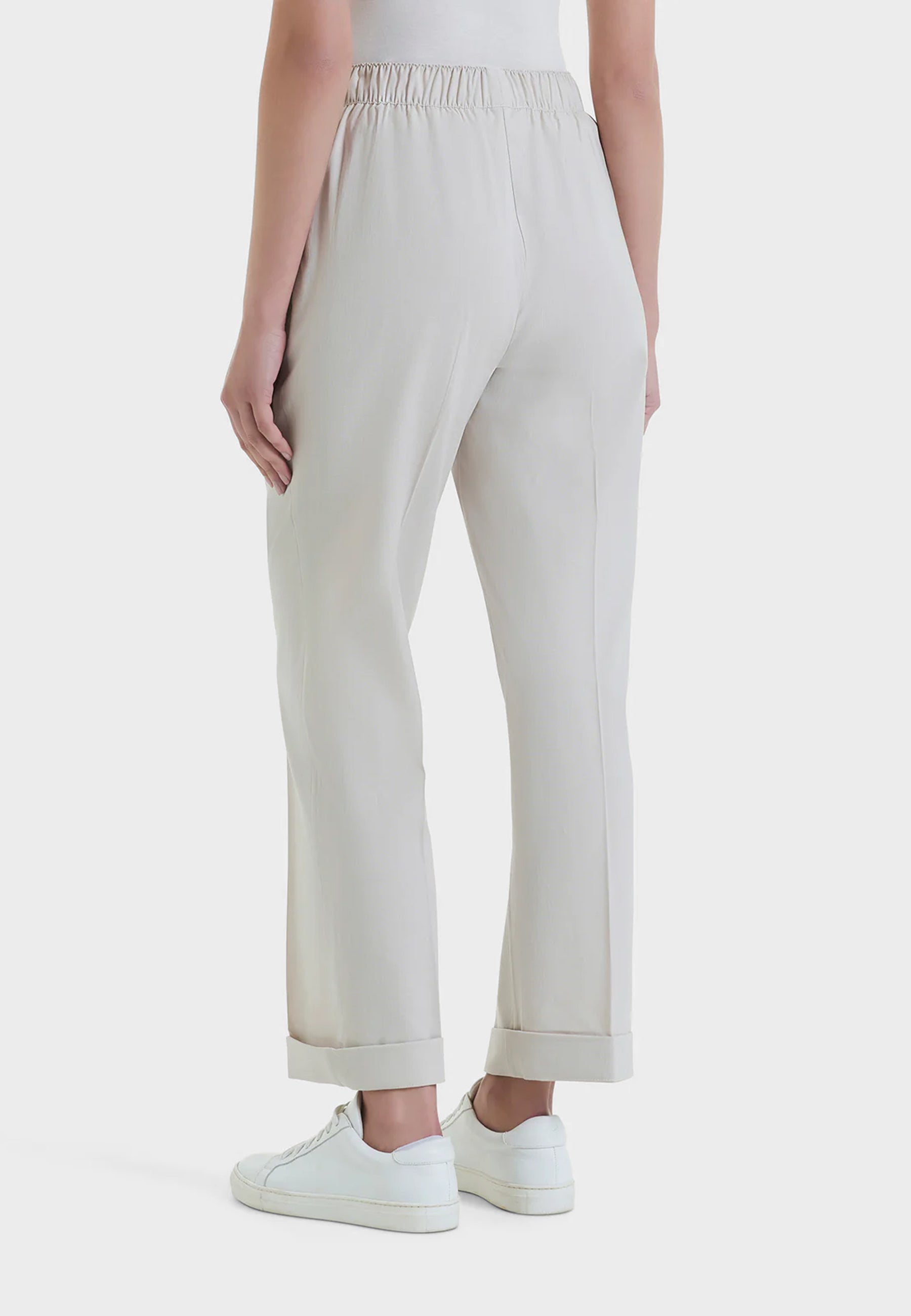 Il pantalone da donna a gamba dritta di RAGNO è la scelta ideale per chi cerca comfort e stile in un unico capo. Realizzato in fibra di tencel elasticizzata, offre una vestibilità morbida e avvolgente, perfetta per accompagnare i movimenti con leggerezza. La vita completamente elasticizzata, arricchita da pratici passanti, garantisce una tenuta perfetta senza rinunciare alla comodità. Le tasche laterali aggiungono un tocco di funzionalità, mentre il risvolto sul fondo conferisce un dettaglio moderno e curato. Ideale per ogni occasione, questo pantalone si abbina facilmente a look casual o più raffinati, assicurando un'eleganza naturale e senza sforzo.